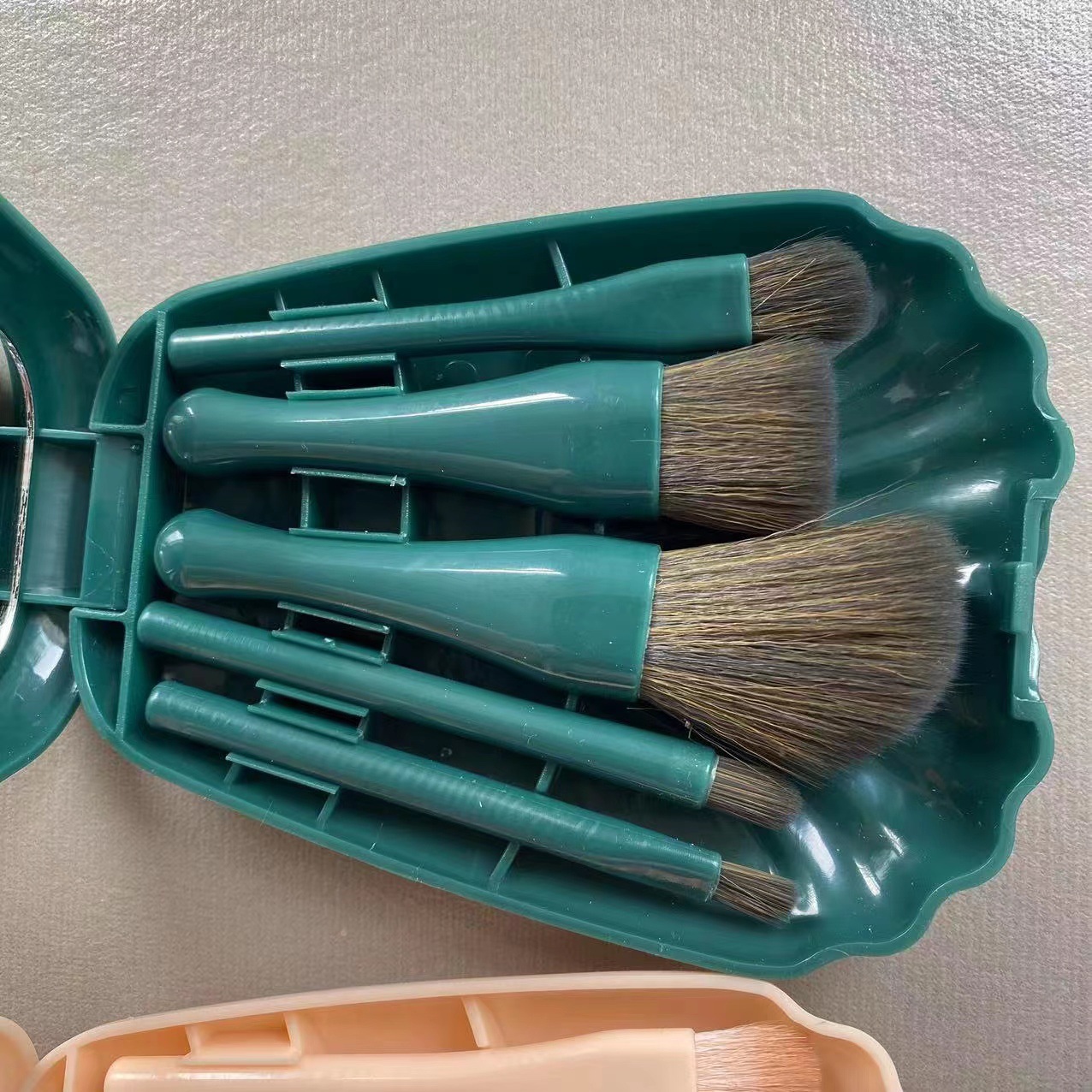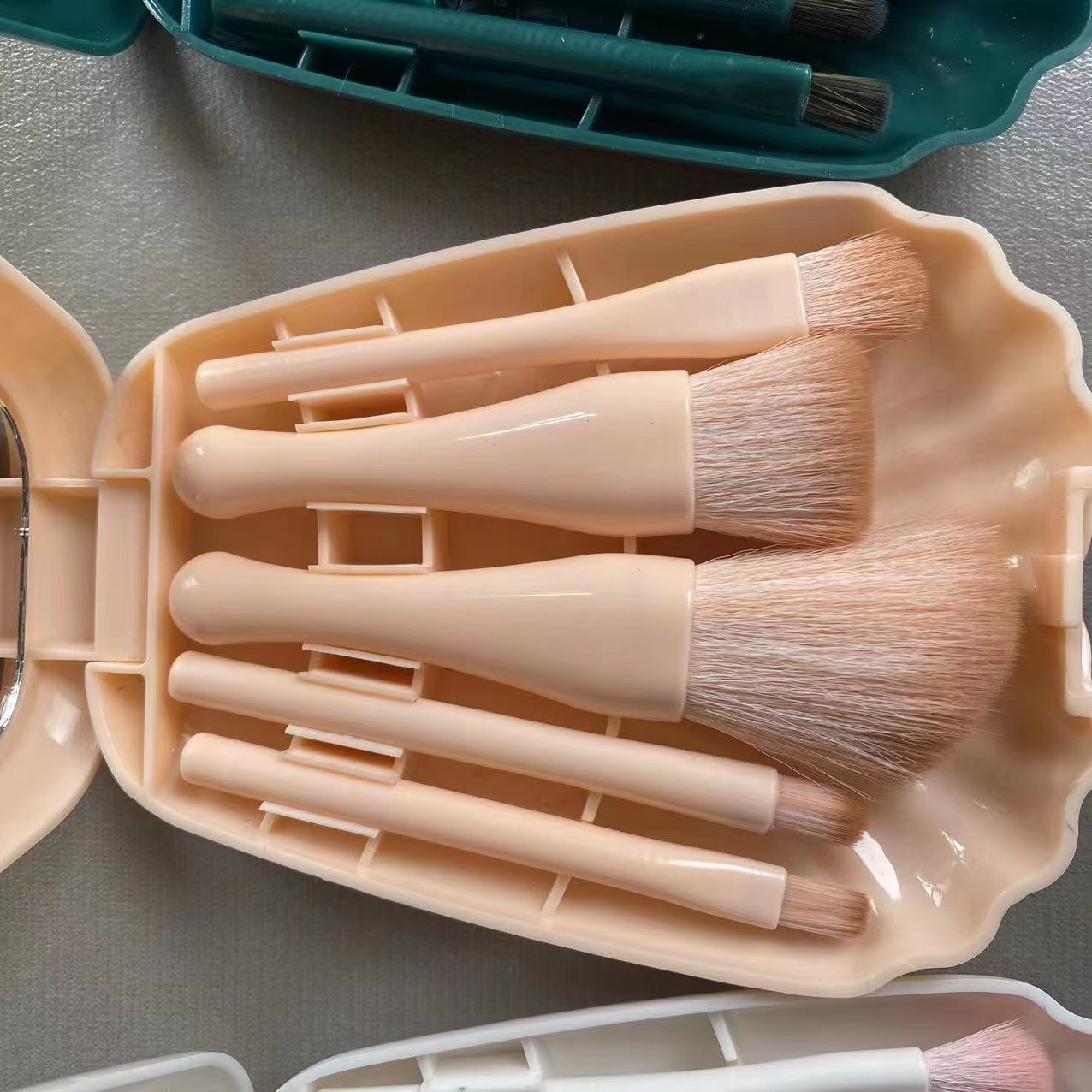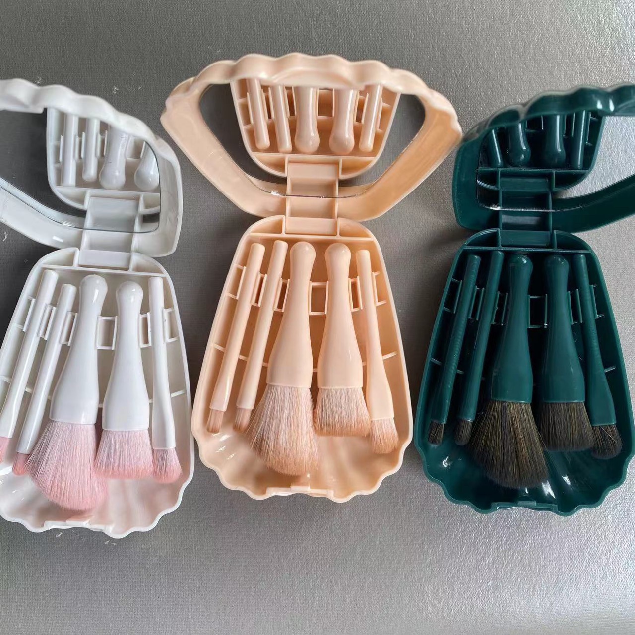 5支贝壳镜子化妆刷 便携式迷你带化妆镜子组合旅行小巧化妆刷套装