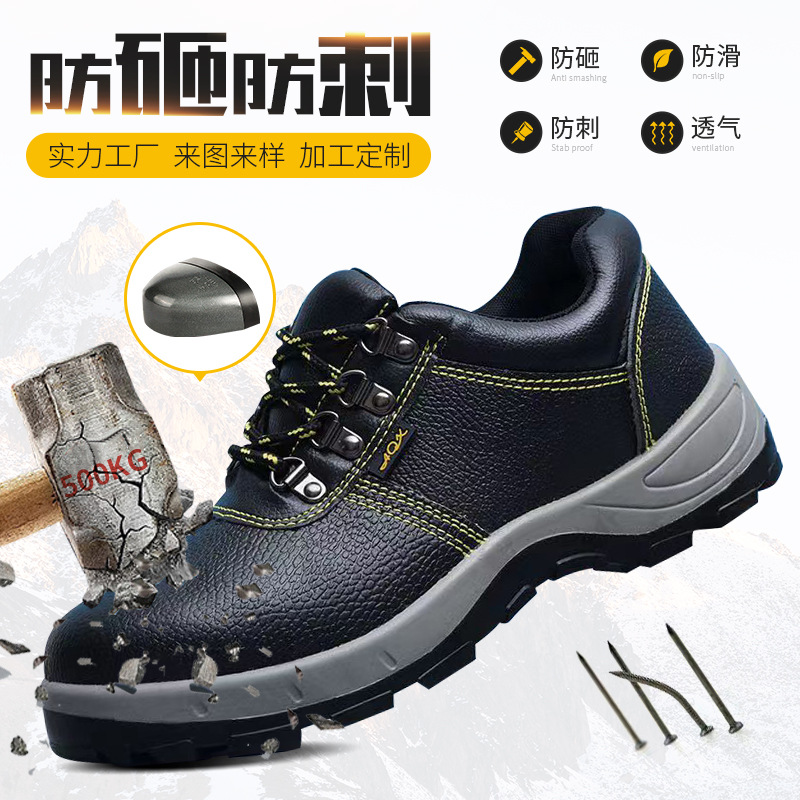 钢包头防砸防刺劳保鞋时尚多功能防护鞋透气皮面劳保鞋定制