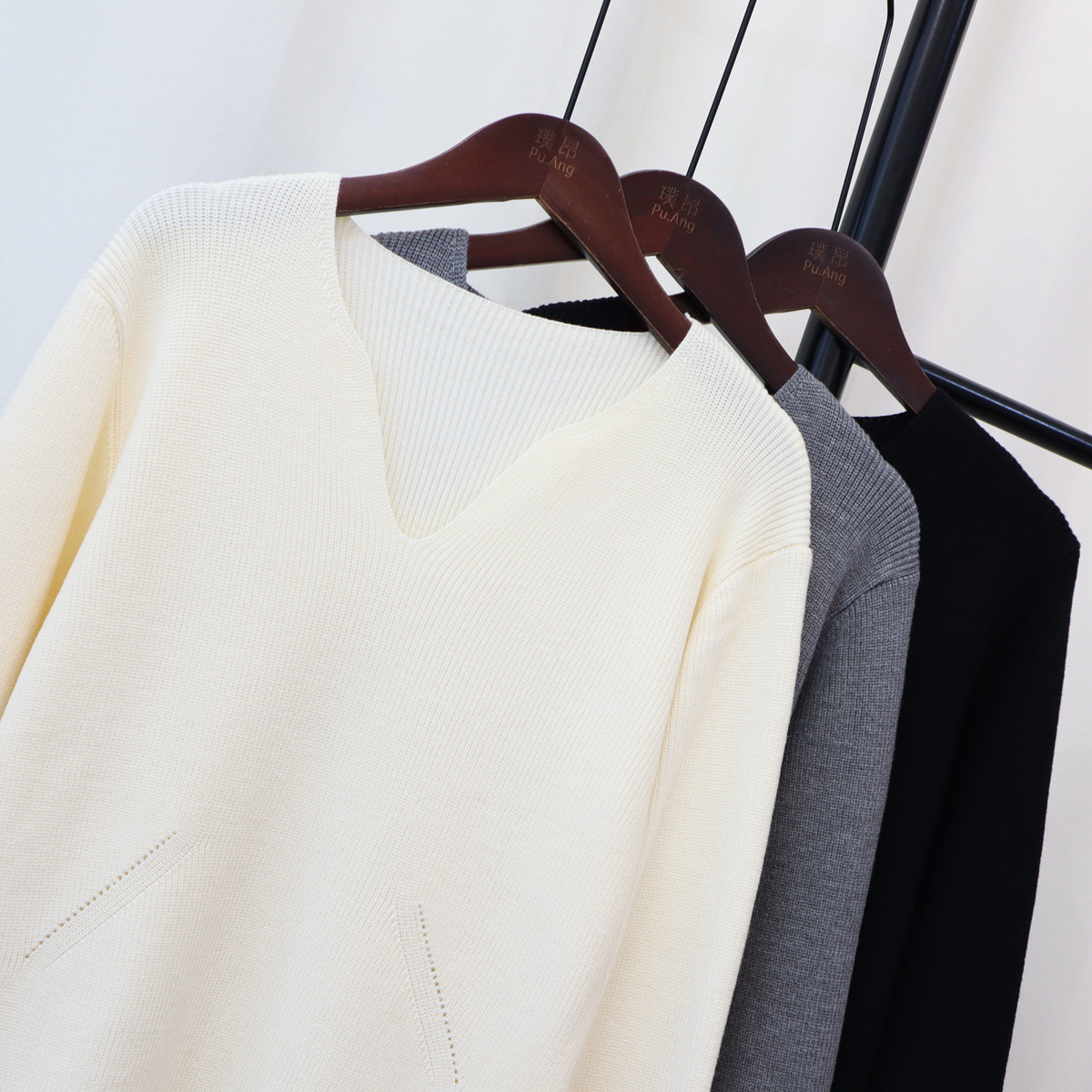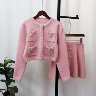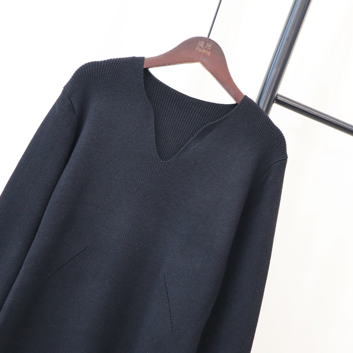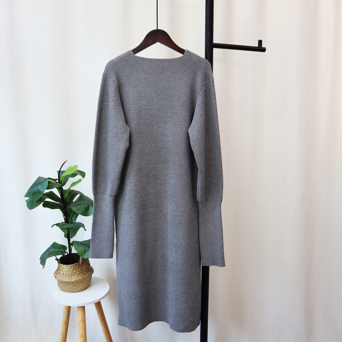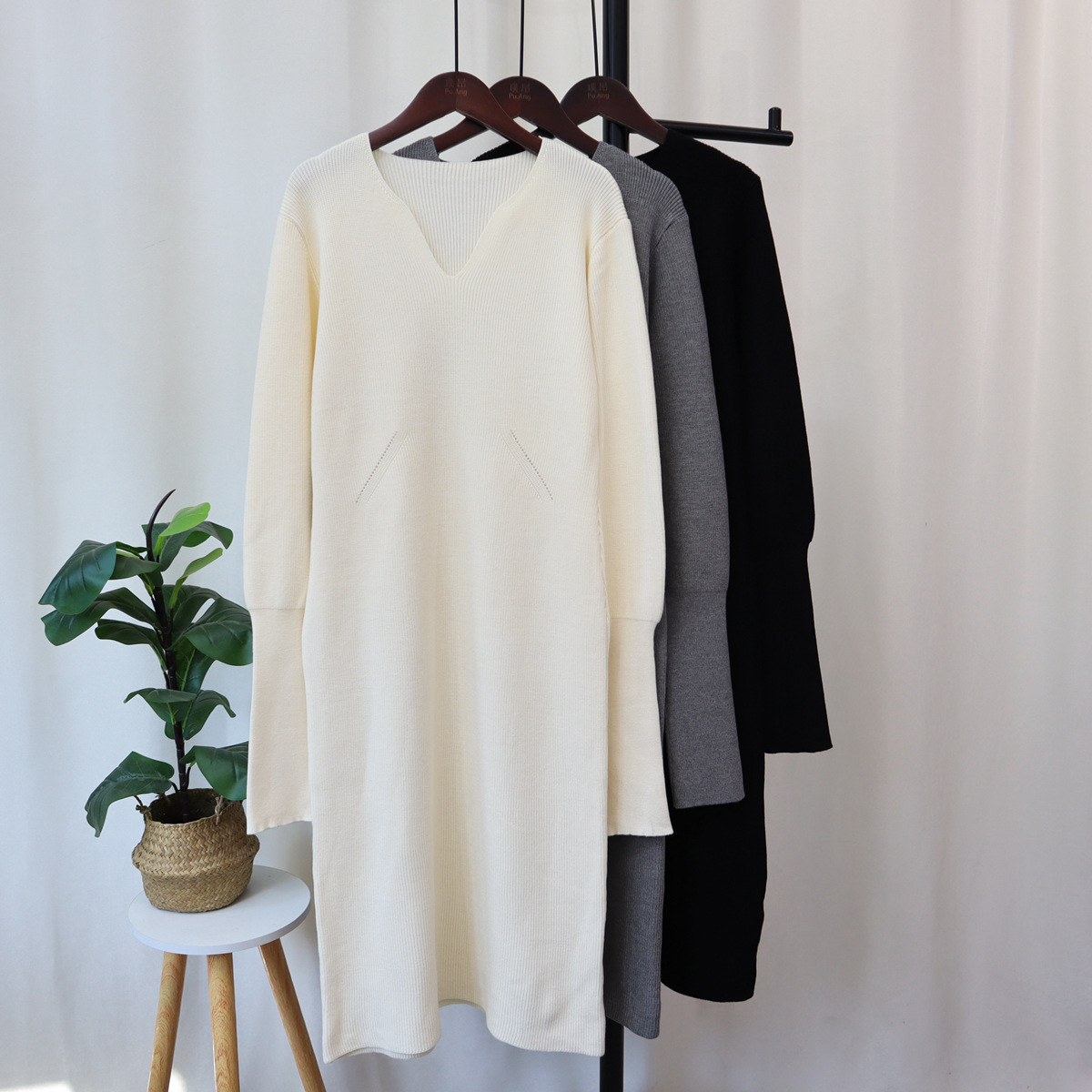 2023秋冬新款V领法式配大衣内搭毛衣打底裙女气质长款针织连衣裙