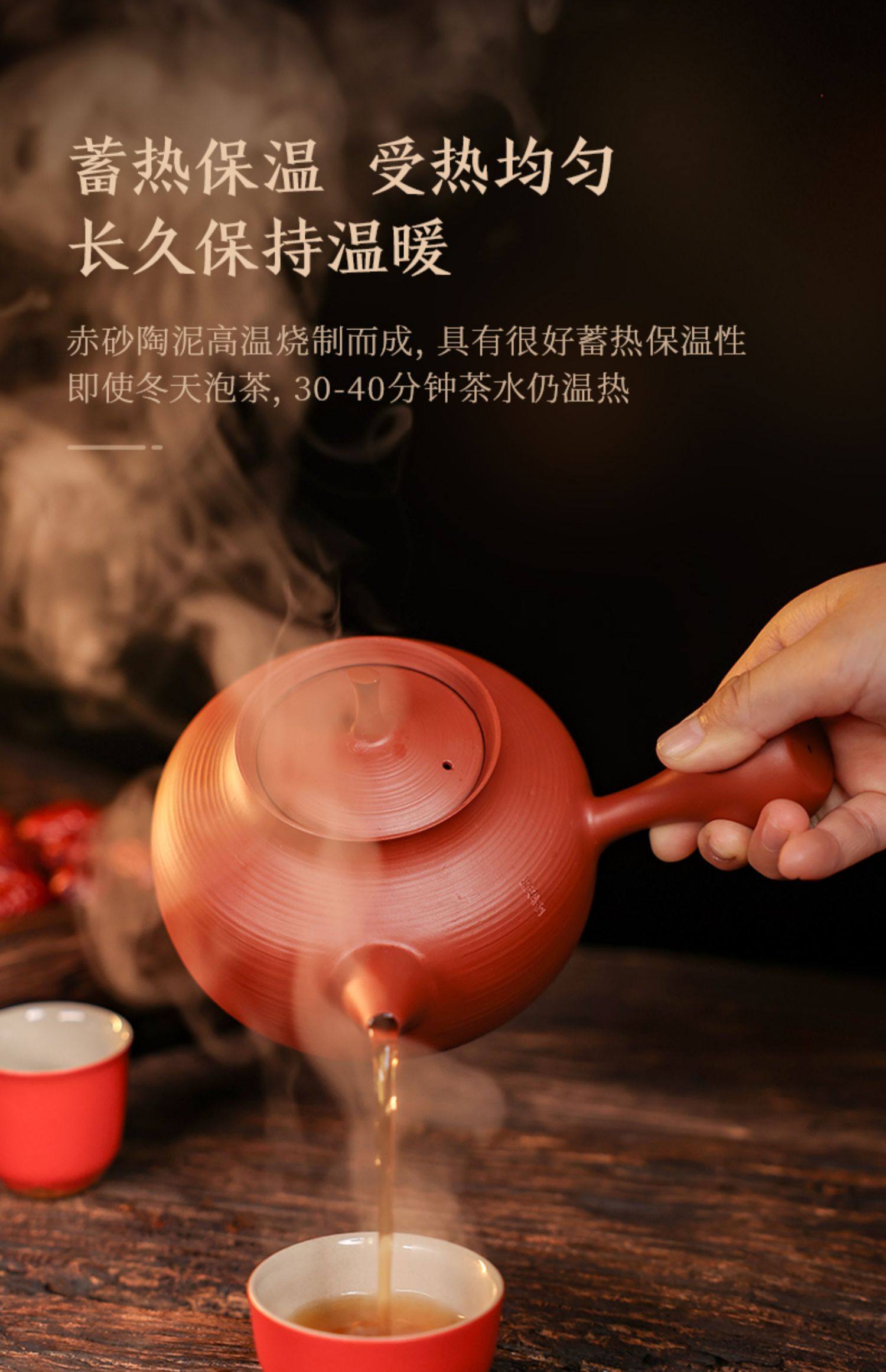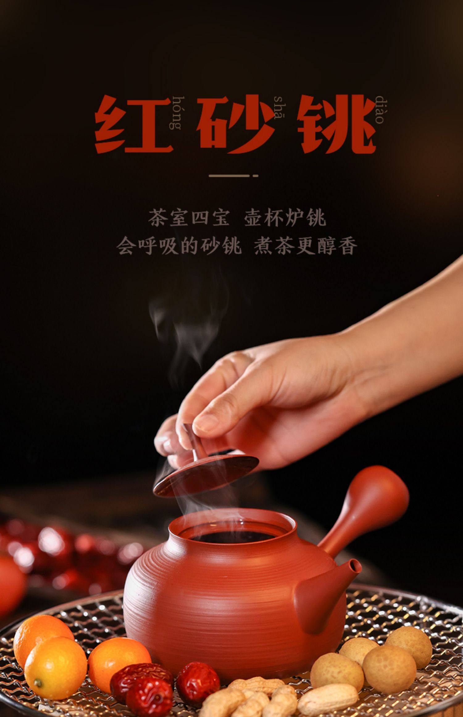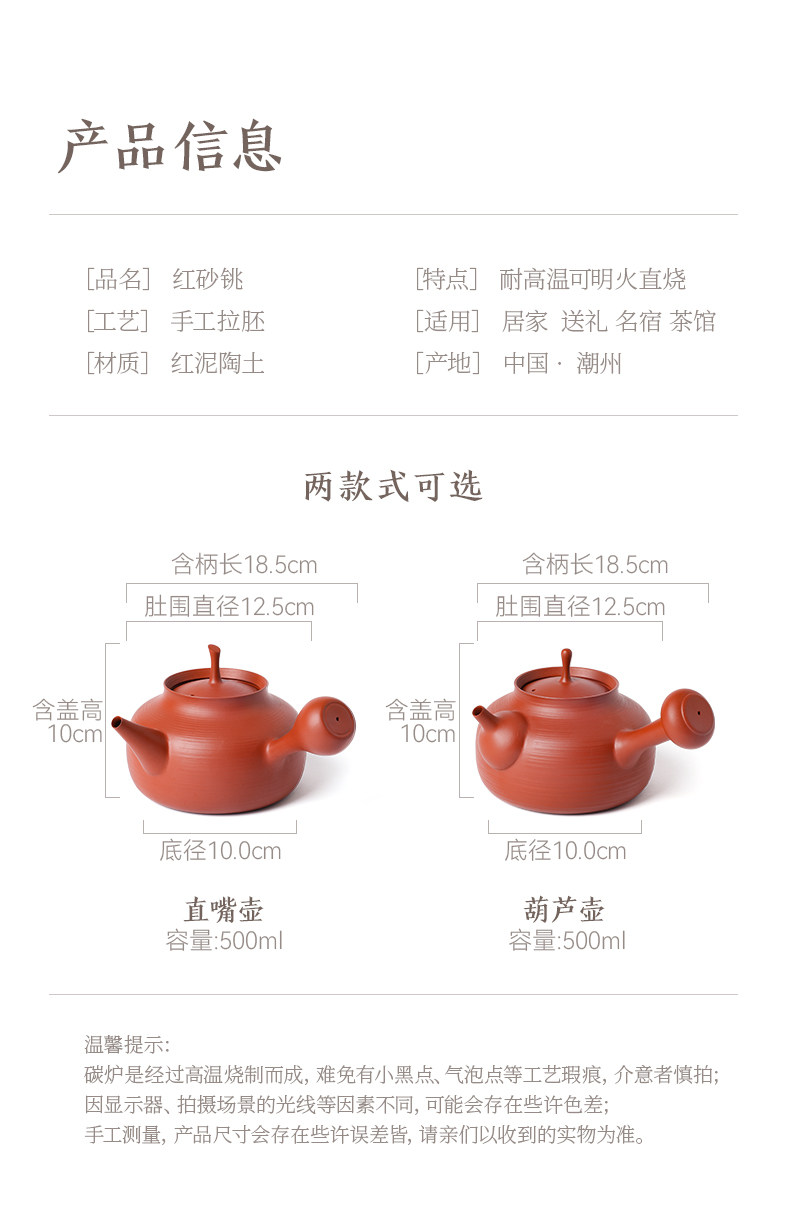 陶煲王纯手工砂铫壶红泥茶壶炭炉泡茶中式复古功夫茶具朱泥煮茶壶