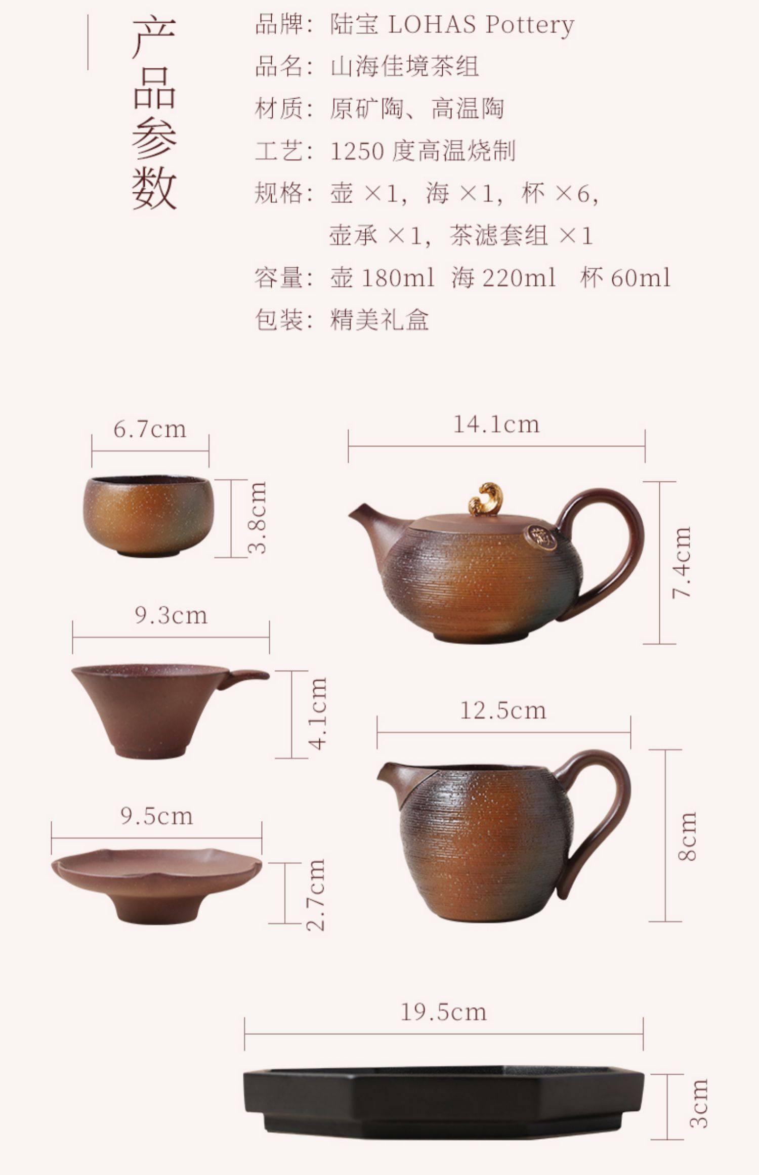 陆宝成套陶瓷功夫茶具套装原矿陶家用送礼盒中式高端茶具山海佳境