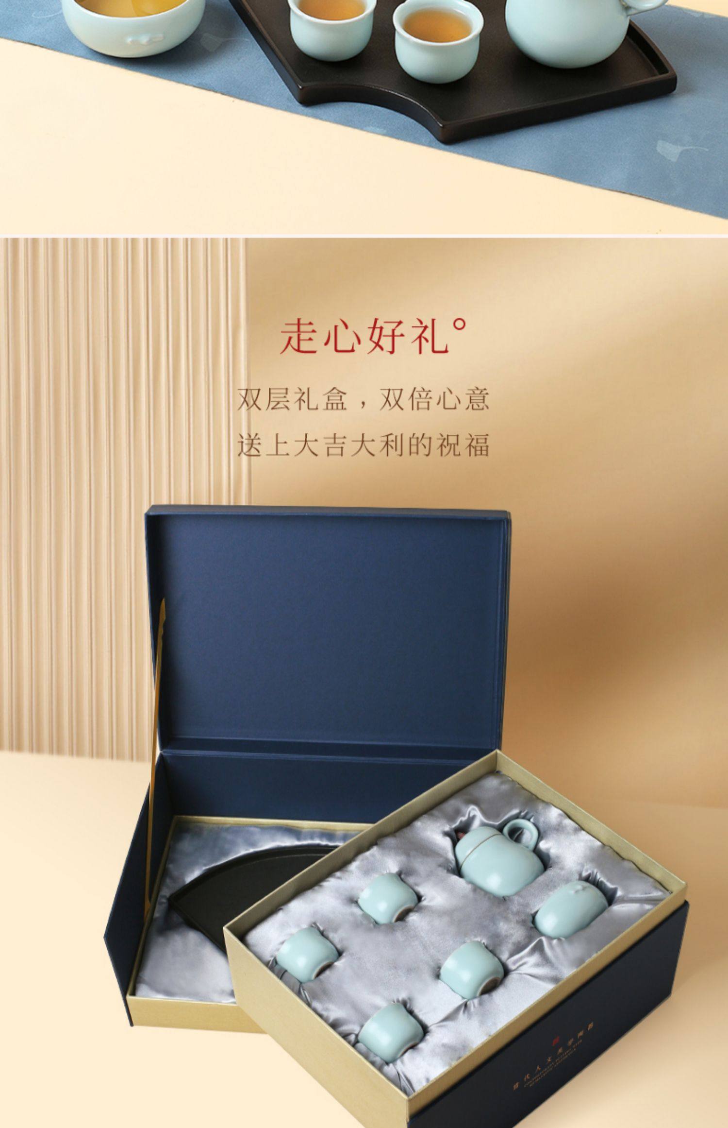陆宝陶瓷功夫茶具套装2023新款家用轻奢礼盒装中式送礼大吉大利