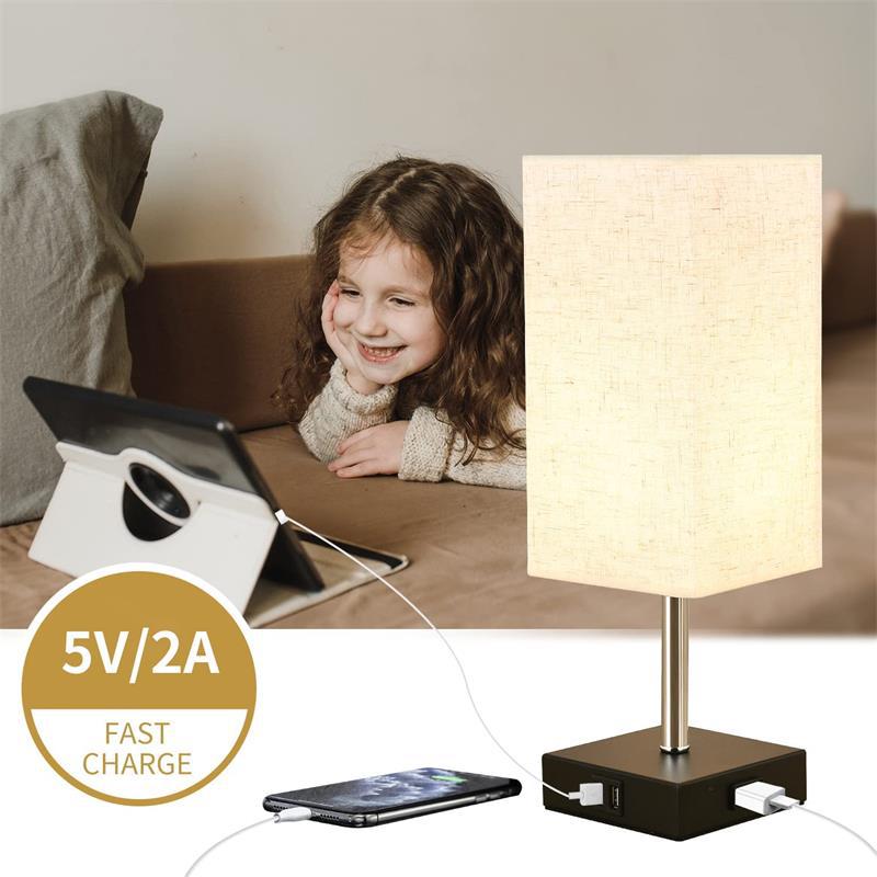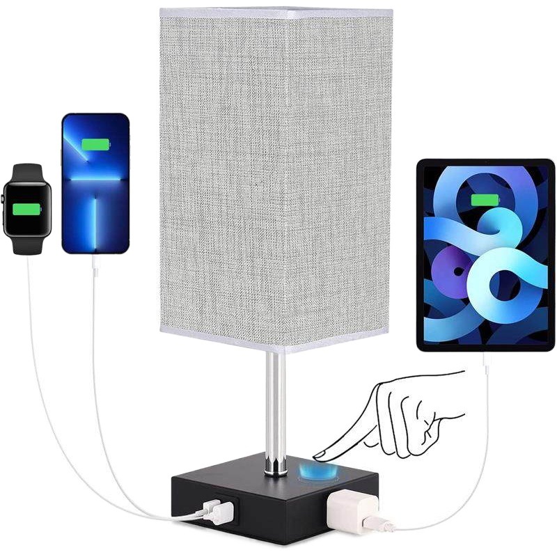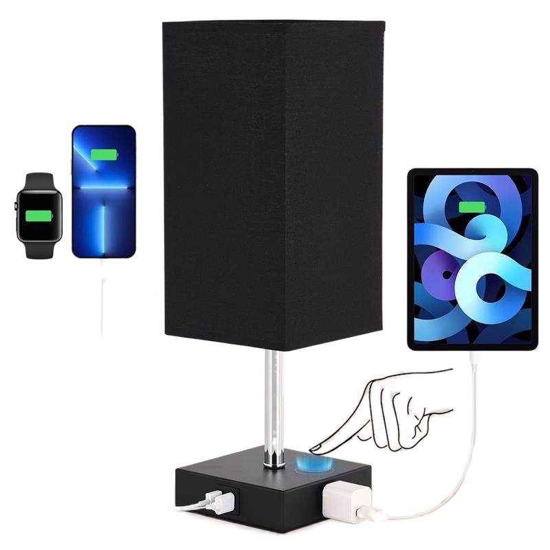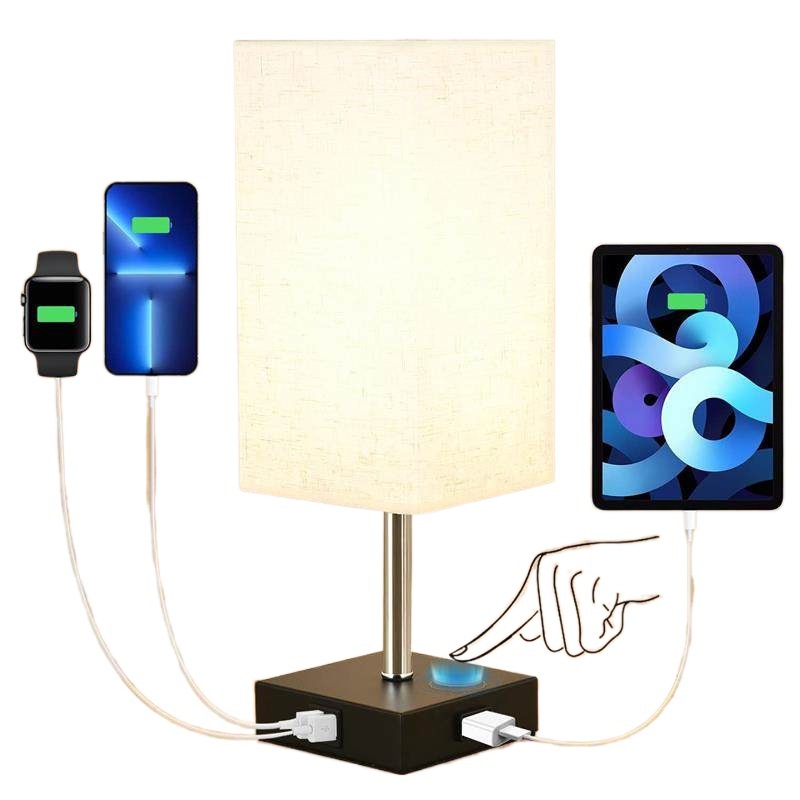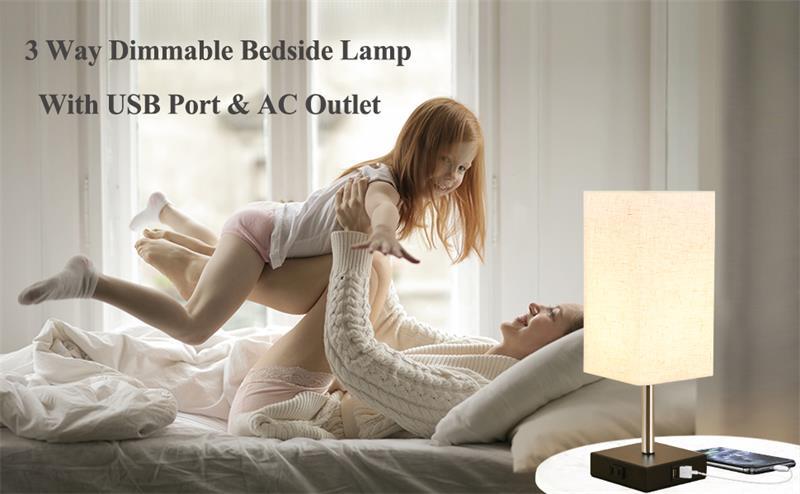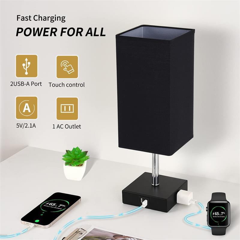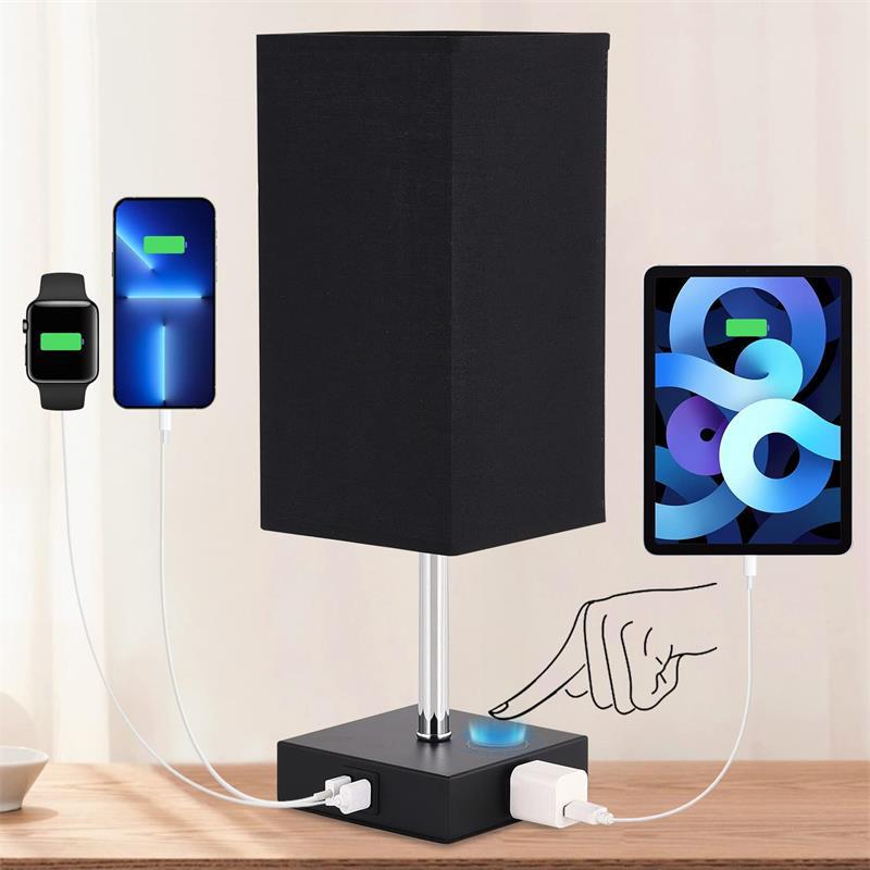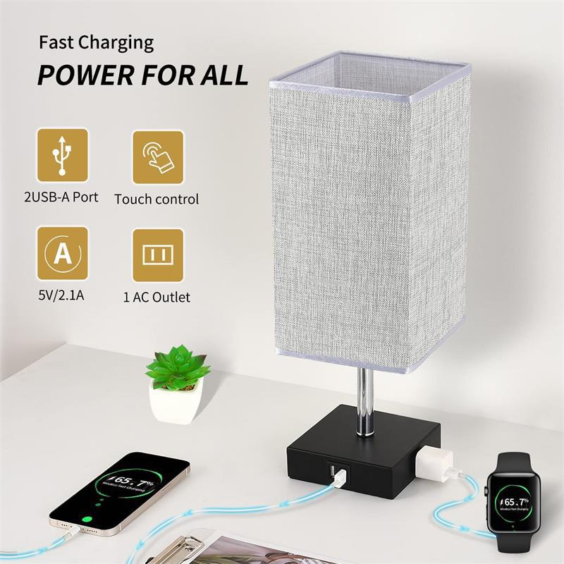 外贸专供台灯床头简约美客多2个usb端口带AC插座触摸调光台灯