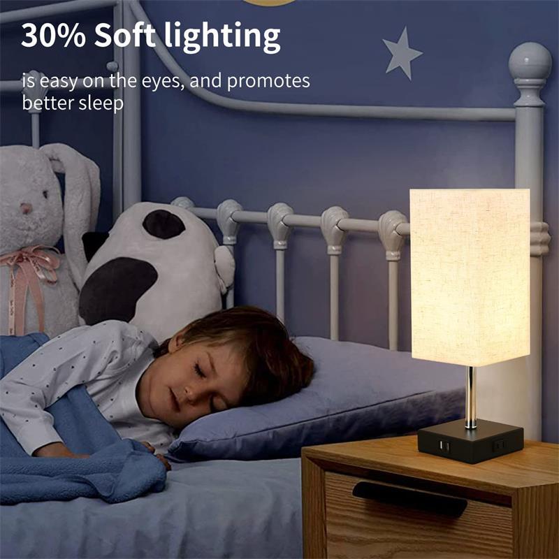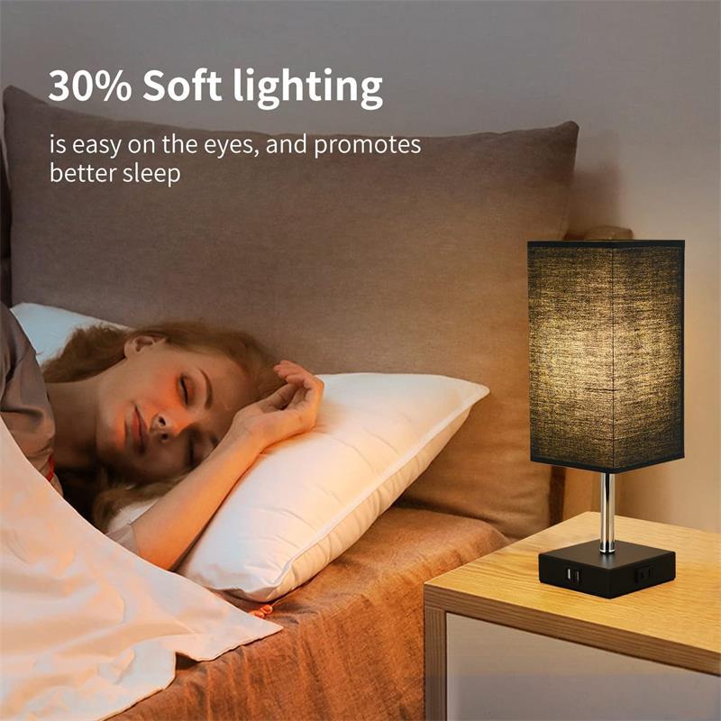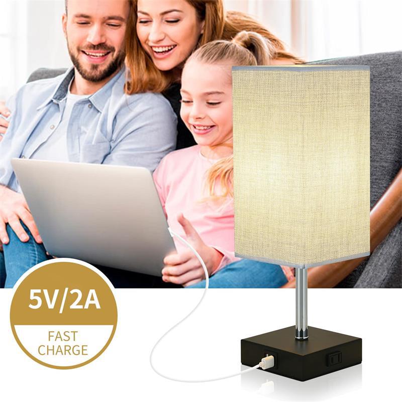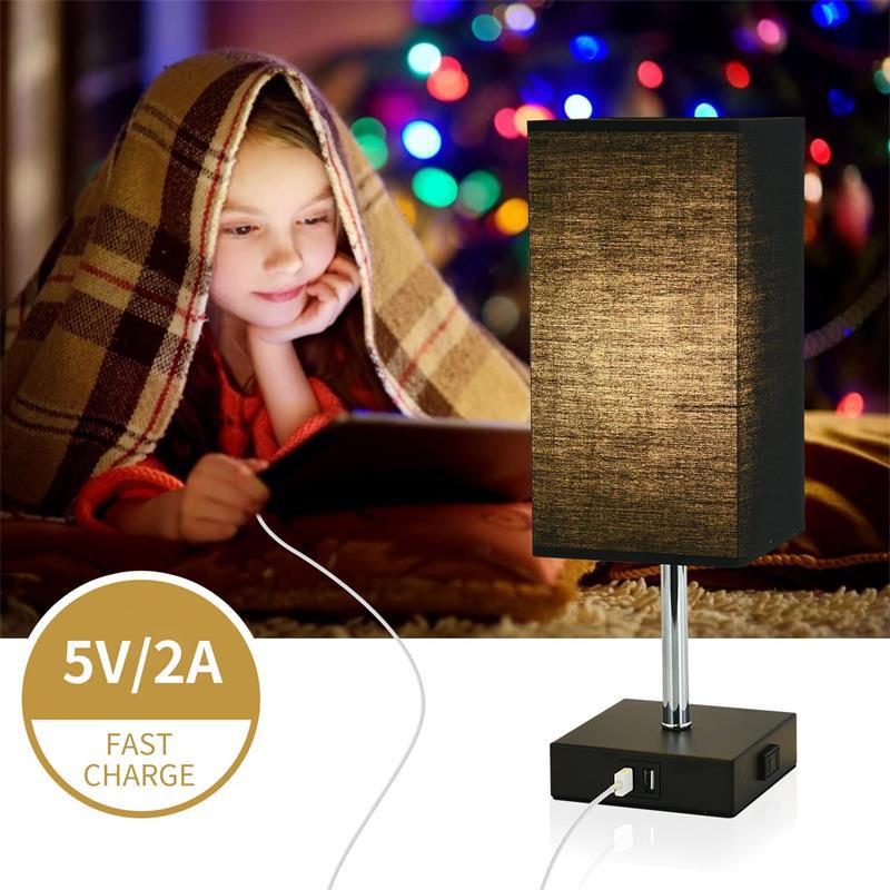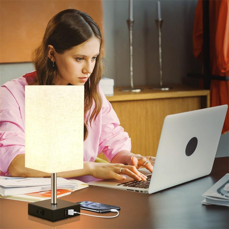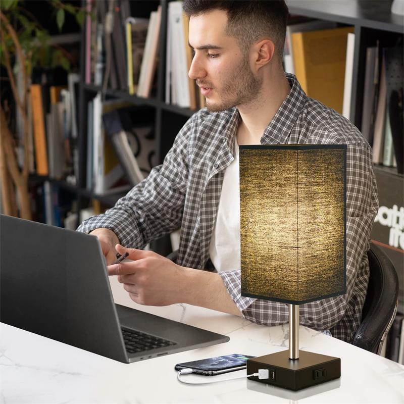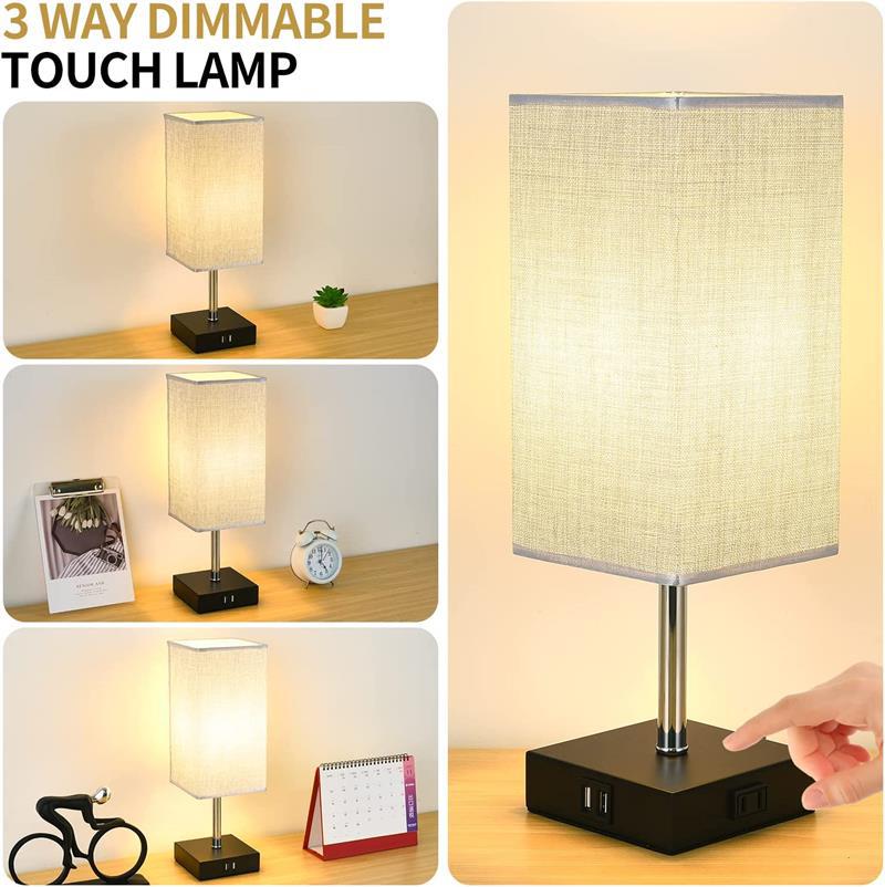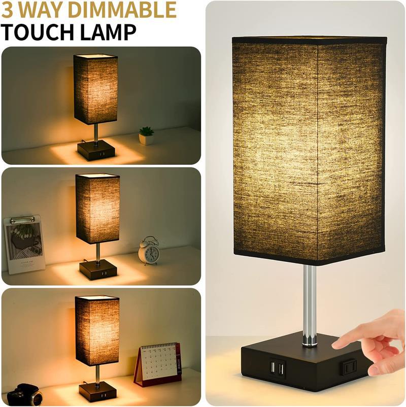 外贸专供台灯床头简约美客多2个usb端口带AC插座触摸调光台灯