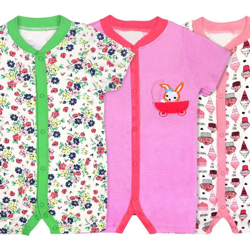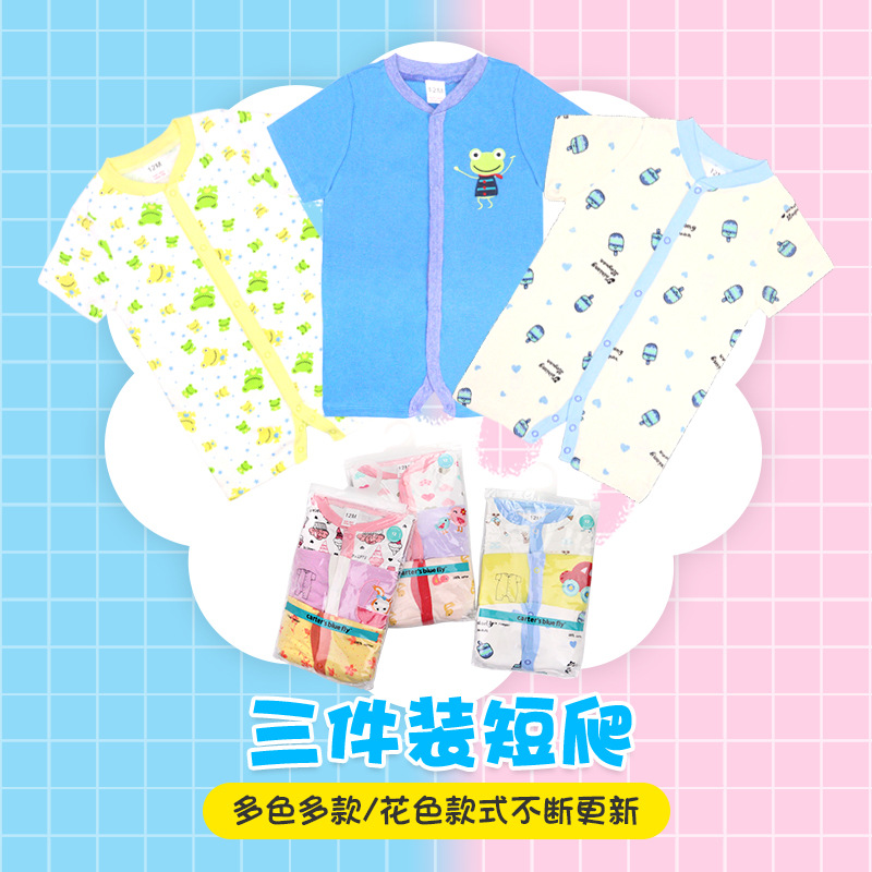 跨境批发3件装外贸欧美夏季婴儿短袖棉哈衣爬服男童女童短爬
