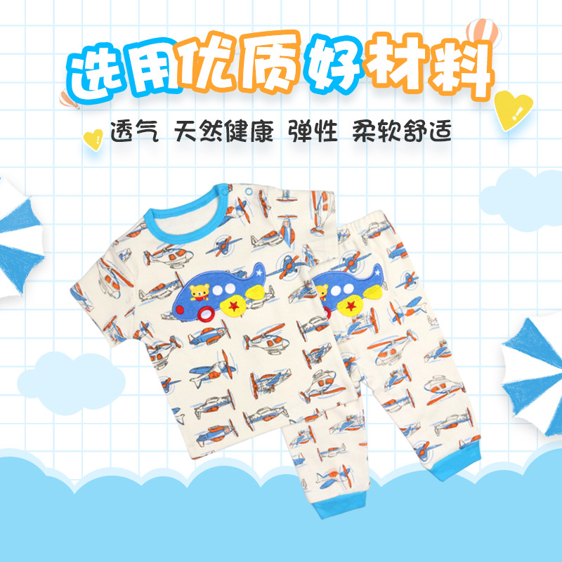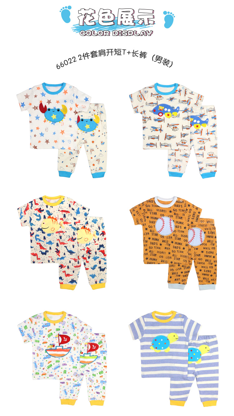 批发外贸童装跨境宝宝夏季短袖套装纯棉男童短袖T恤长裤2件套