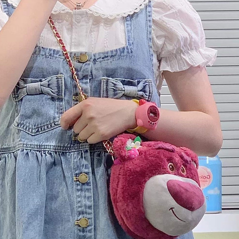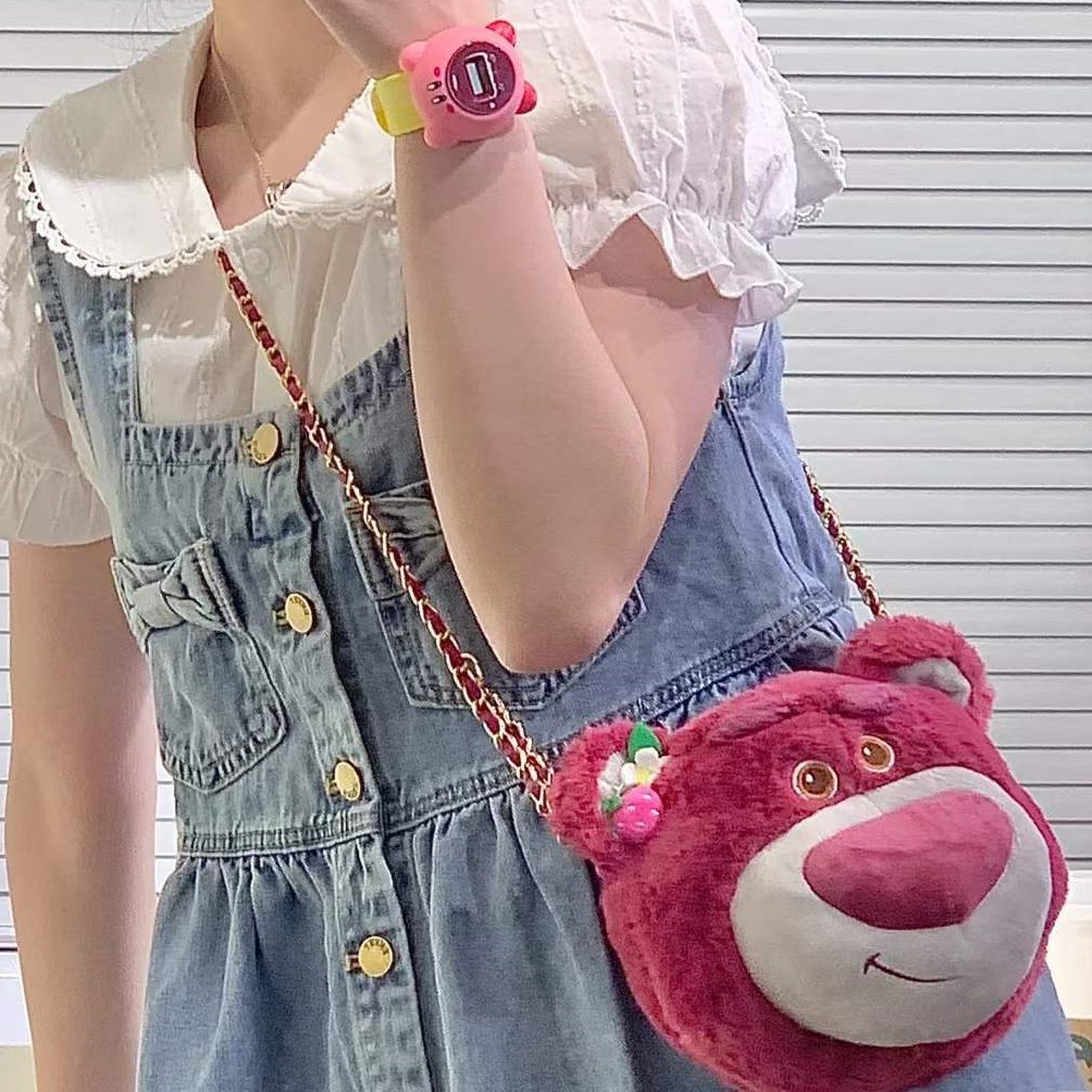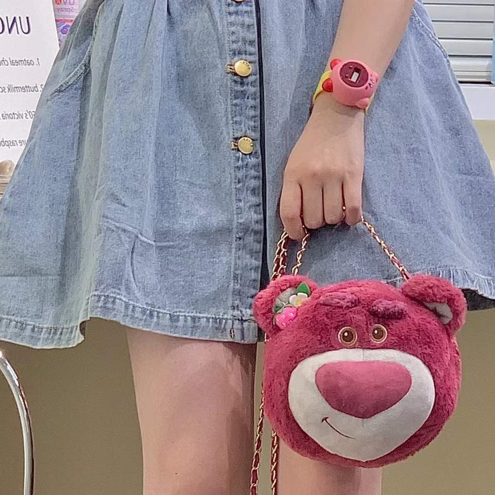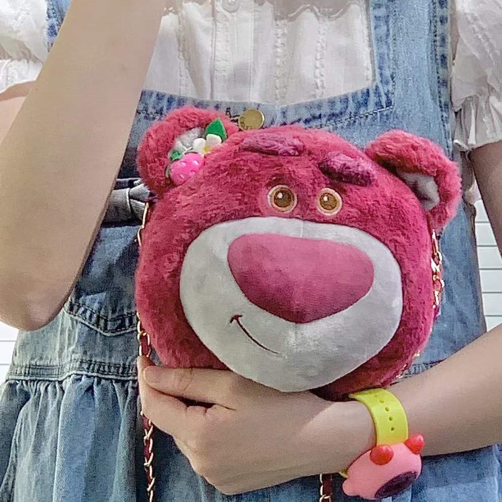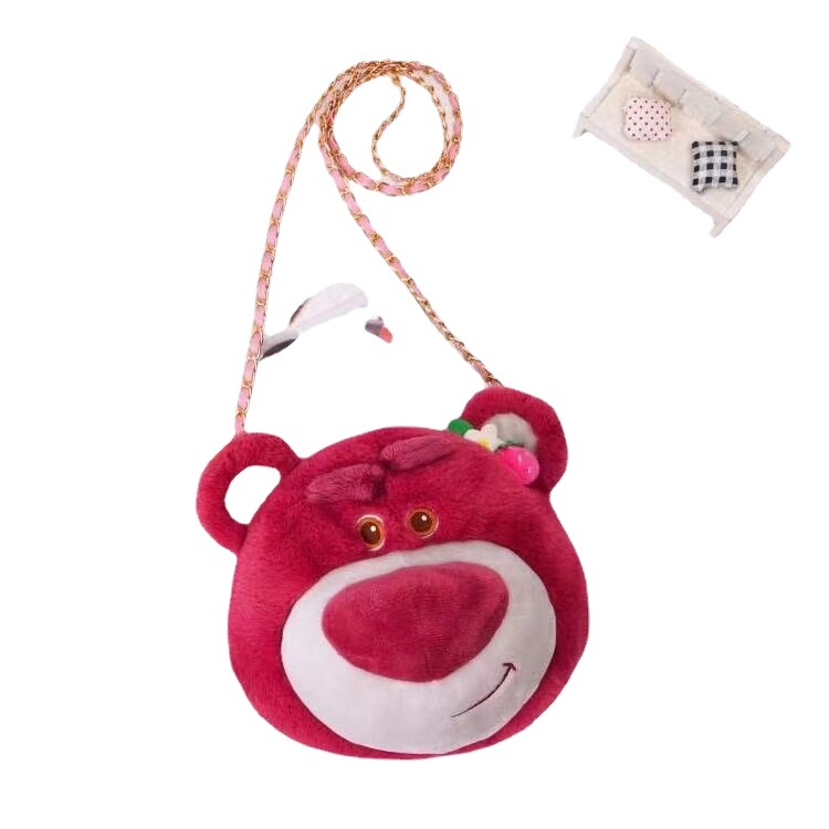 士尼正版草莓熊维熊毛绒斜挎包卡通玩偶手提斜挎两用链条包女