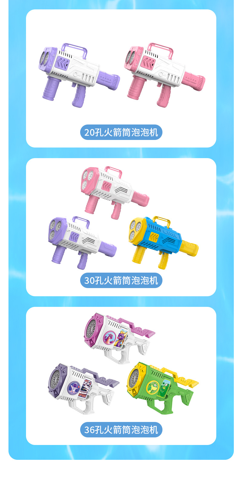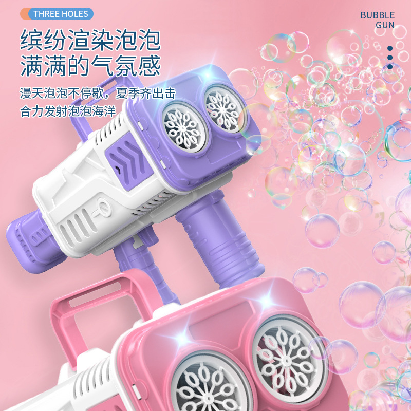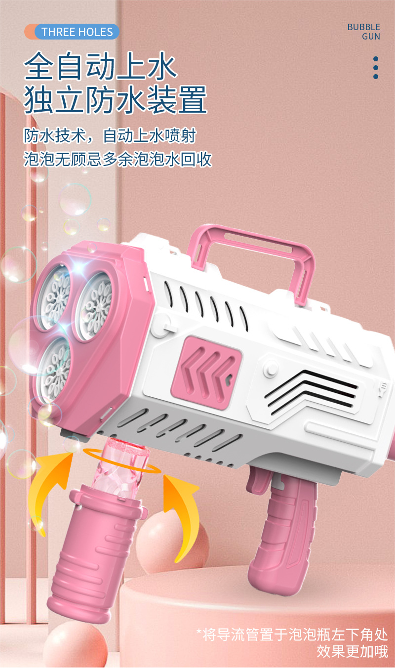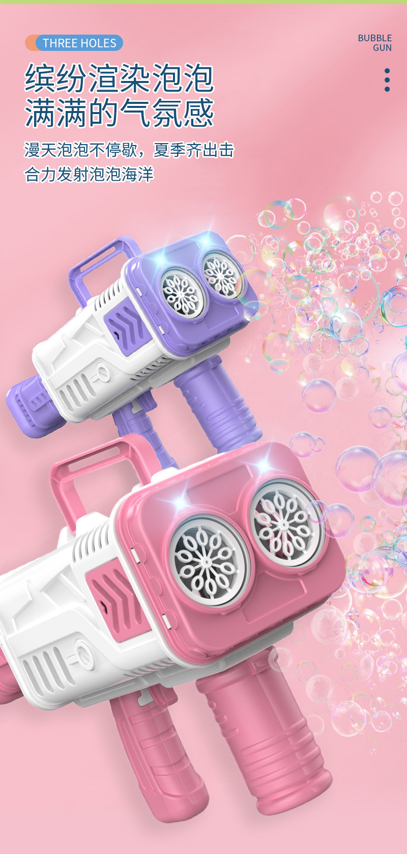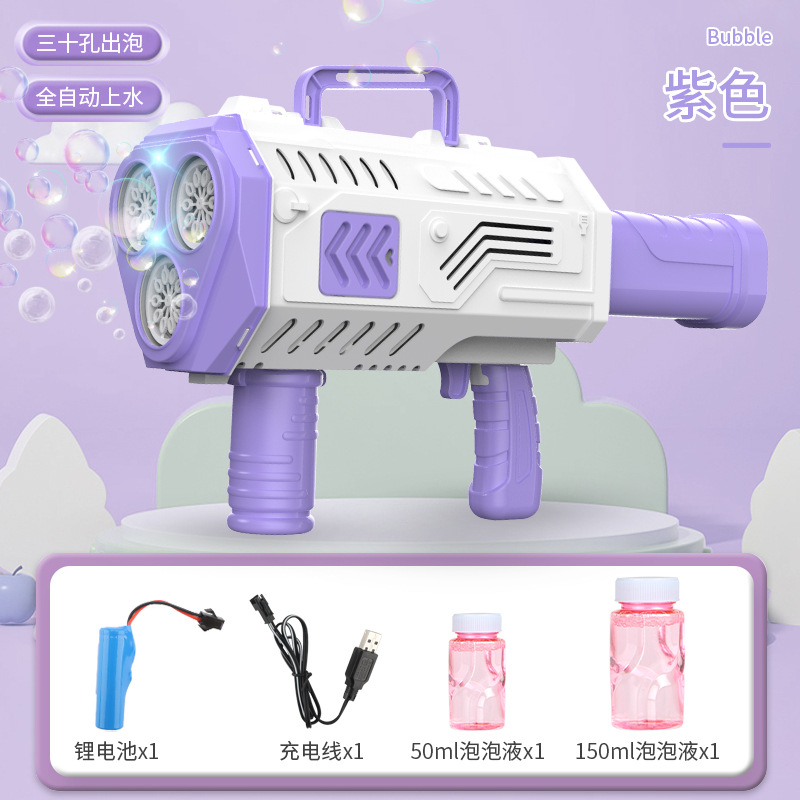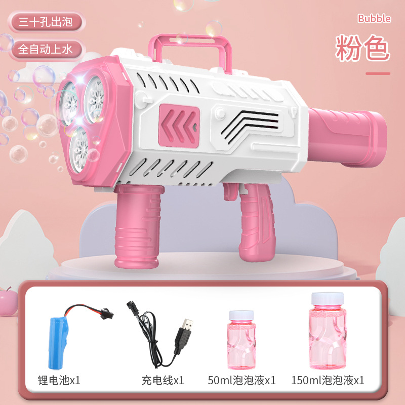 新款儿童梦幻彩色泡泡机手持充电全自动36孔火箭筒泡泡枪户外玩具