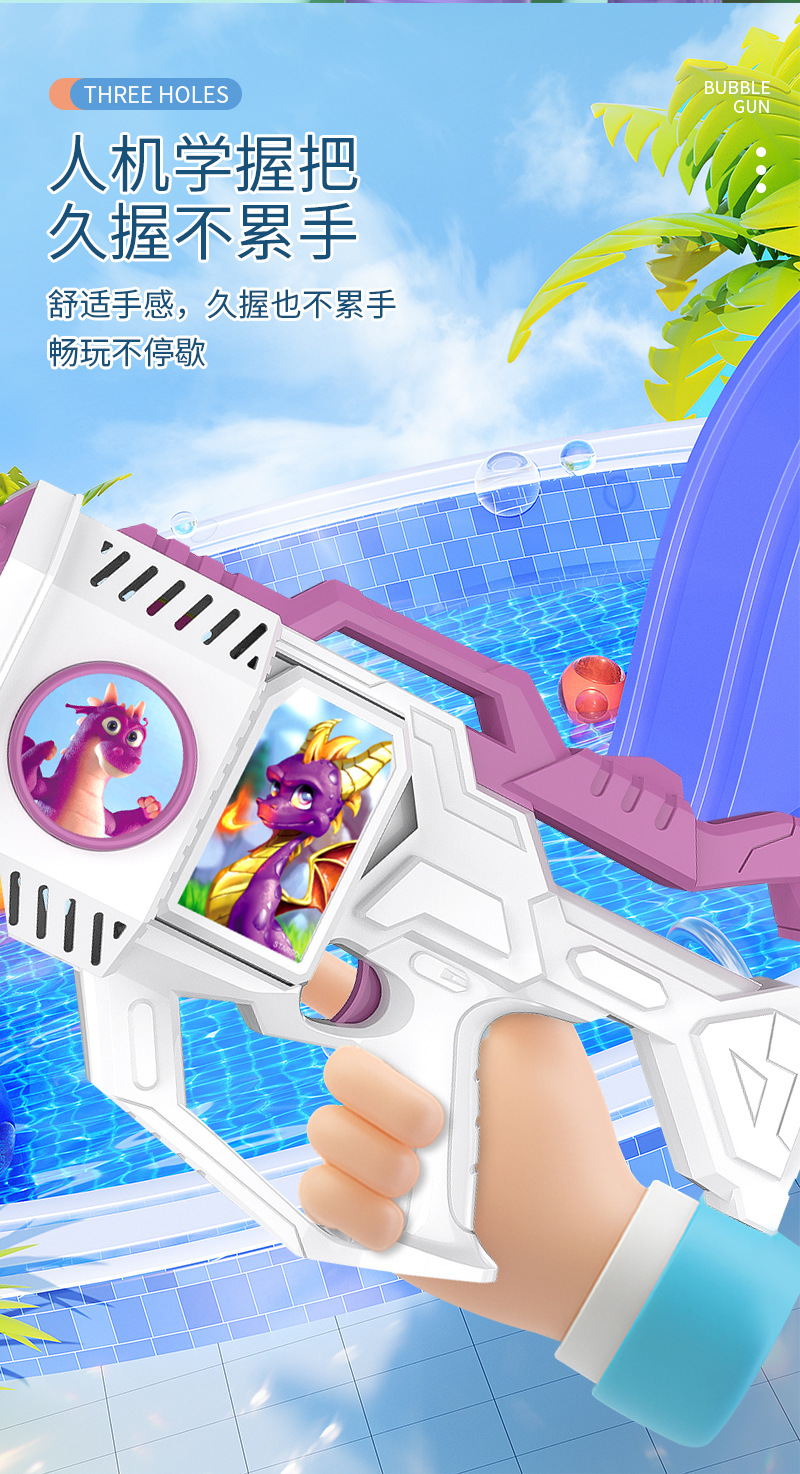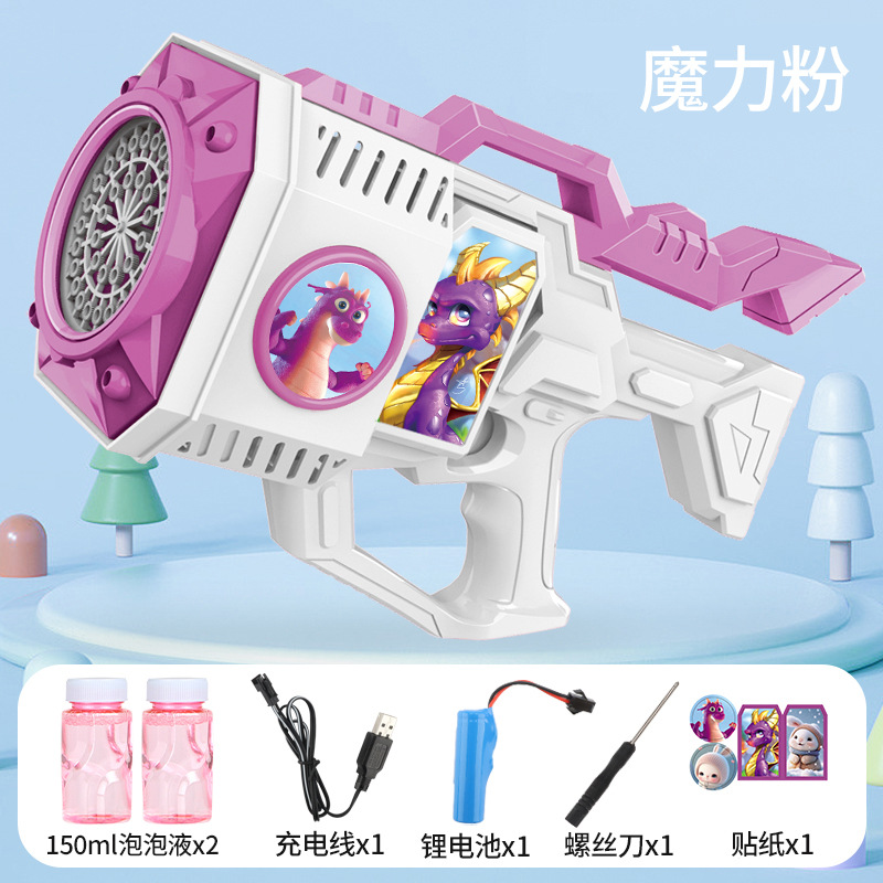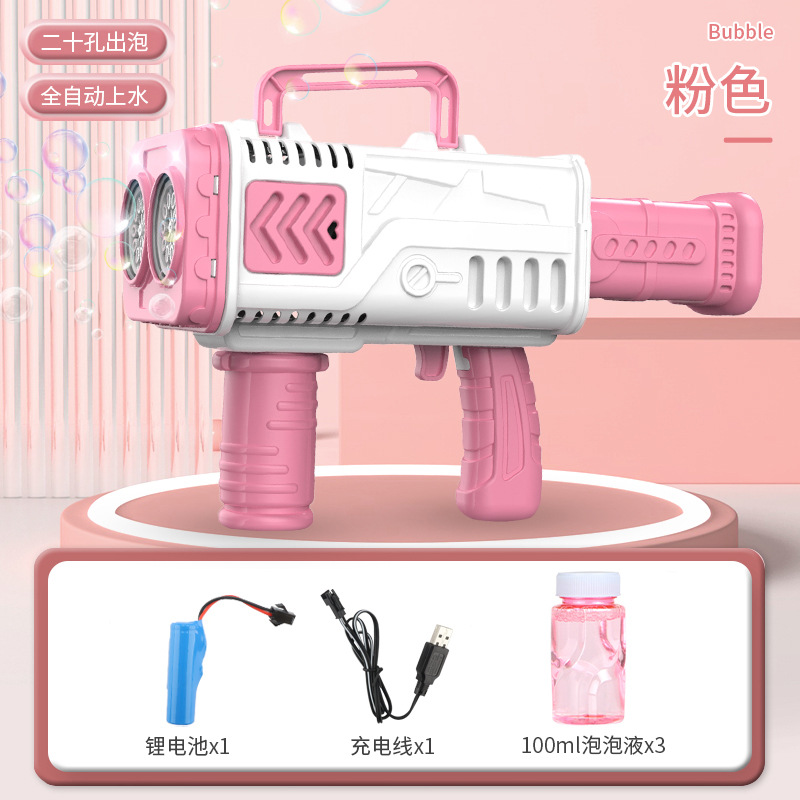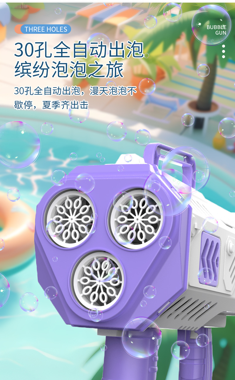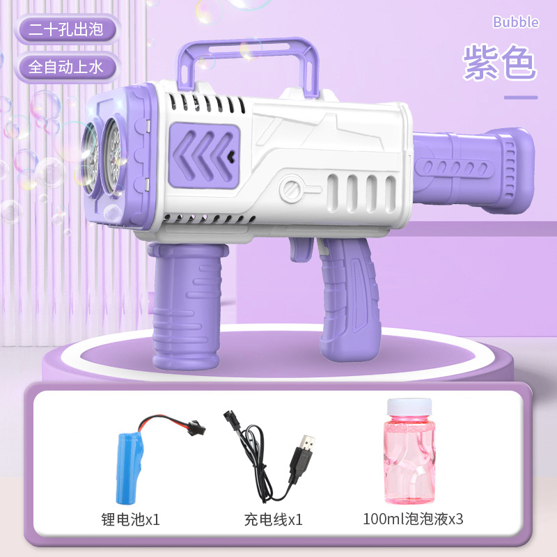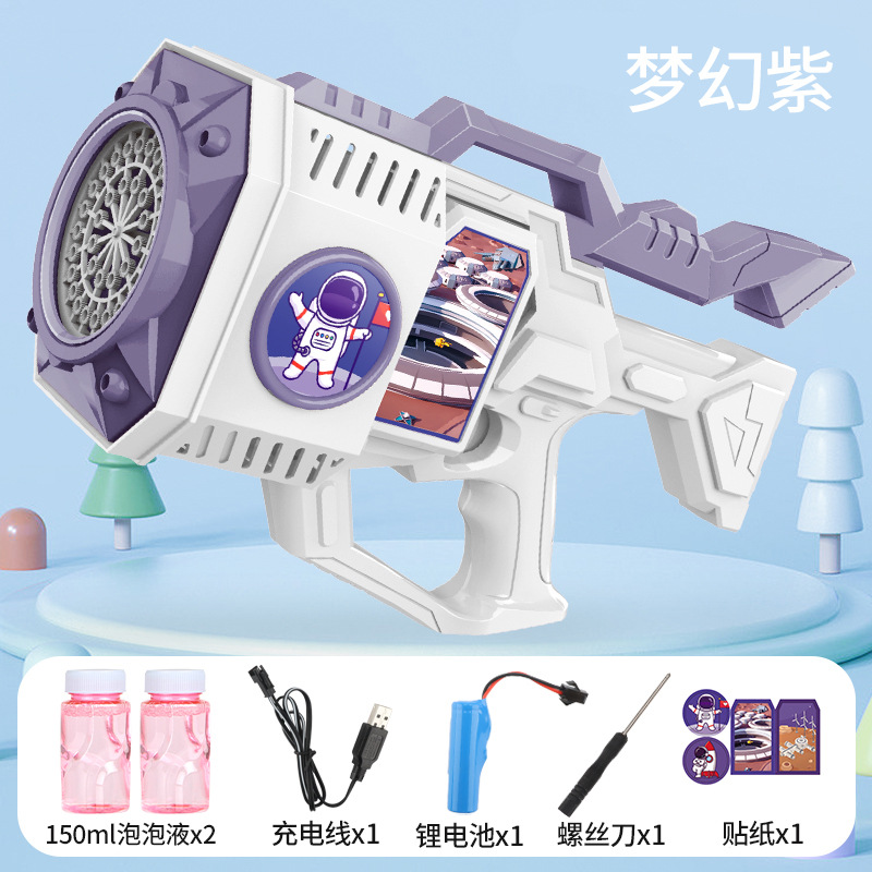 新款儿童梦幻彩色泡泡机手持充电全自动36孔火箭筒泡泡枪户外玩具