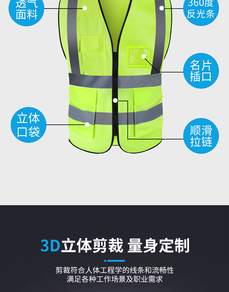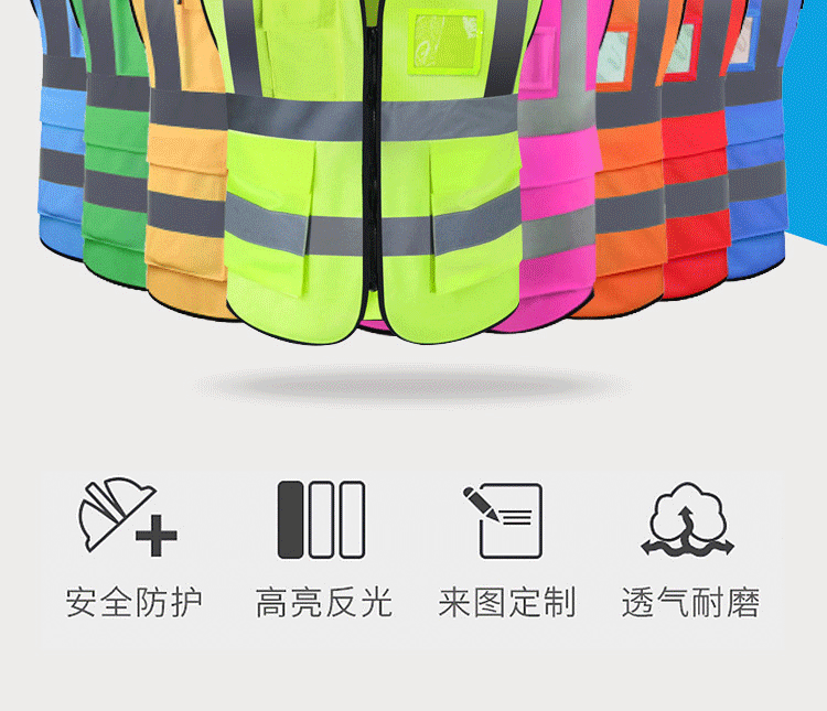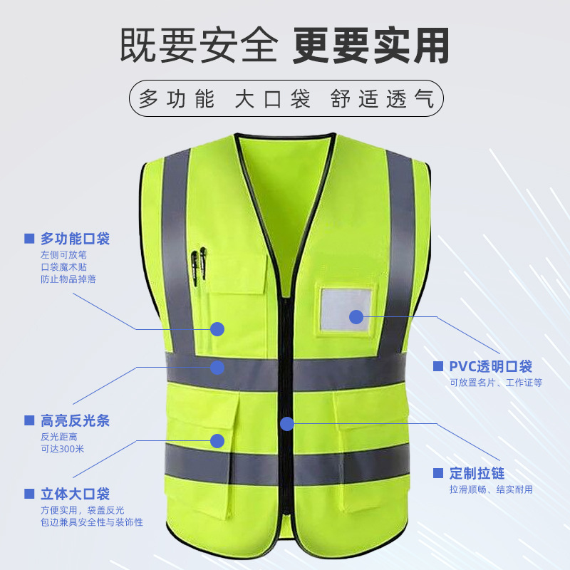 批发多口袋反光马甲定 制施工环卫园林建筑夜间交通劳反光衣印字