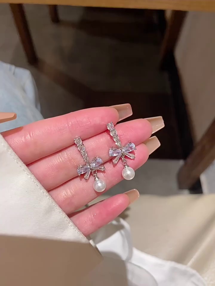 饰品S925银针时尚蝴蝶结复古耳钉设计感耳饰韩国耳坠锆石珍珠耳环