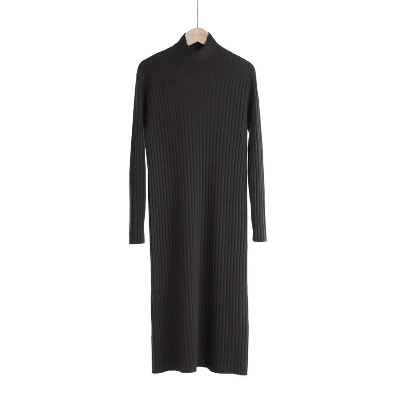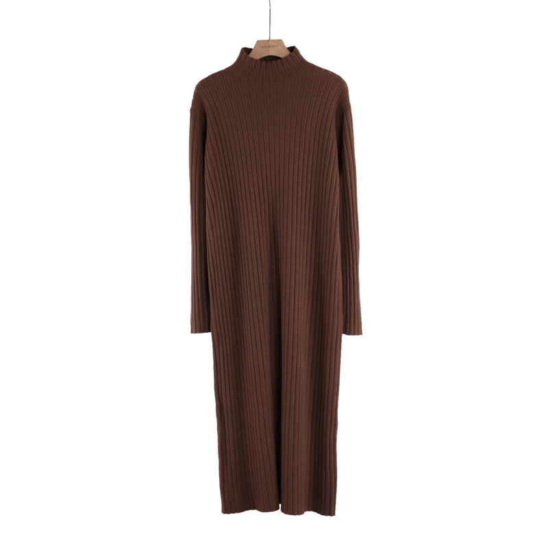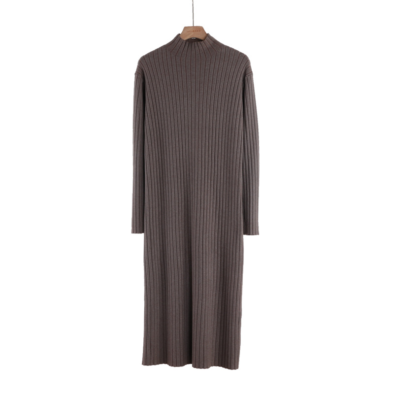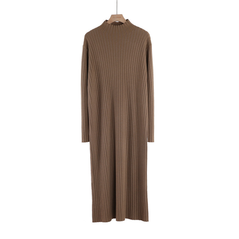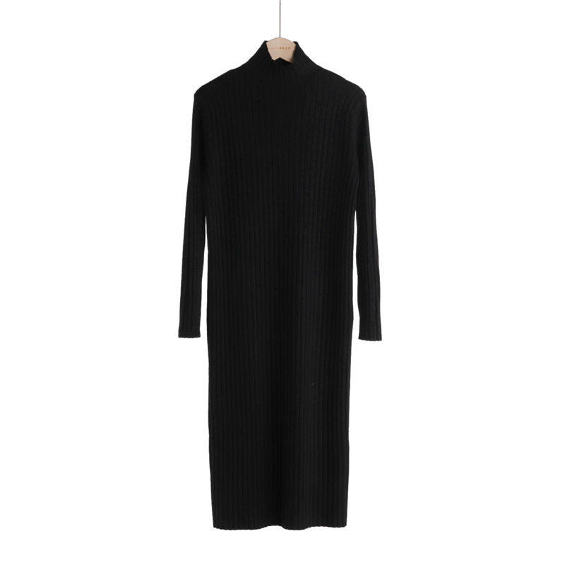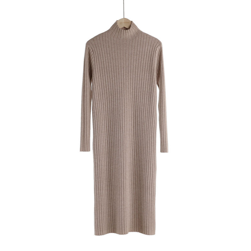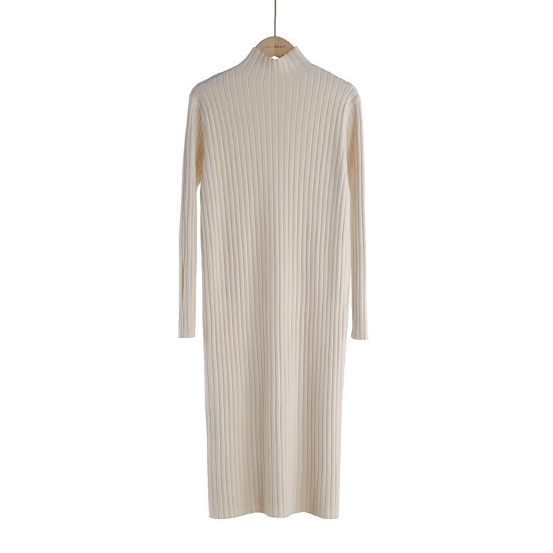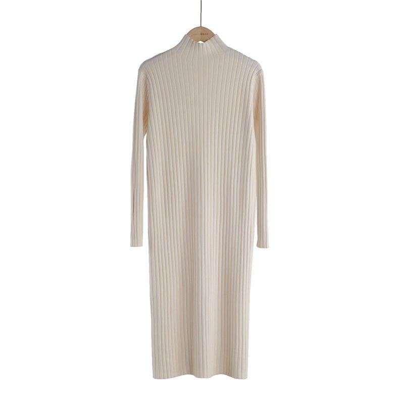 冬季针织打底毛衣裙过膝配大衣的长裙子2023新款半高领加厚连衣裙