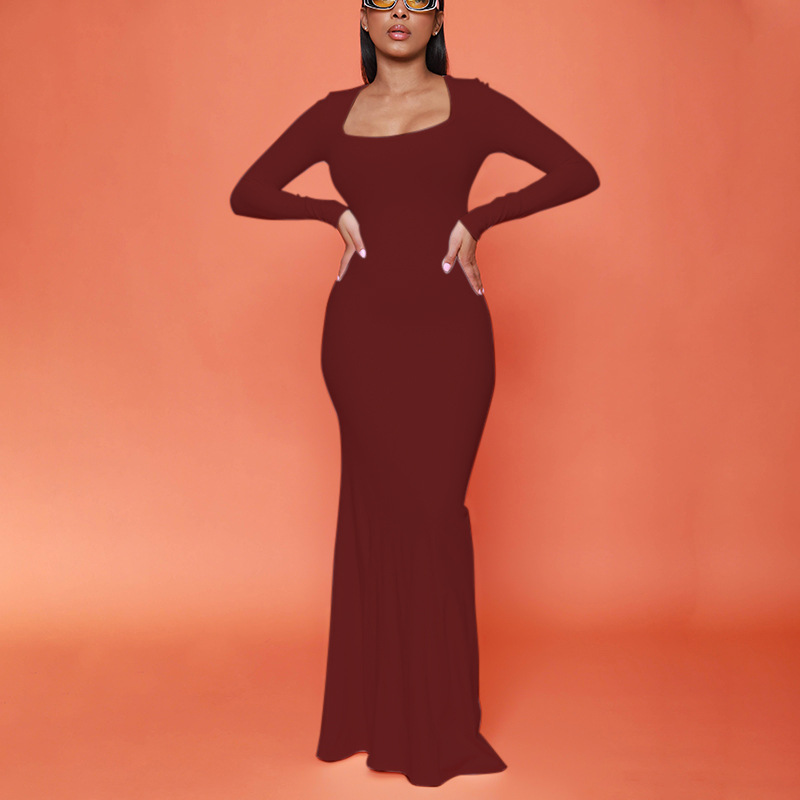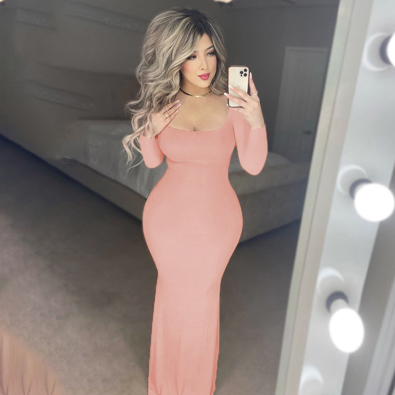 Q22DS381欧美女装2022卡戴珊skims 休闲长袖高腰修身吊带连衣长裙