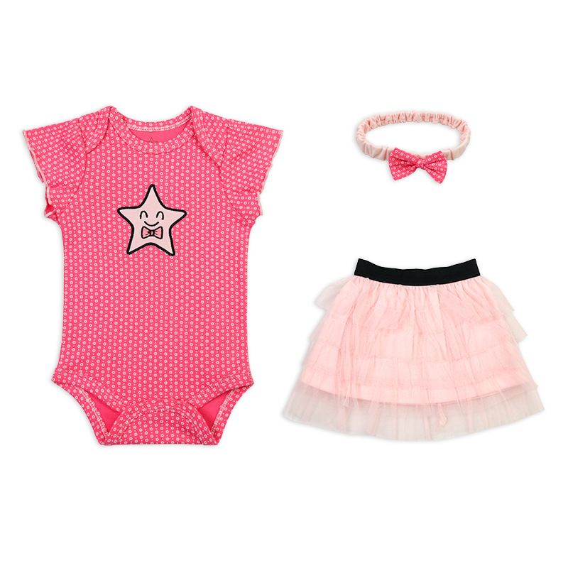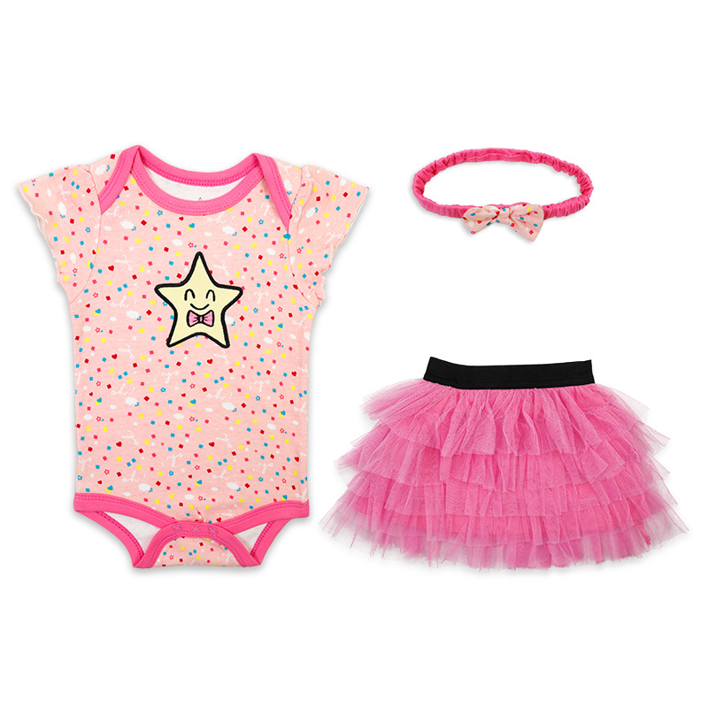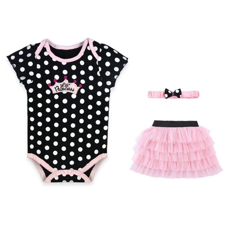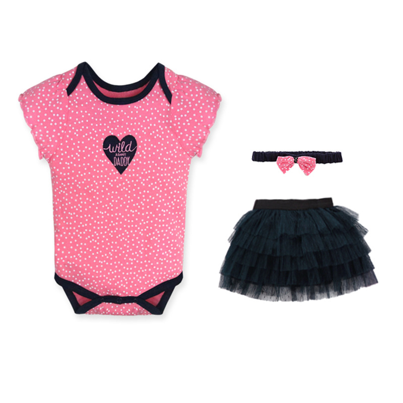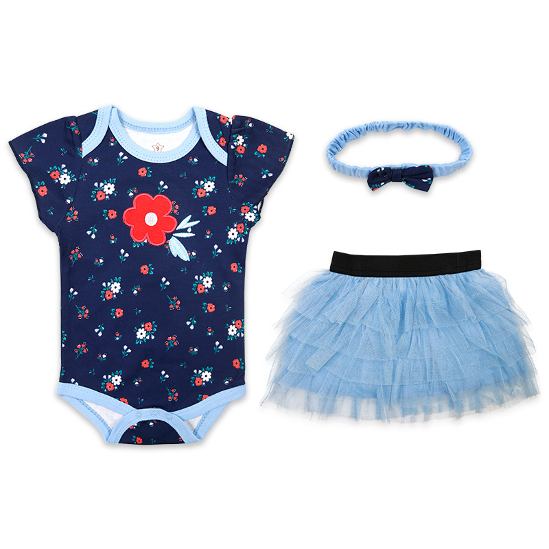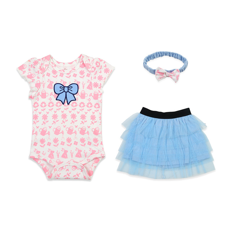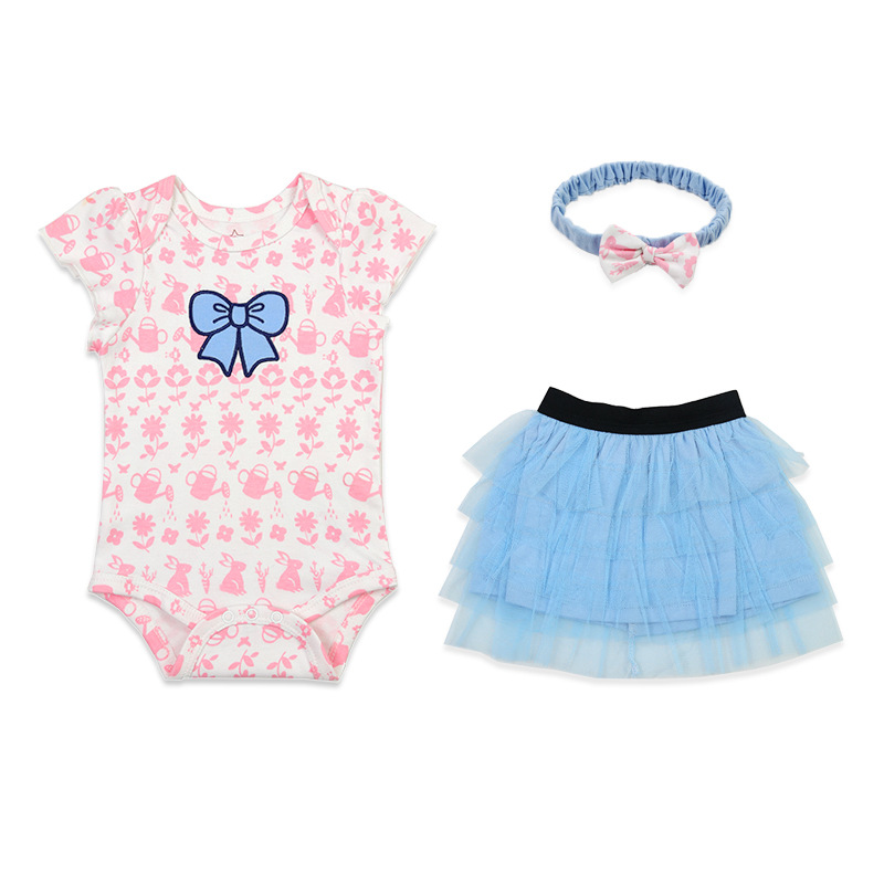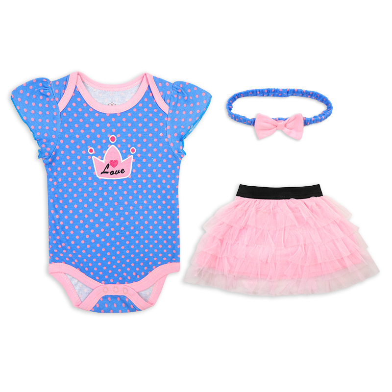 亚马逊婴儿童装女童女宝宝连体衣包屁衣精致头带蓬松纱裙三件套棉