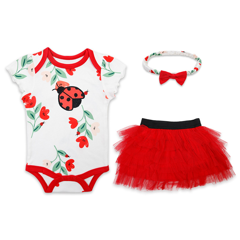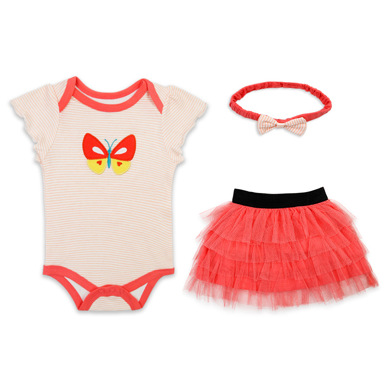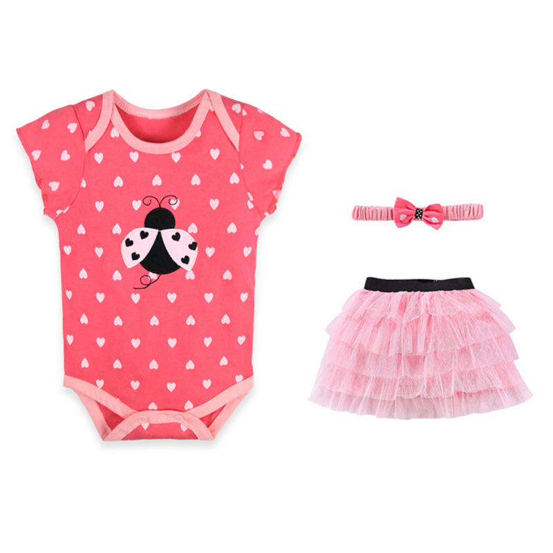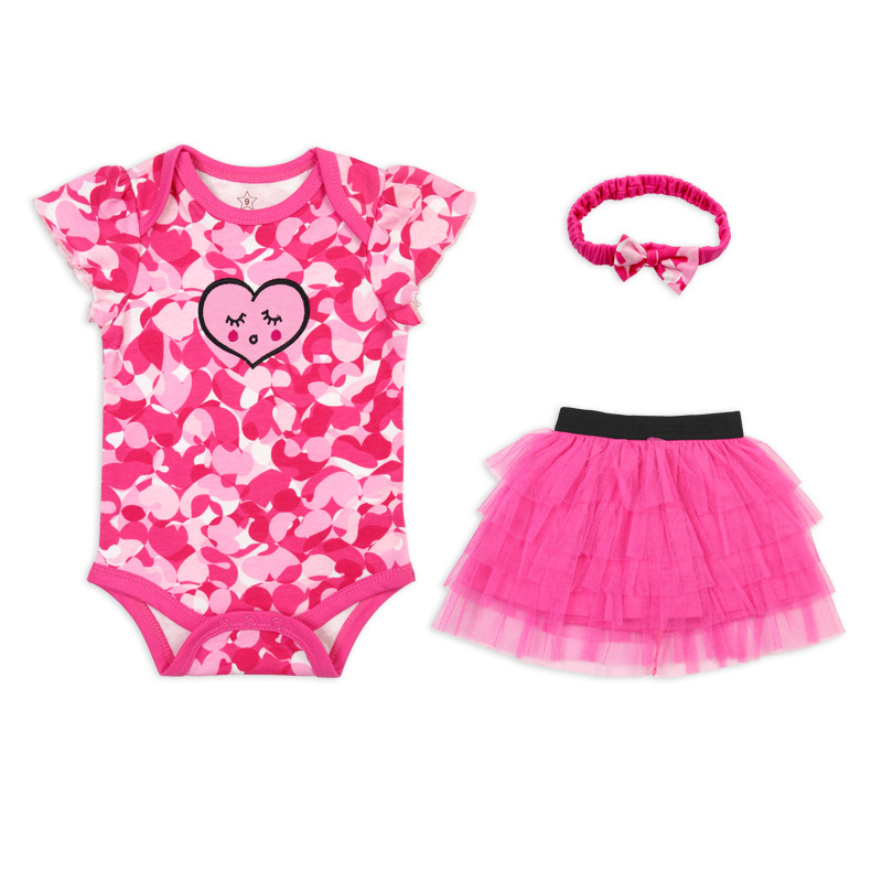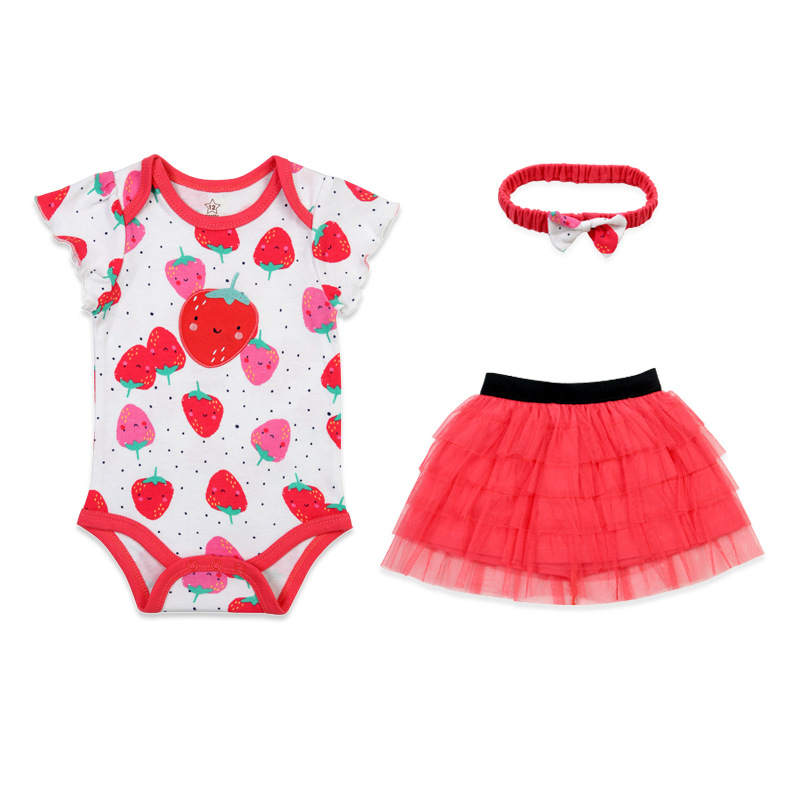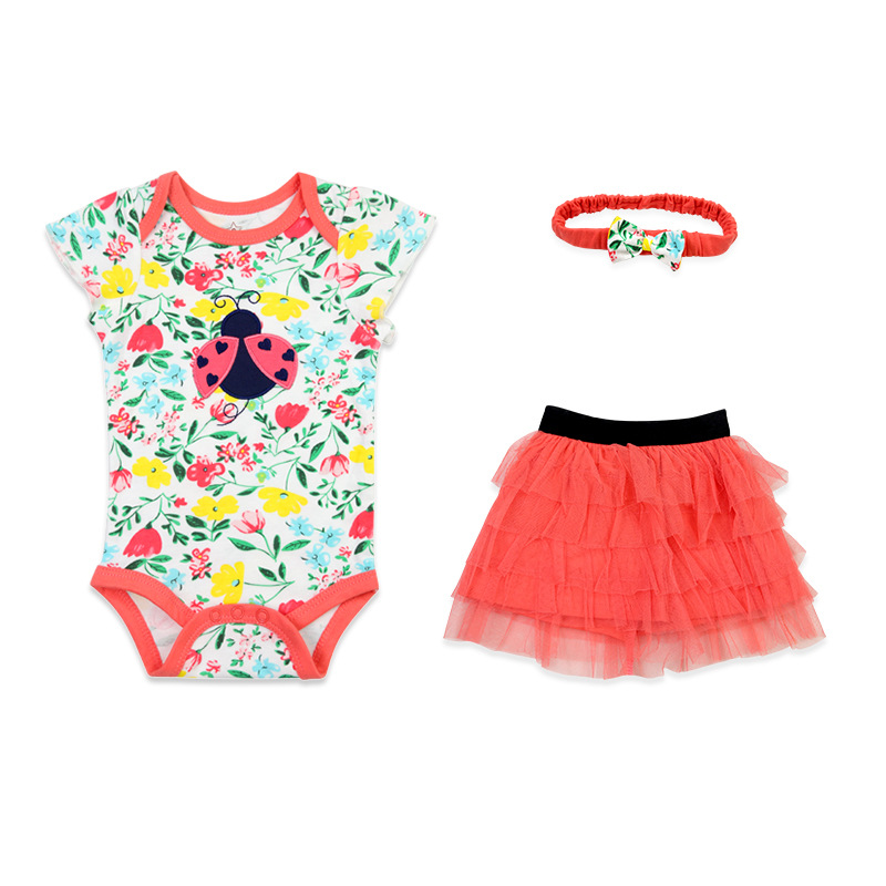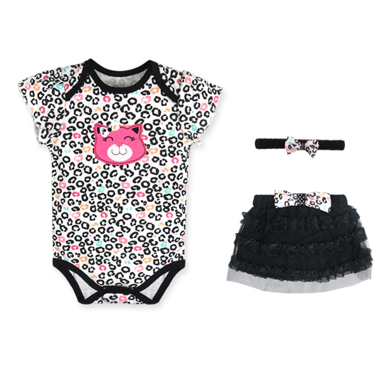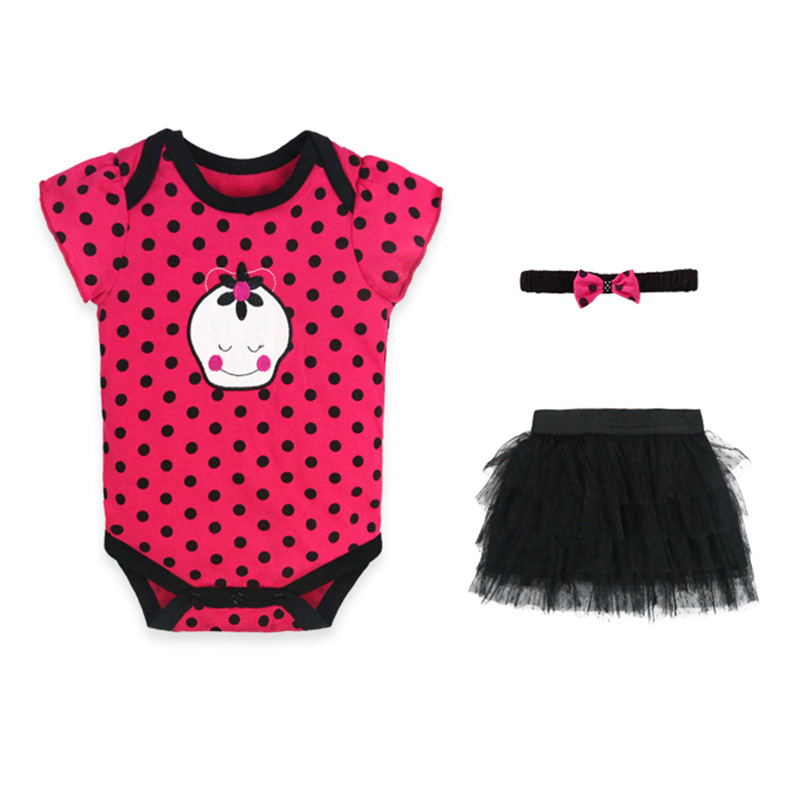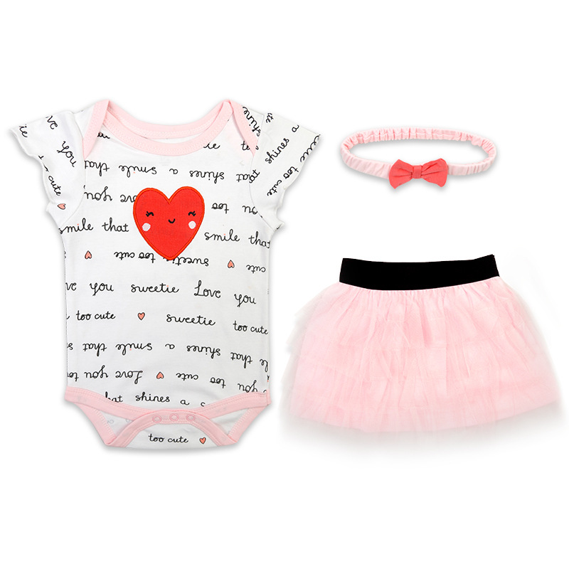 亚马逊婴儿童装女童女宝宝连体衣包屁衣精致头带蓬松纱裙三件套棉