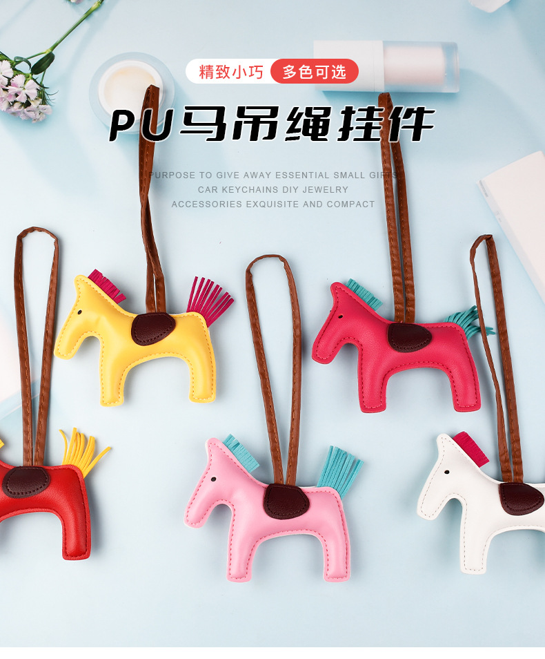 PU充棉小马手绳汽车钥匙扣挂件卡通多功能钥匙圈手机包包挂饰批发