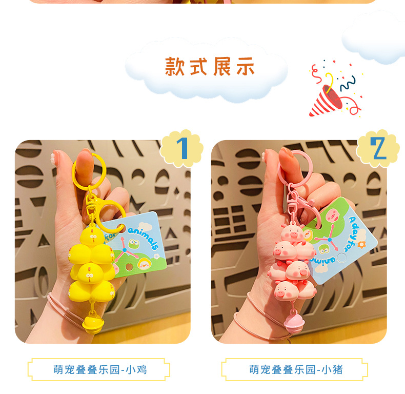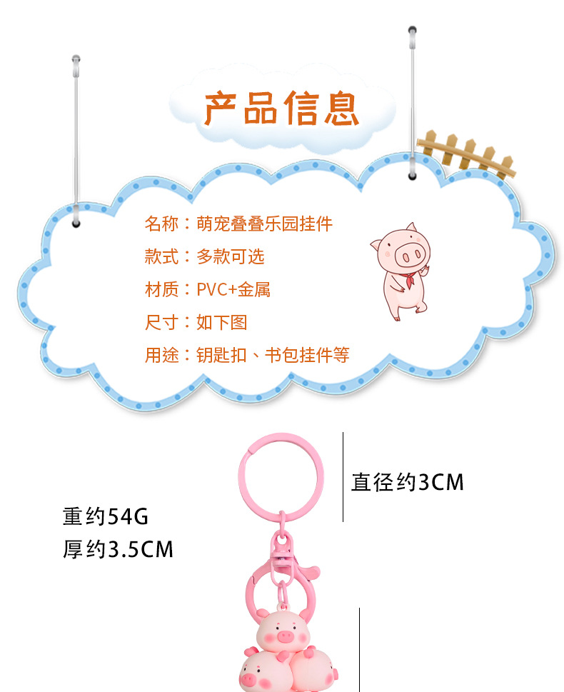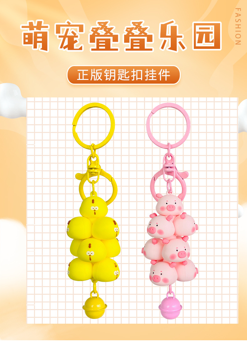 正中萌宠叠叠小猪卡通公仔创意钥匙扣学生书包通天猪猪塔挂件批发