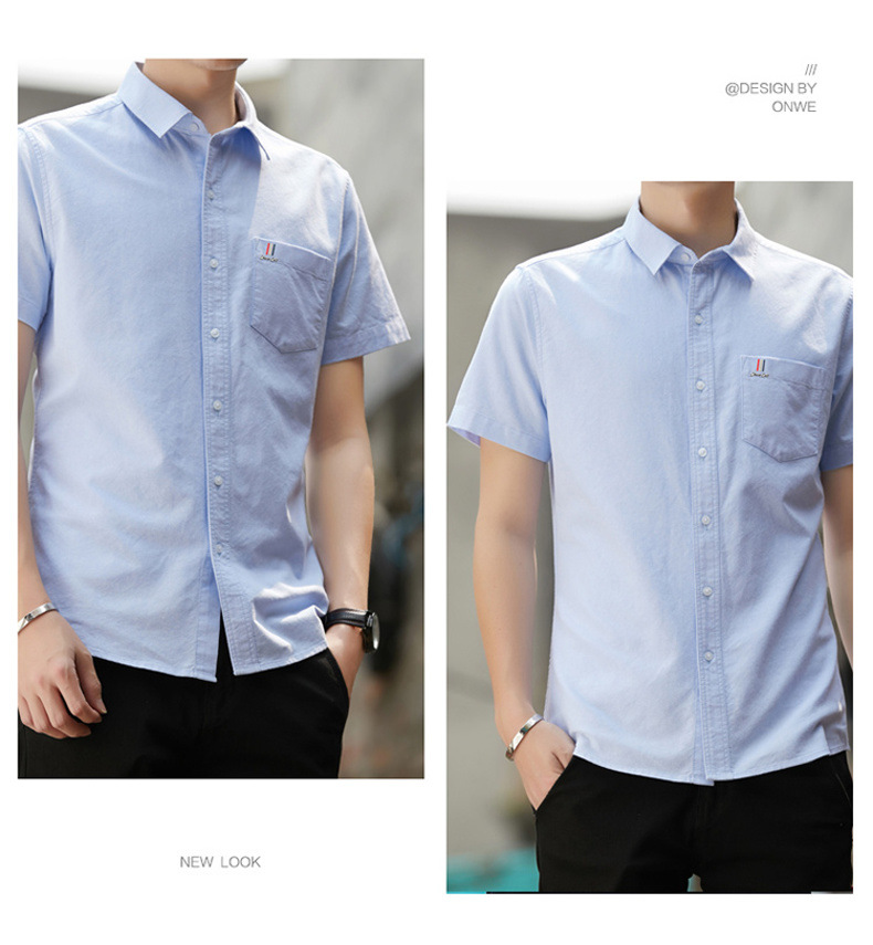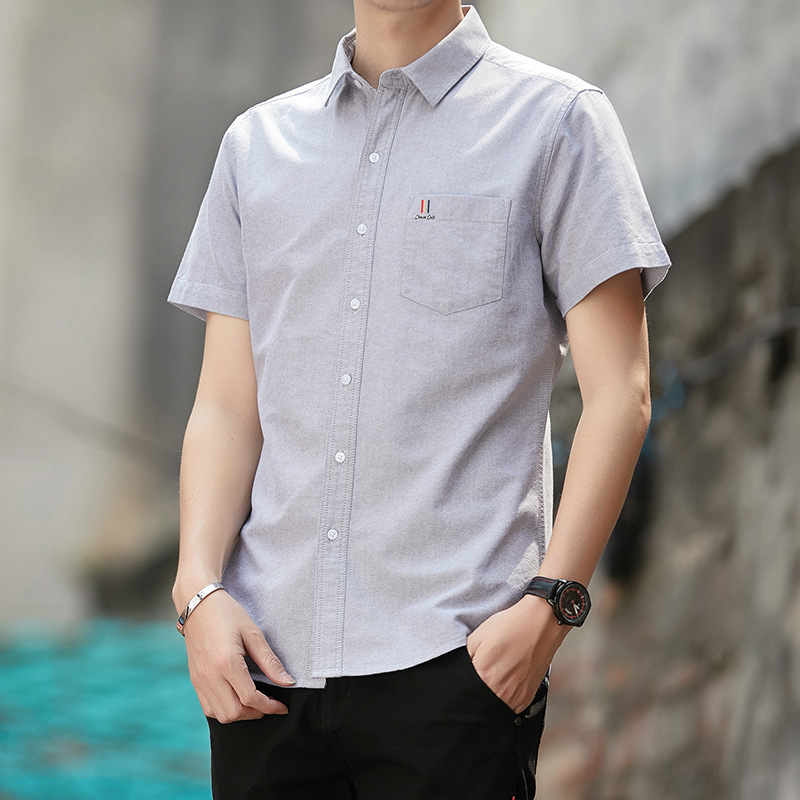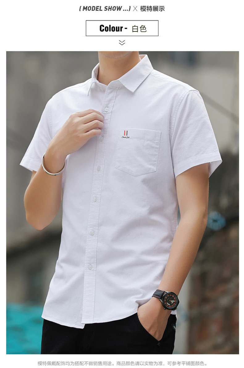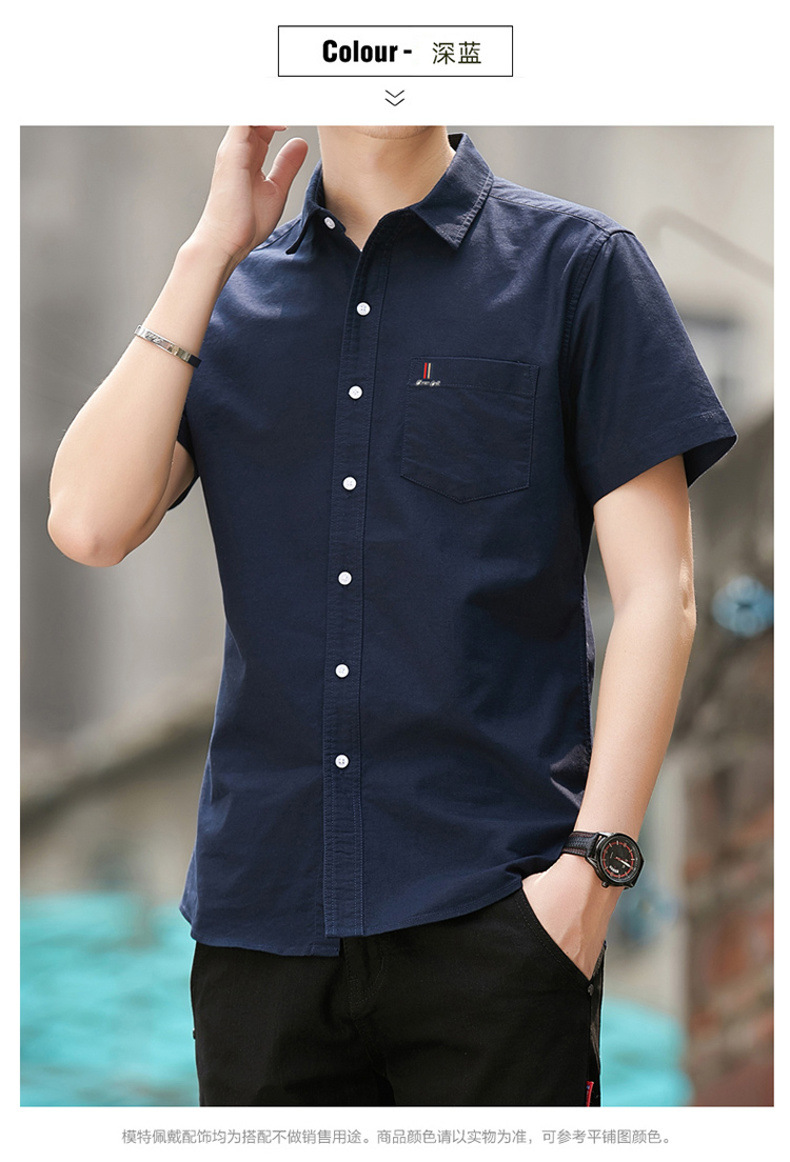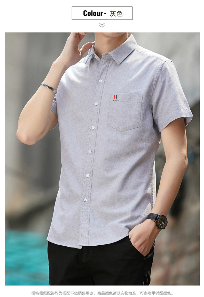 纯棉男士衬衫短袖2024新款夏季牛津布纯色薄款商务休闲全棉衬衣男