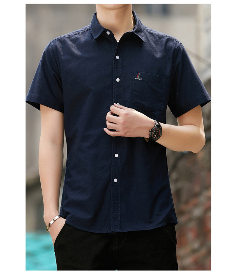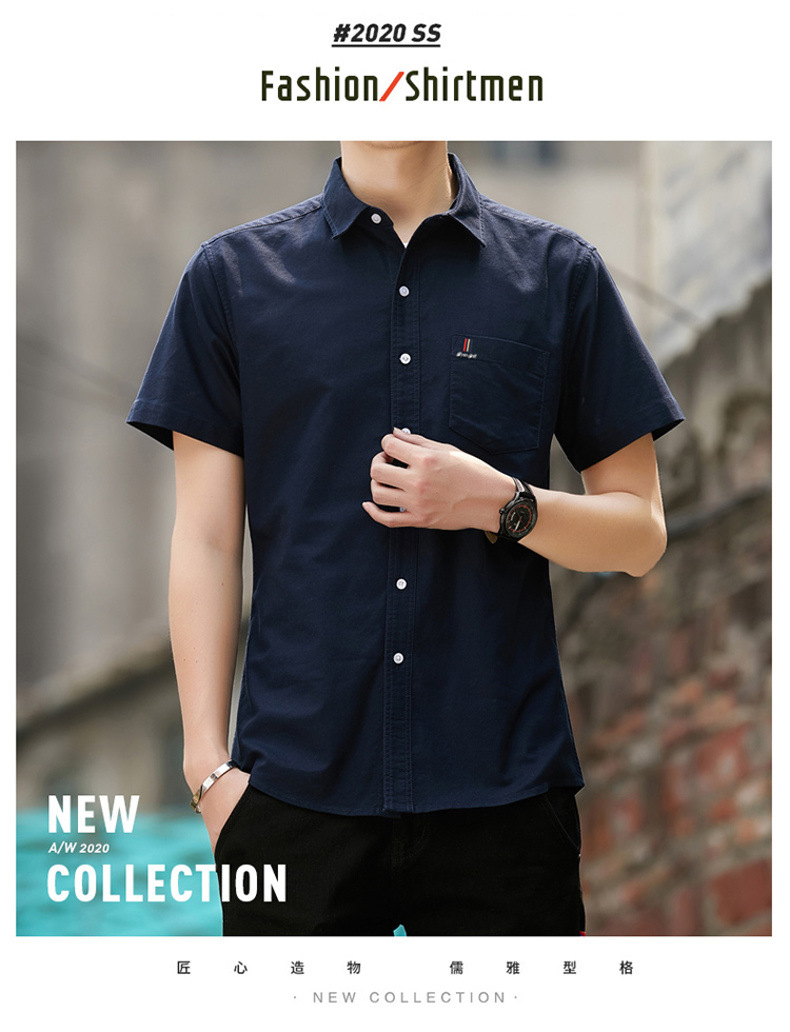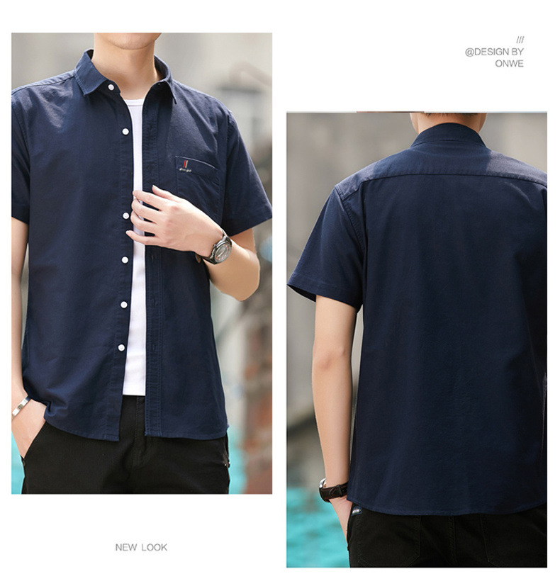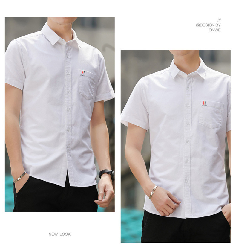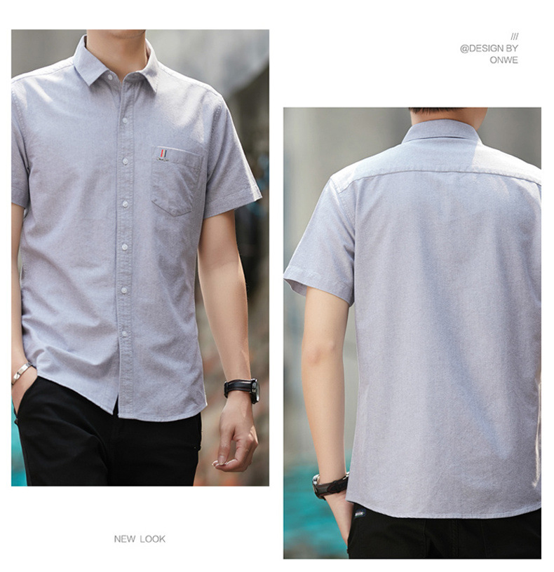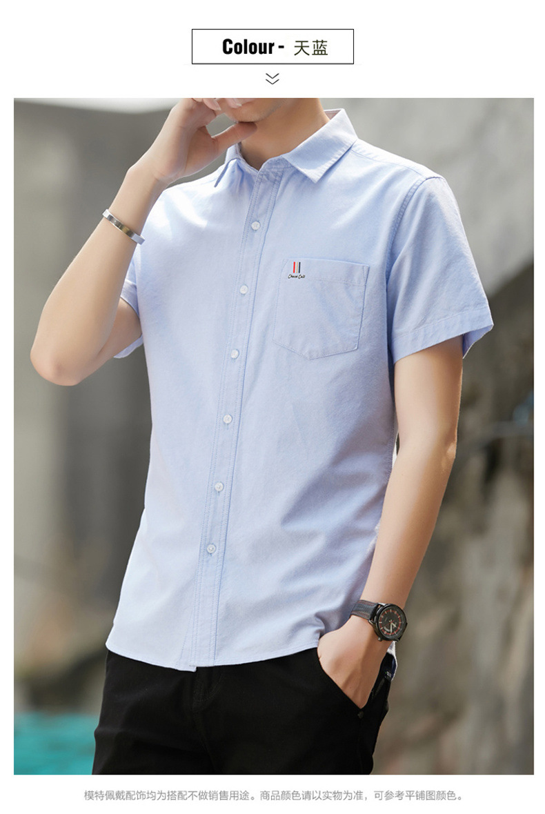 纯棉男士衬衫短袖2024新款夏季牛津布纯色薄款商务休闲全棉衬衣男