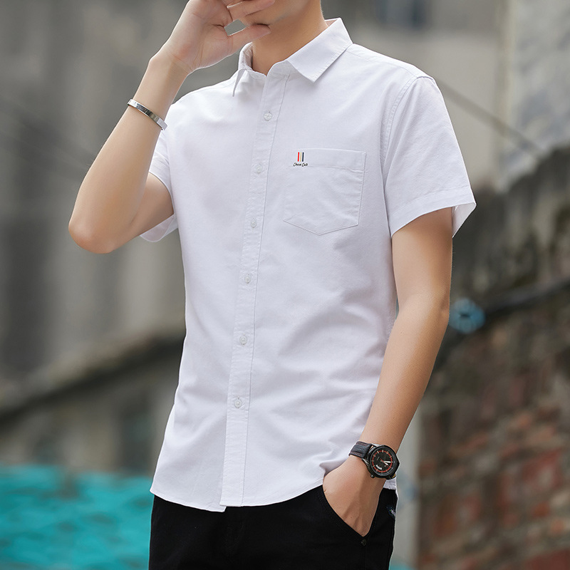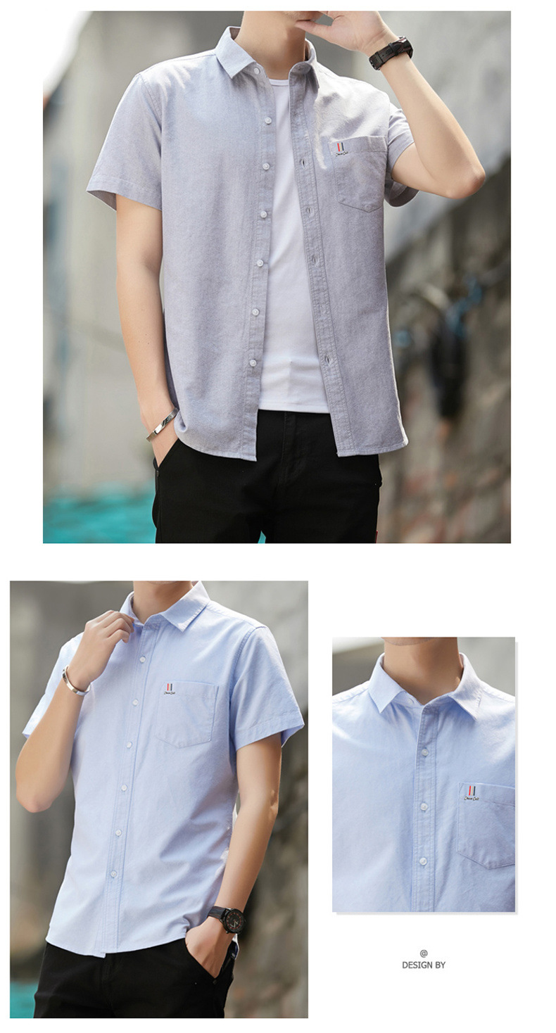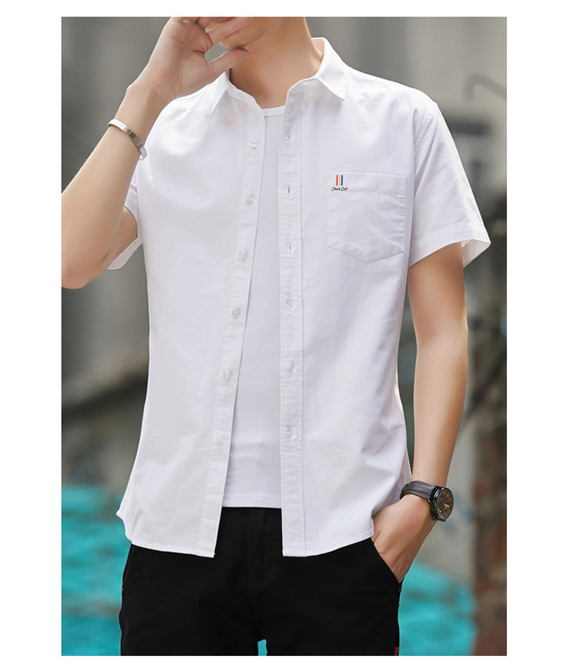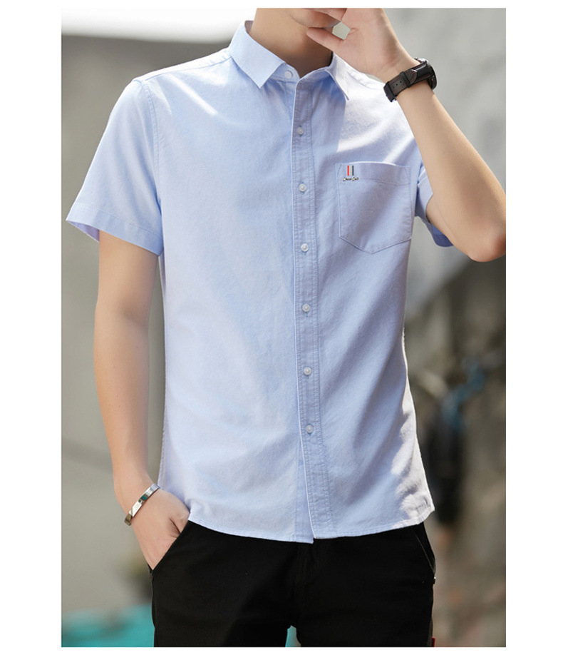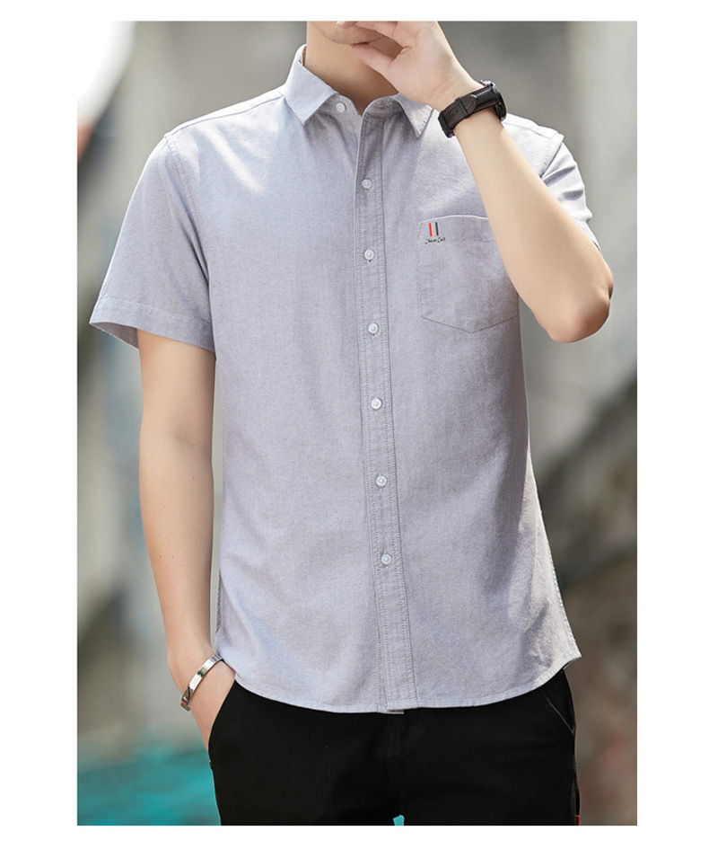 纯棉男士衬衫短袖2024新款夏季牛津布纯色薄款商务休闲全棉衬衣男
