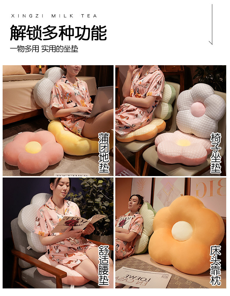 夏季冰豆豆花朵坐垫床上靠垫办公室沙发护腰枕头宿舍椅子垫蒲团垫