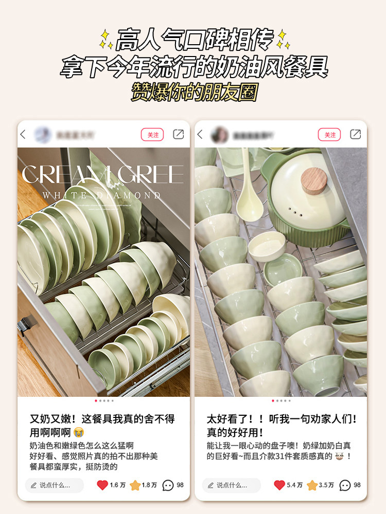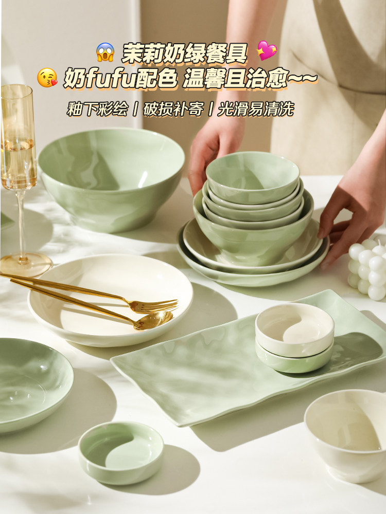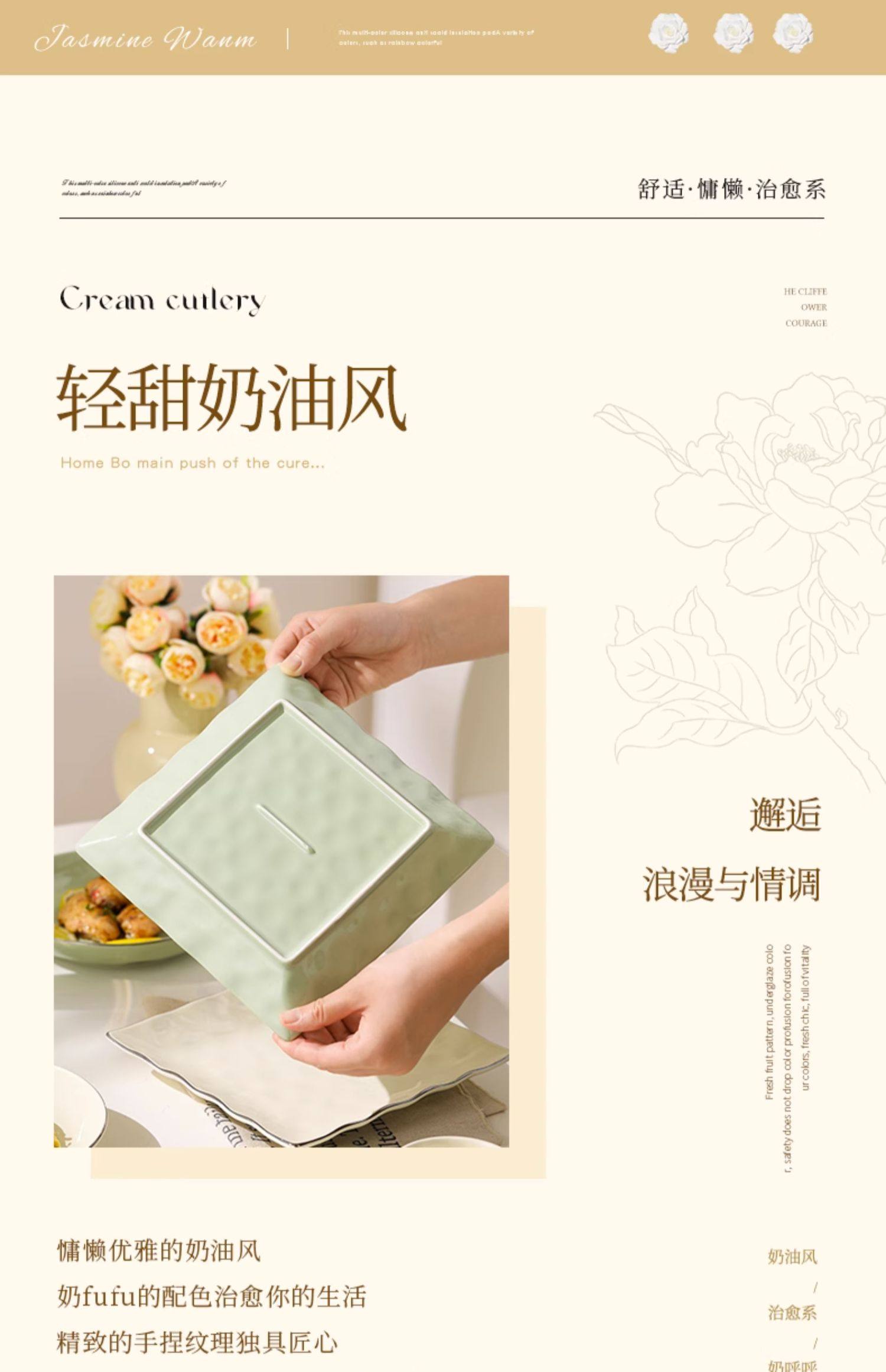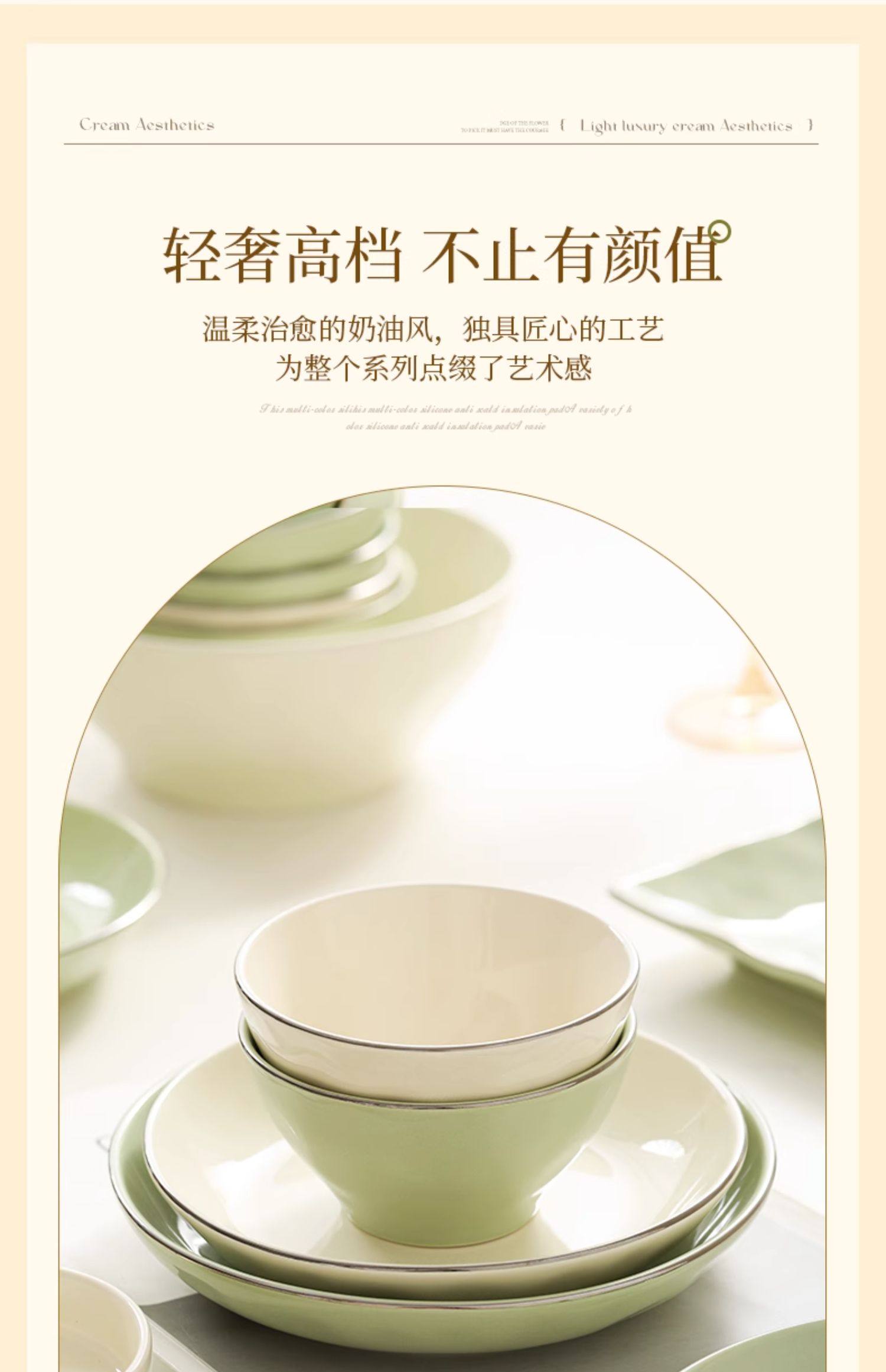 餐具奶油风碗碟套装家用高级感陶瓷饭碗盘子轻奢乔迁新居碗筷餐具