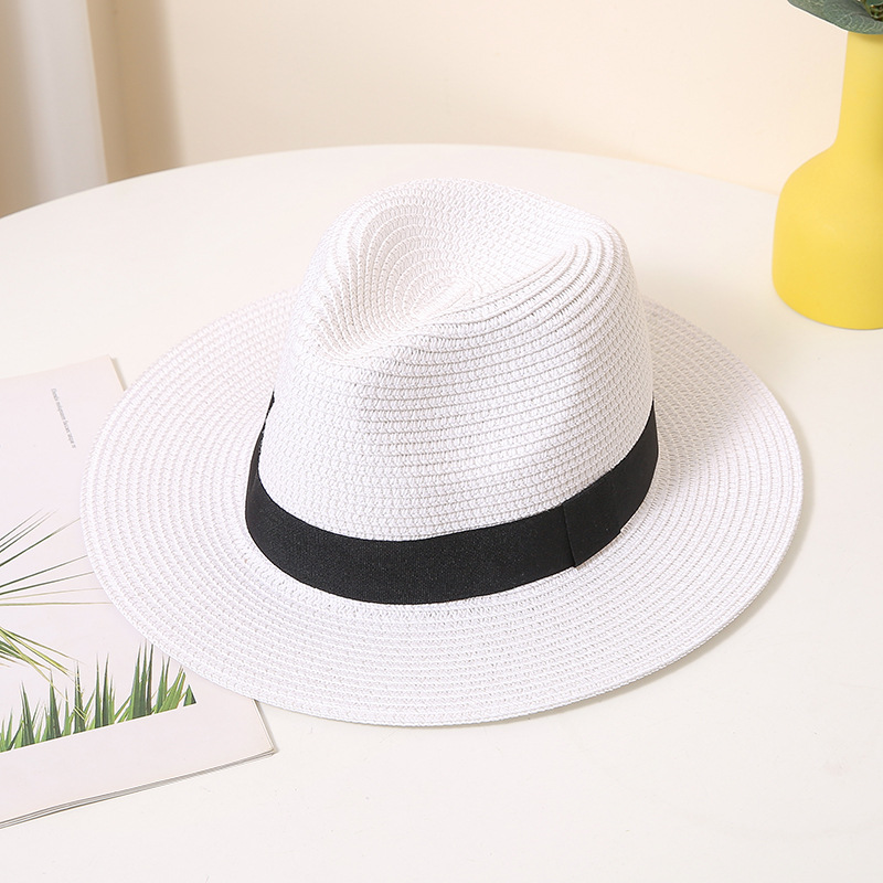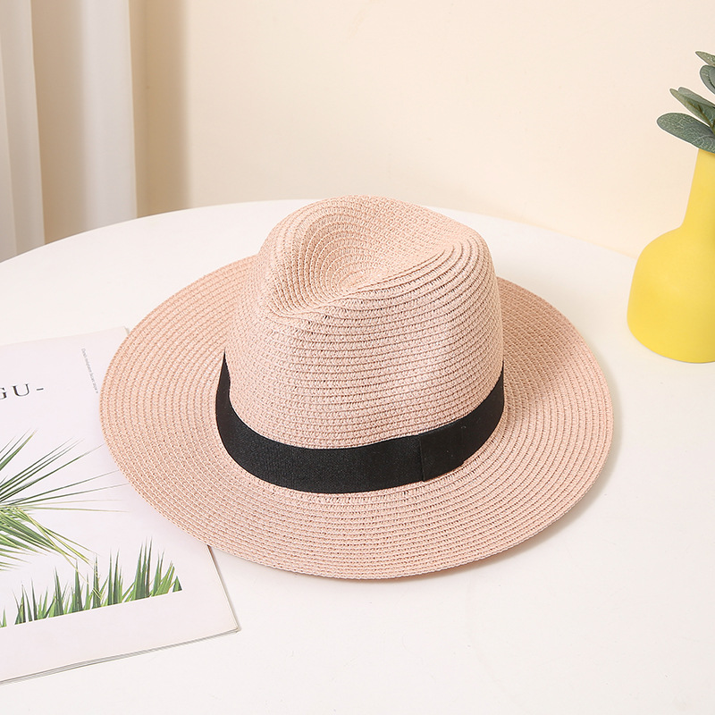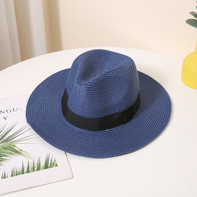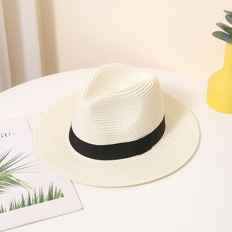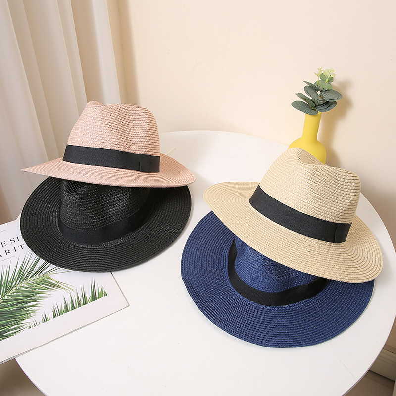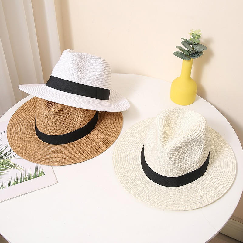 男士英伦礼帽夏季遮阳防晒沙滩帽太阳帽纸编帽女宽檐气质草帽跨境