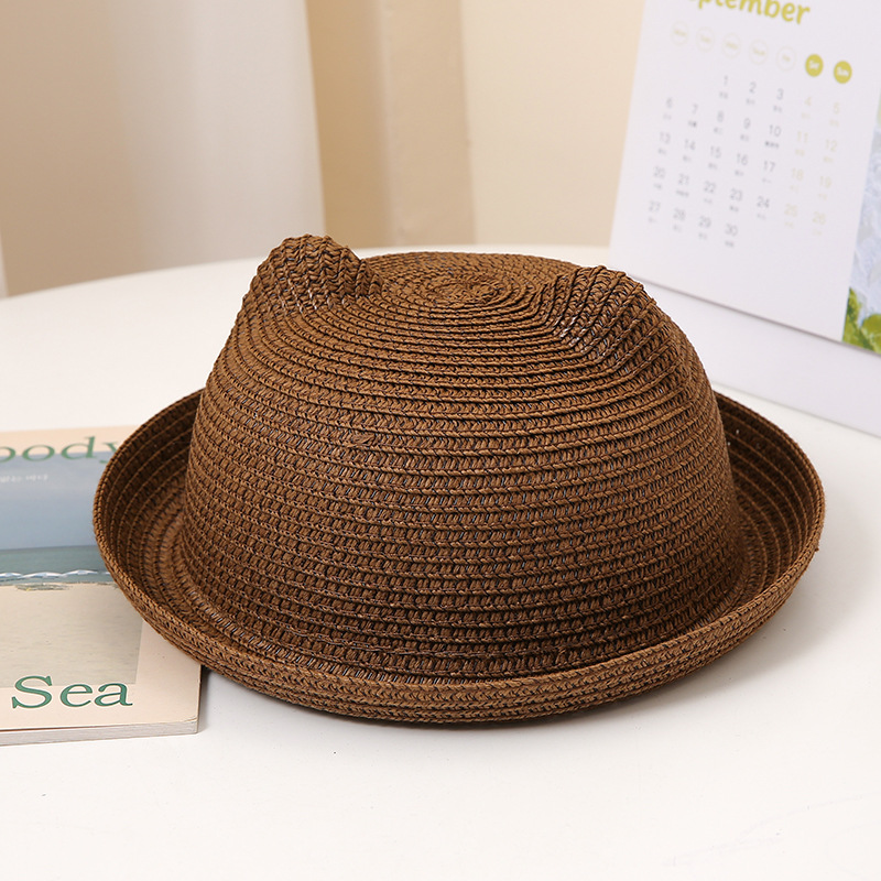 可爱卡通儿童帽彩色帽子 韩版春秋帽遮阳帽 猫耳朵帽子草帽厂家