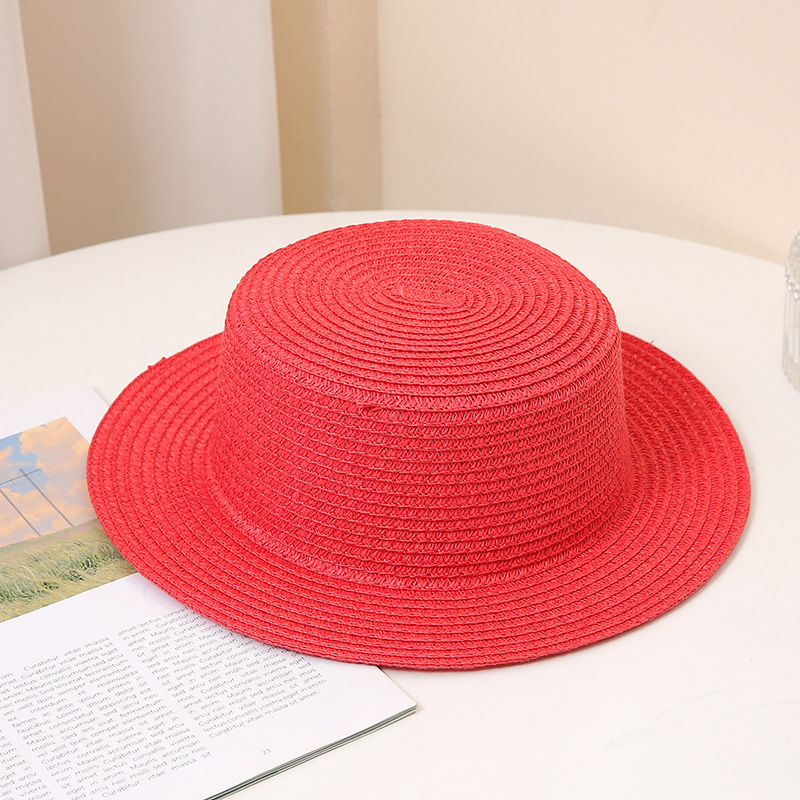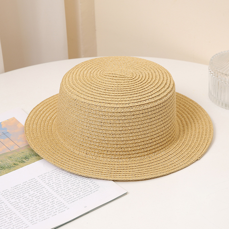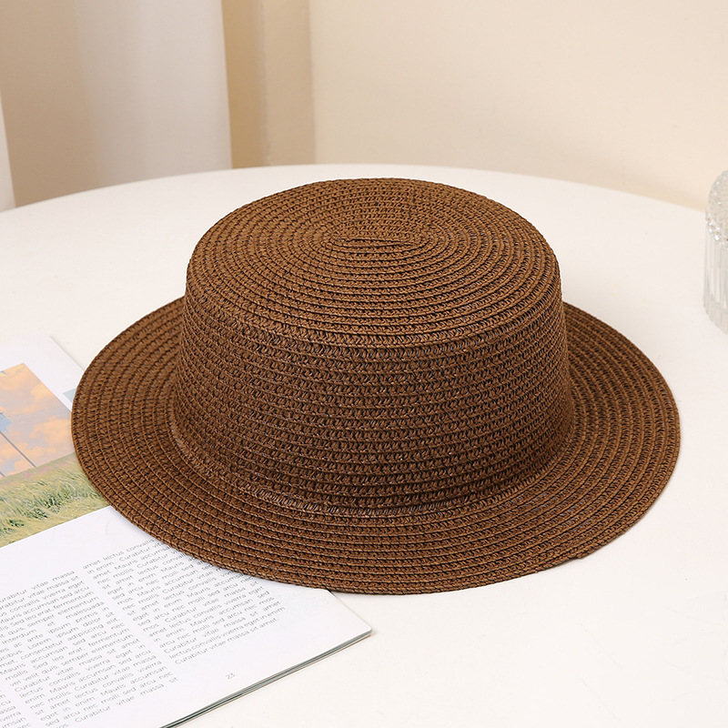 夏季时尚百搭男女士草编帽子平顶时尚防晒可折叠礼帽沙滩旅游草帽
