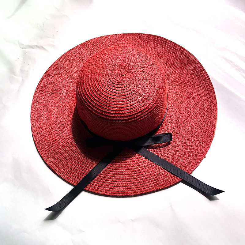 夏季海滩欧美风大檐蝴蝶结缎带女士草帽旅行度假可折叠女式沙滩帽