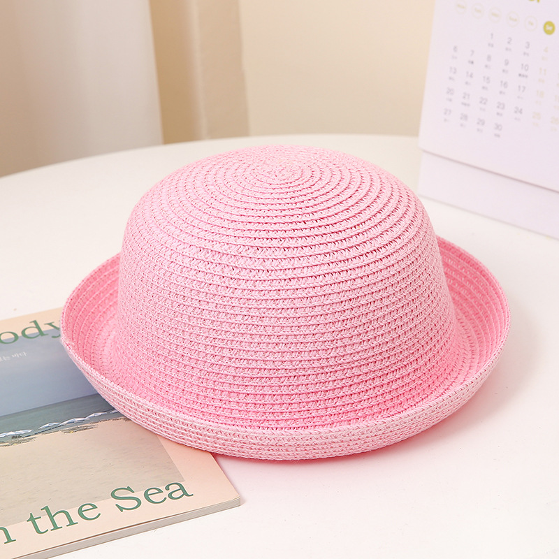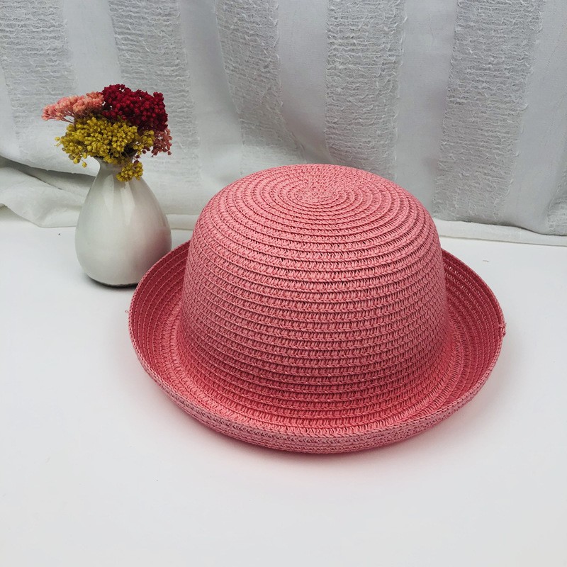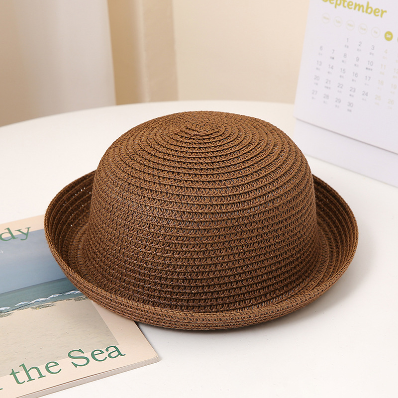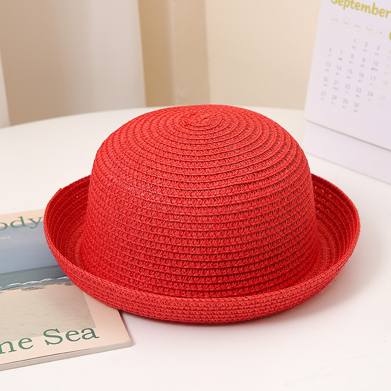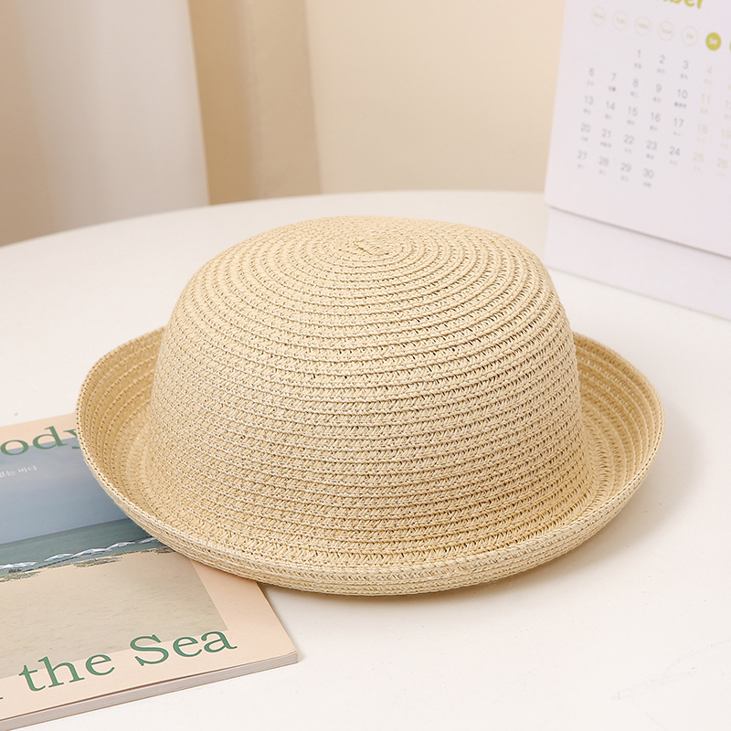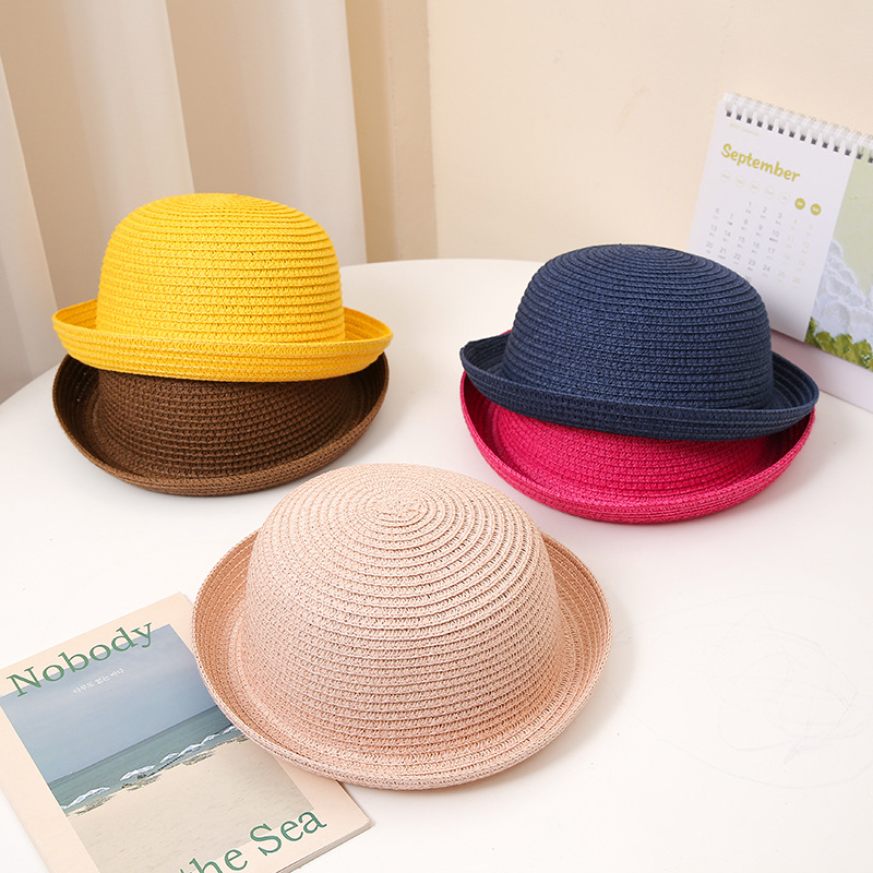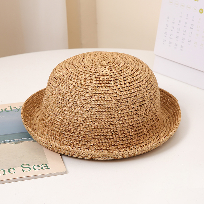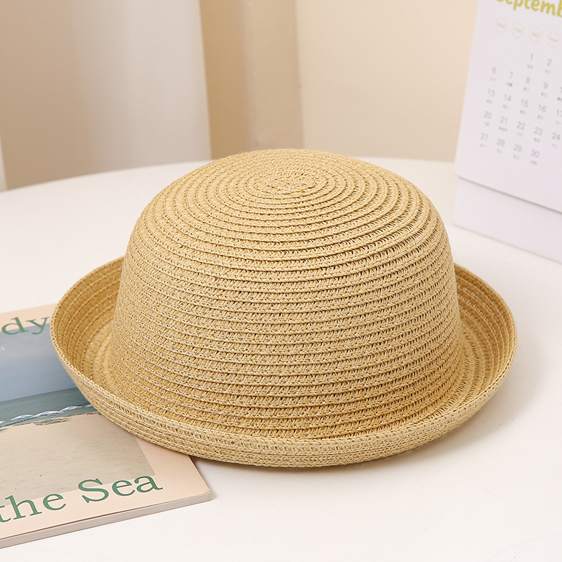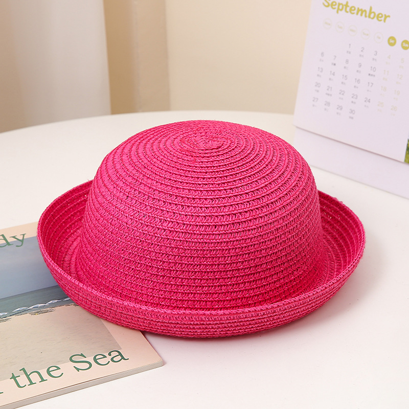 韩款新女式卷边帽亲子款翻边纯色草编太阳帽夏季遮阳防晒短檐帽子