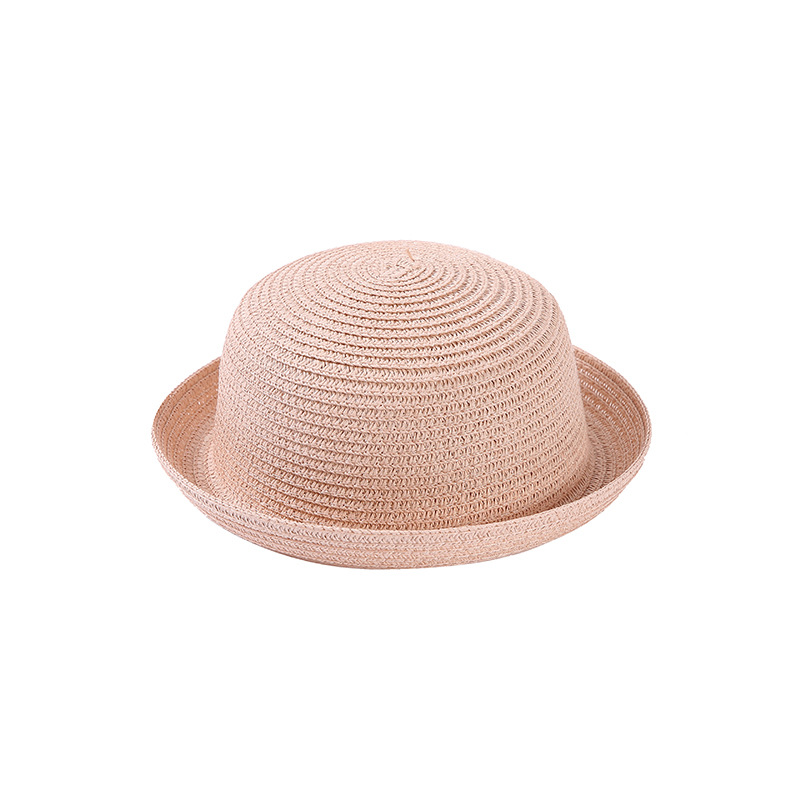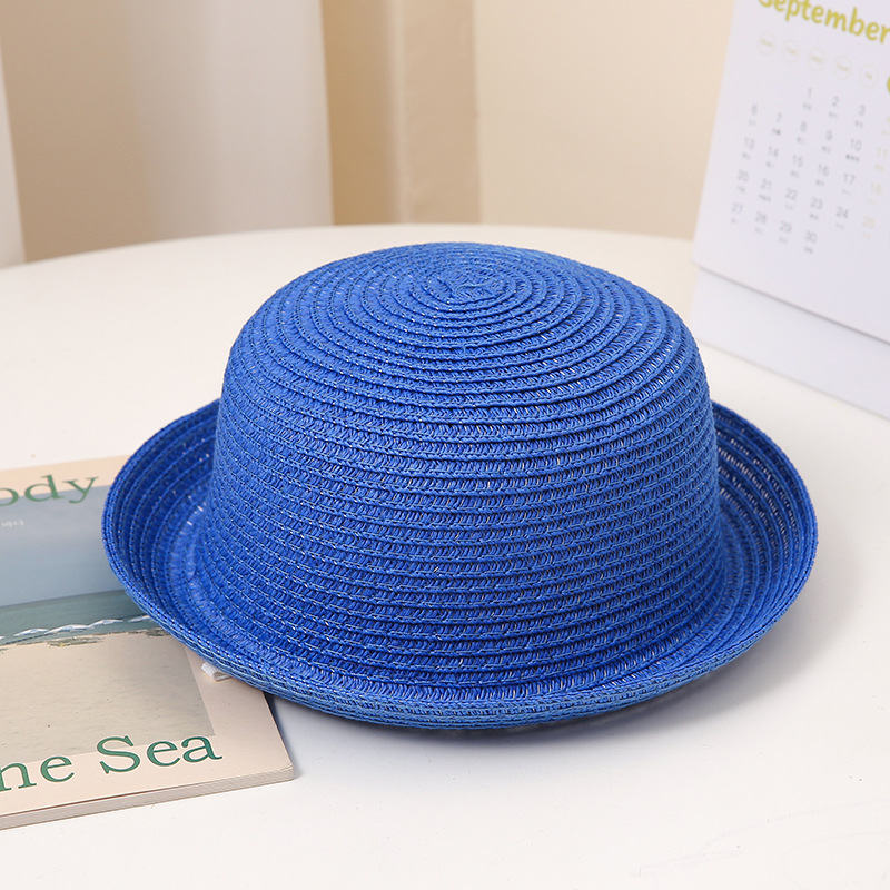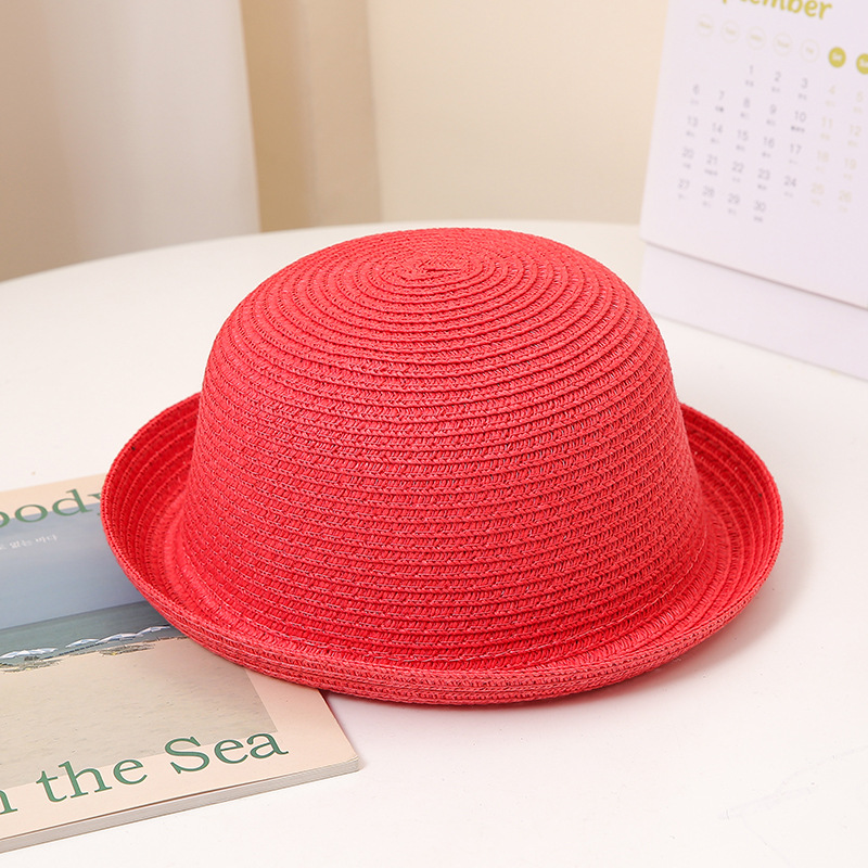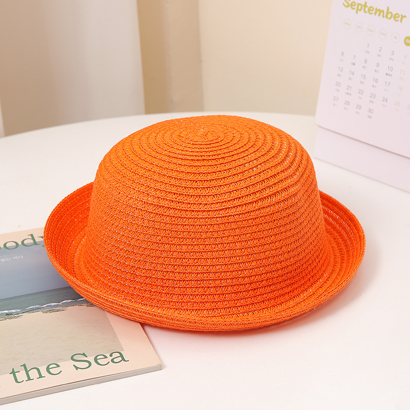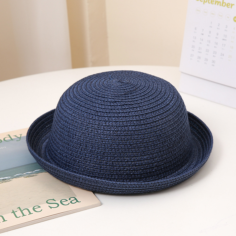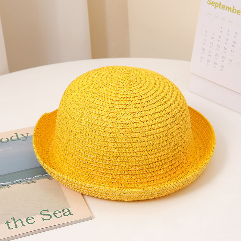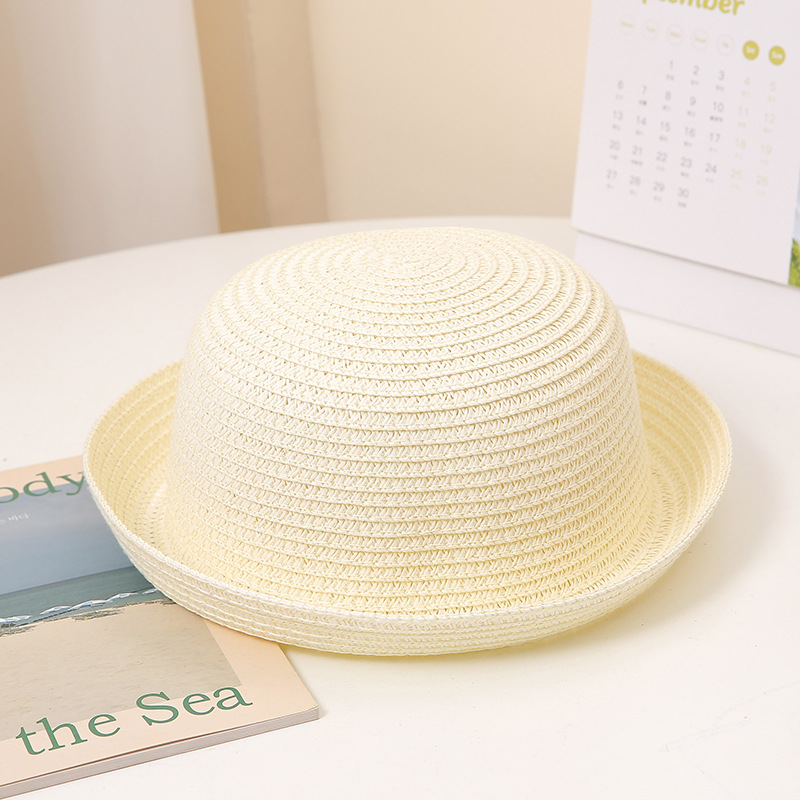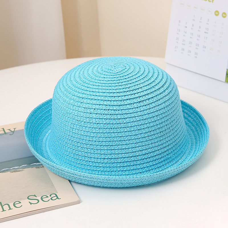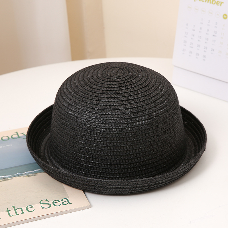 韩款新女式卷边帽亲子款翻边纯色草编太阳帽夏季遮阳防晒短檐帽子