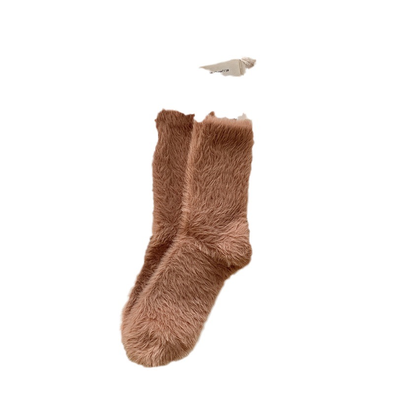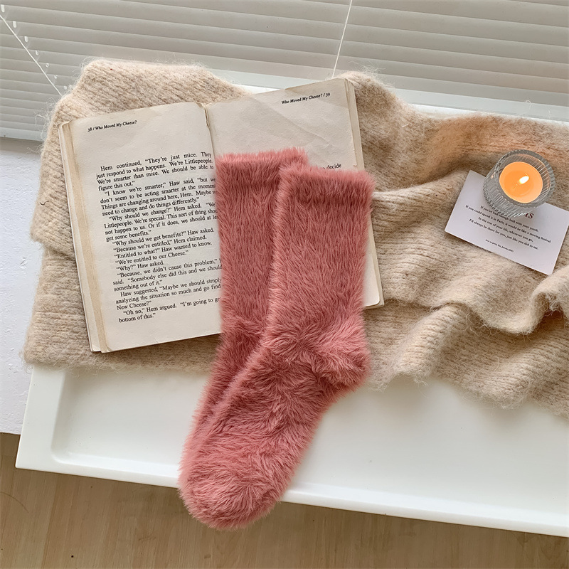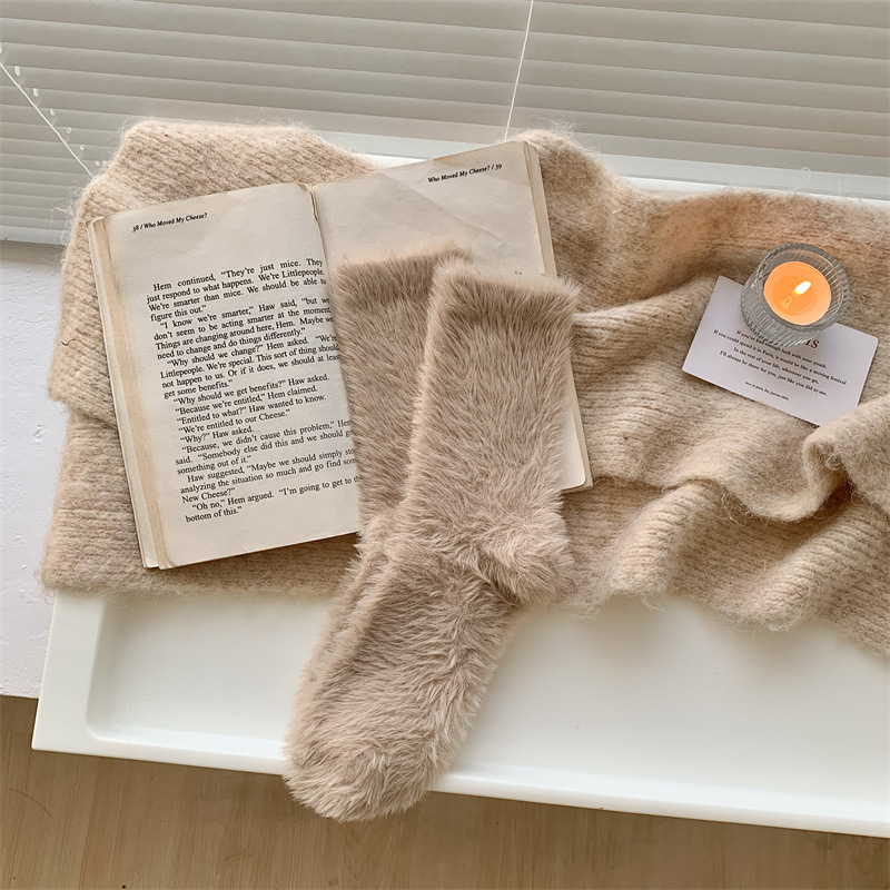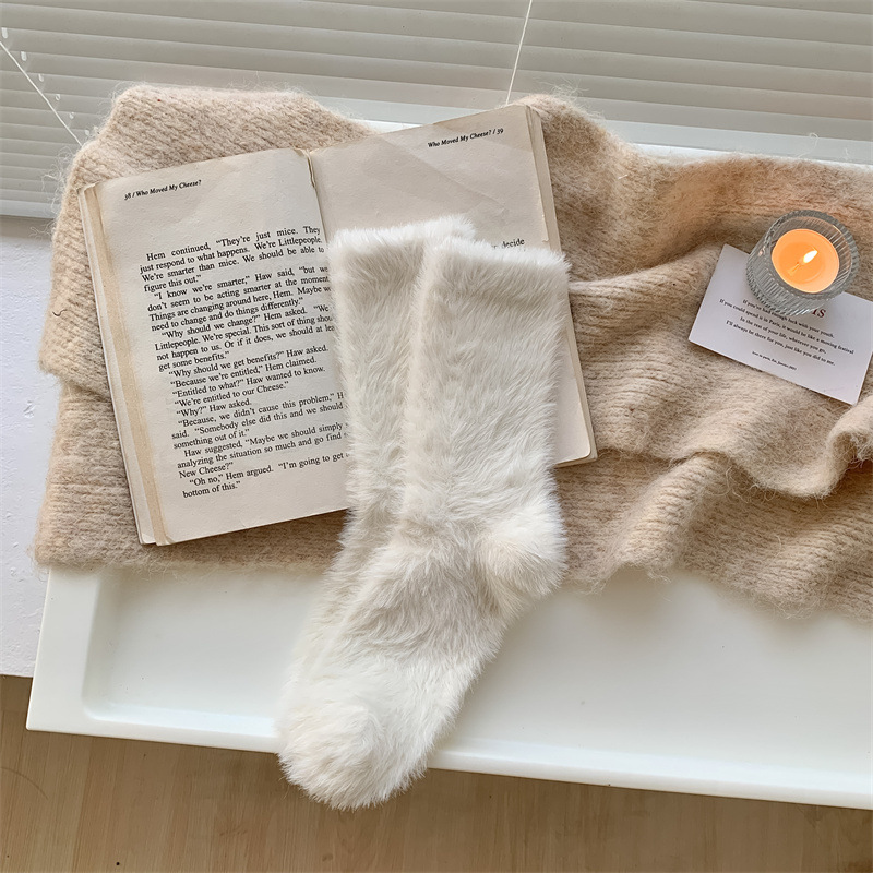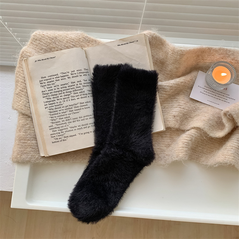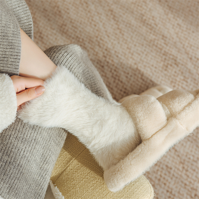 水貂绒袜子女秋冬季家居睡眠袜保暖毛毛地板袜加绒加厚中筒袜批发