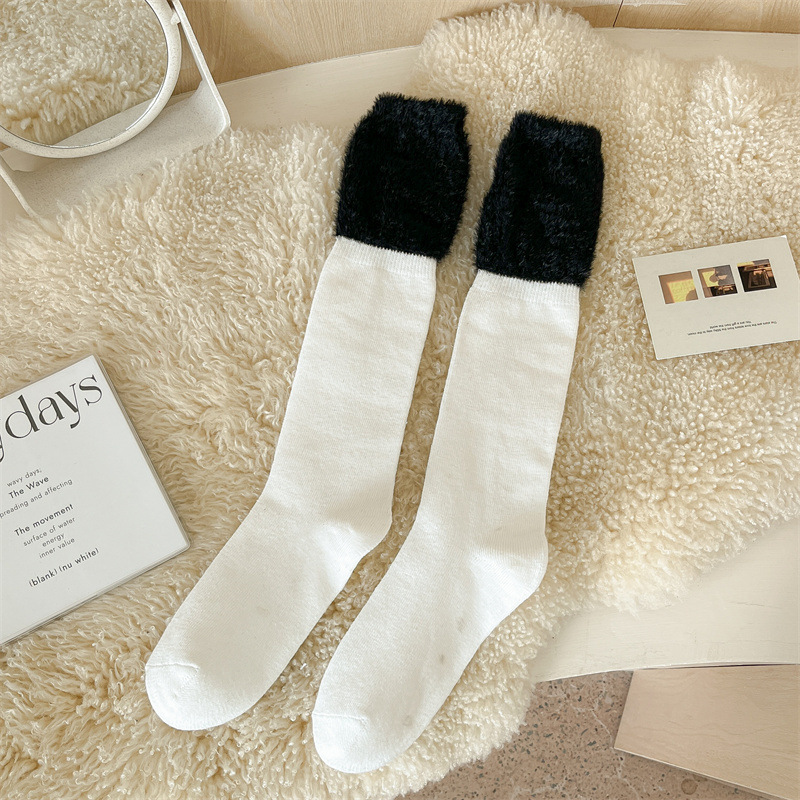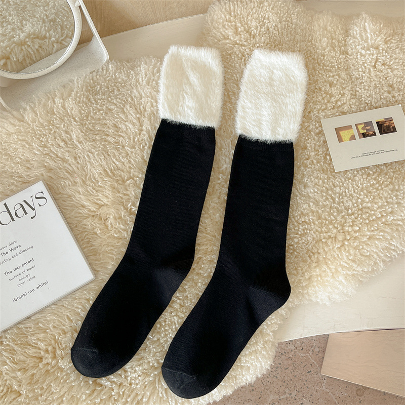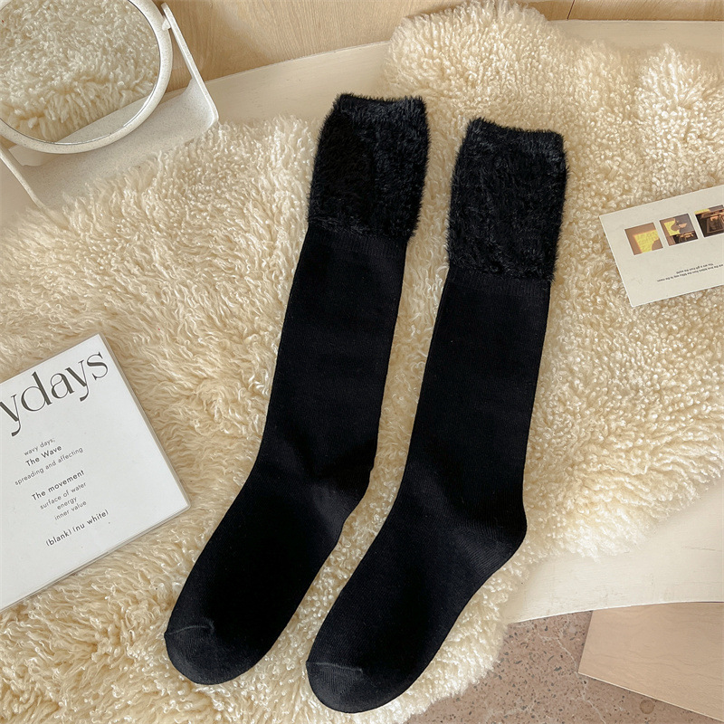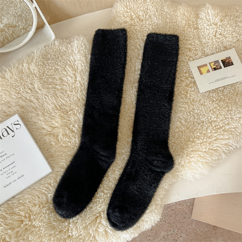 水貂绒袜子女小腿袜毛绒长筒袜秋冬季加厚保暖长袜月子产后睡眠袜