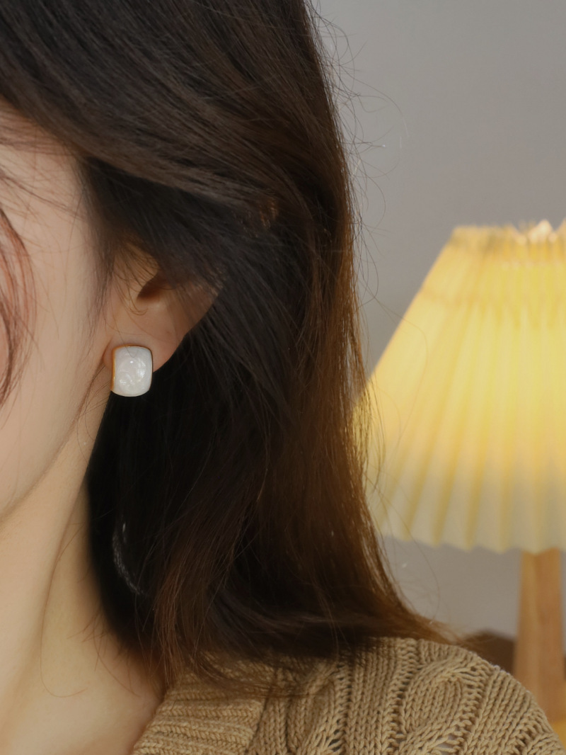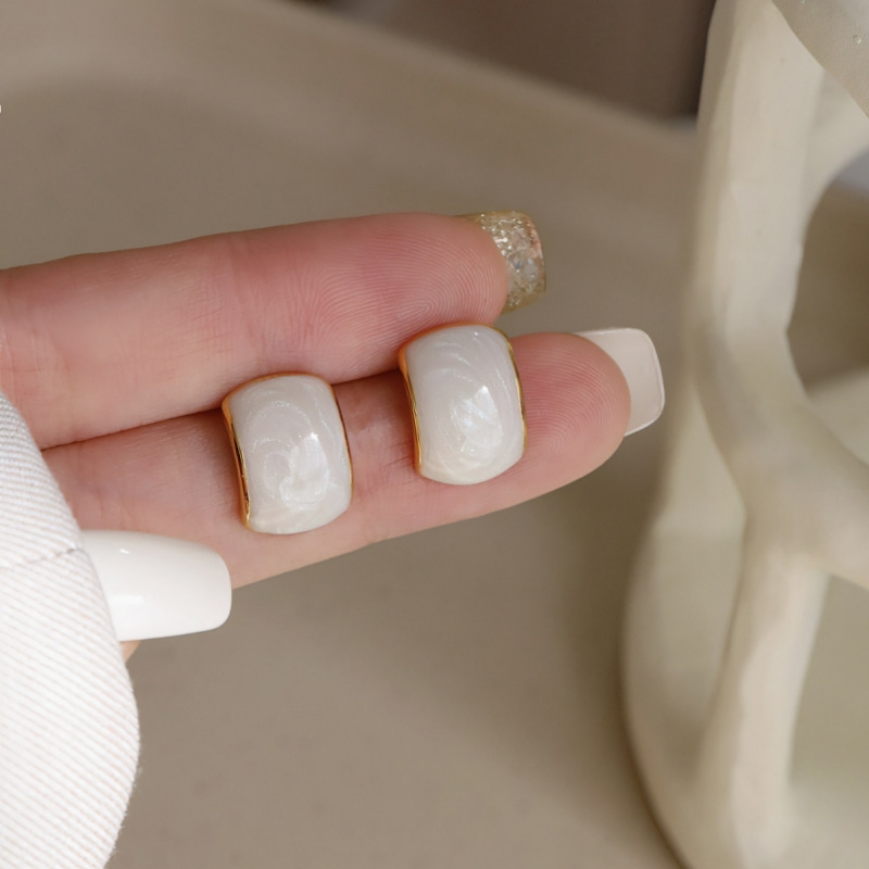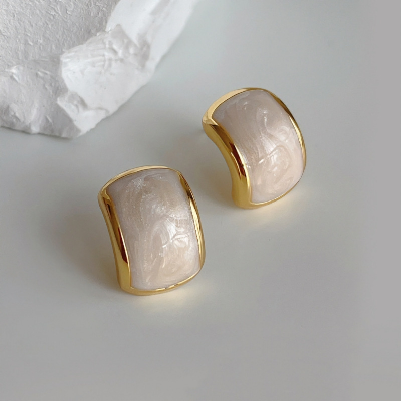 星空流沙珐琅滴釉耳钉复古法式耳环女2024年简约时尚通勤耳饰配饰
