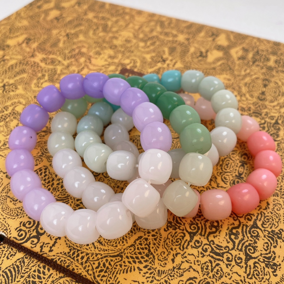 冰透白玉色仿菩提手串绕指柔渐变色粉色学生版盘玩圆珠手链手串