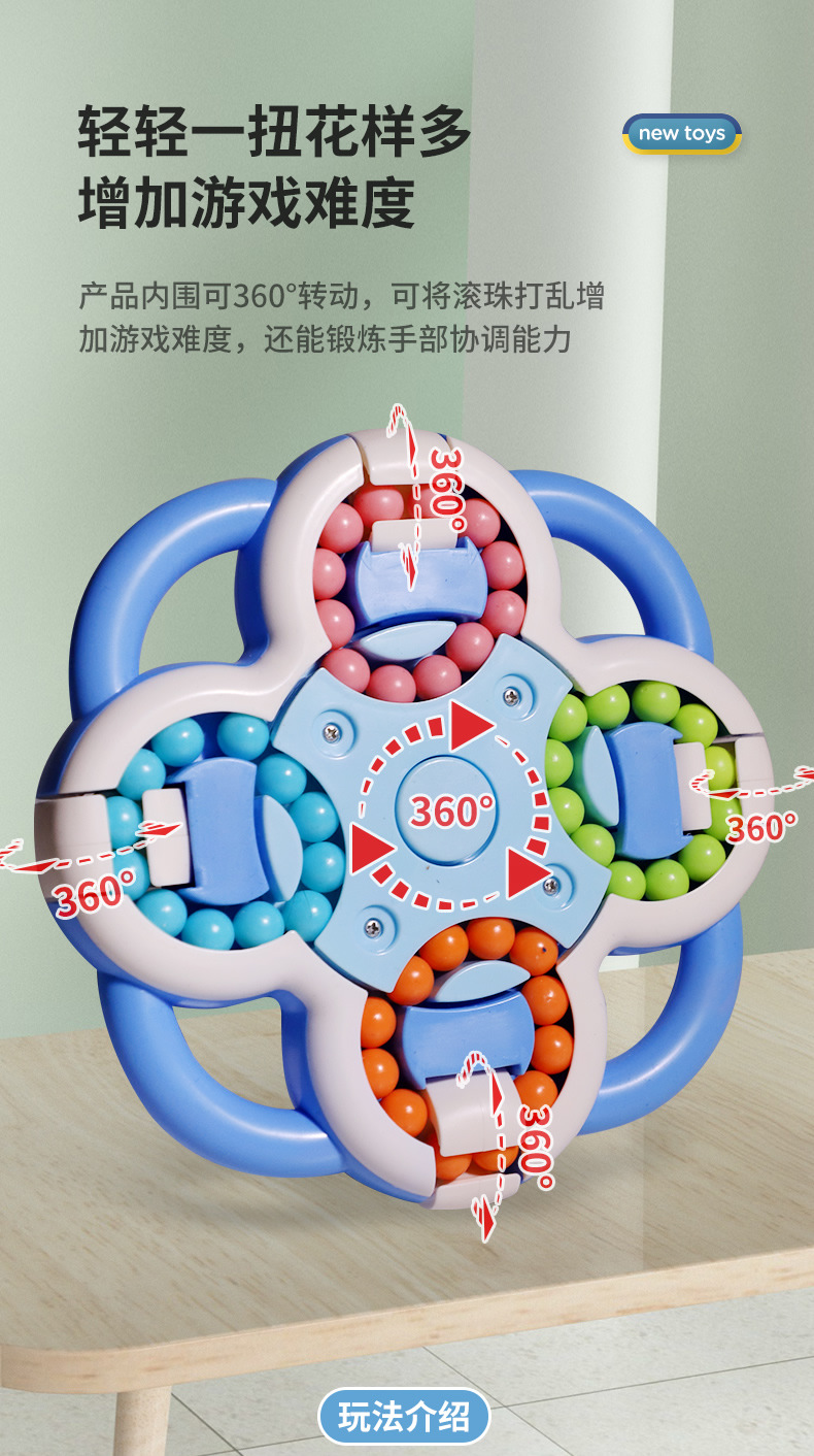 跨境儿童魔豆魔方指尖玩具翻转魔轮滚珠迷宫益智解压陀螺八面旋转