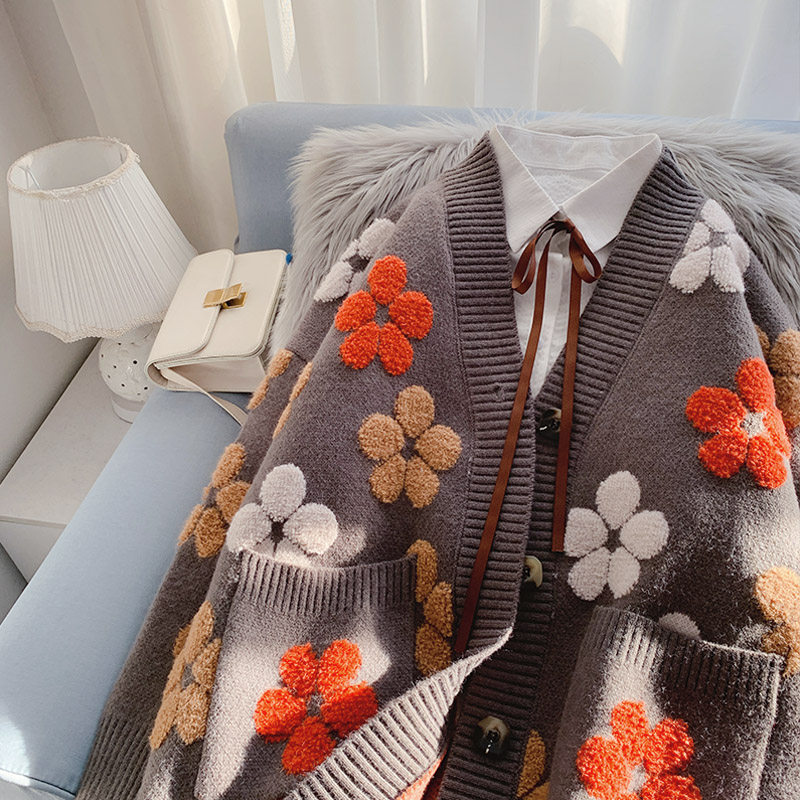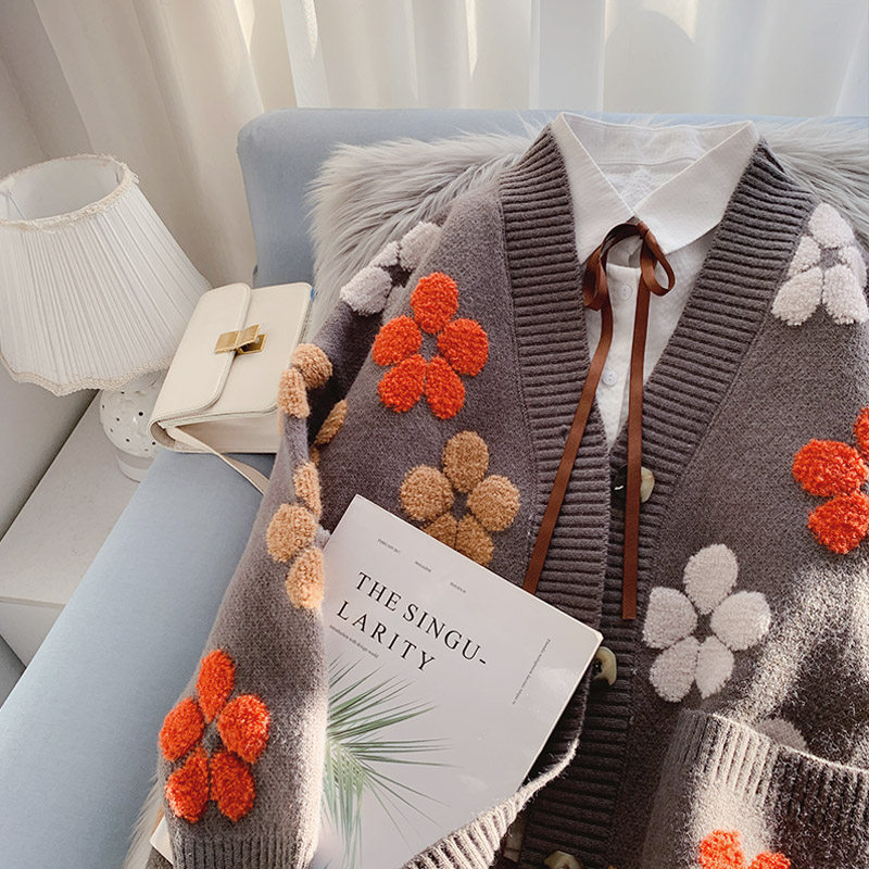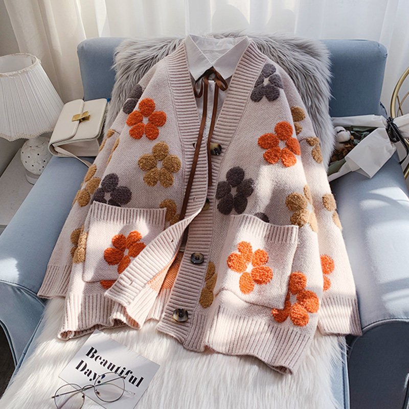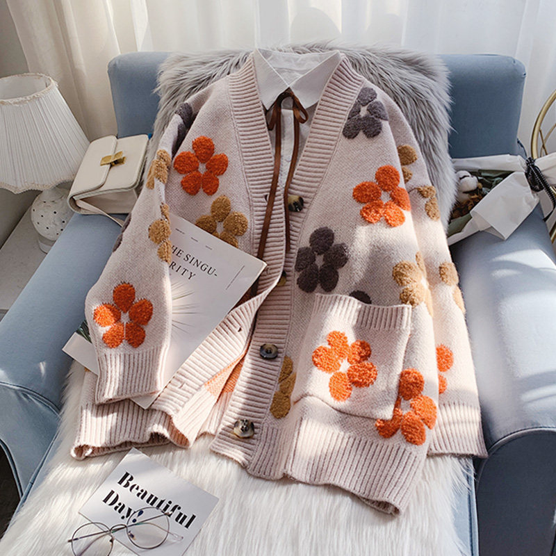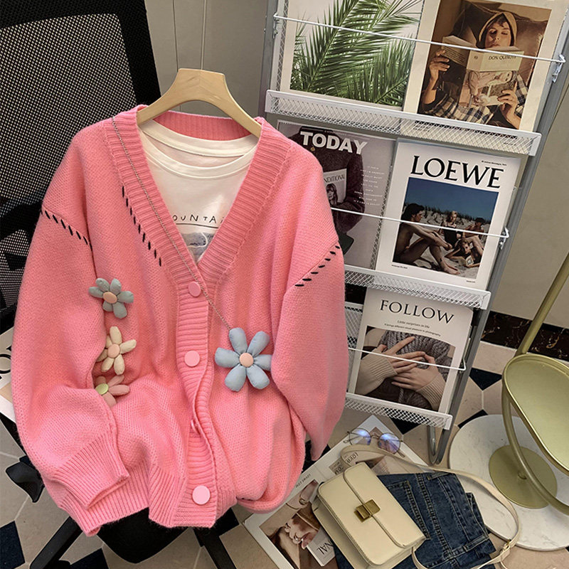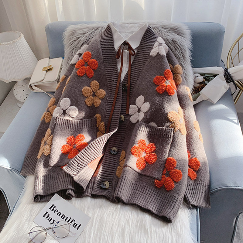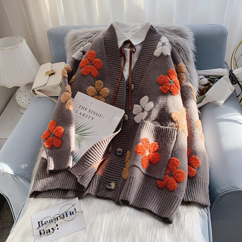 2023新款女装毛衣秋冬韩版宽松女式针织慵懒风开衫外套女地摊批发