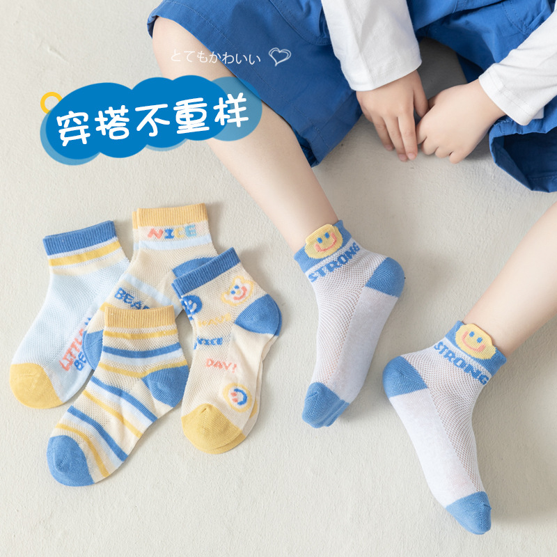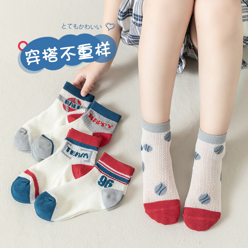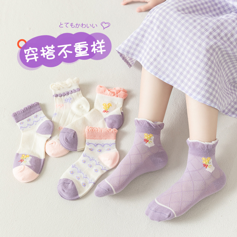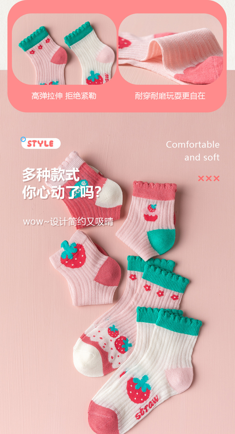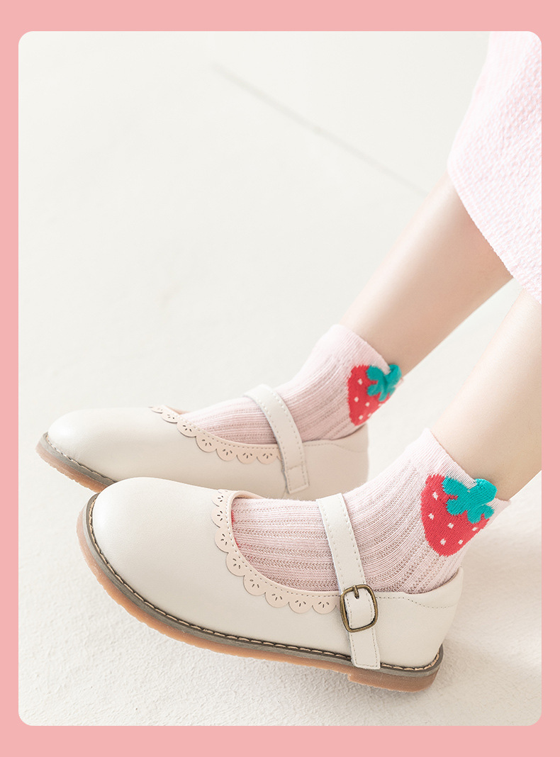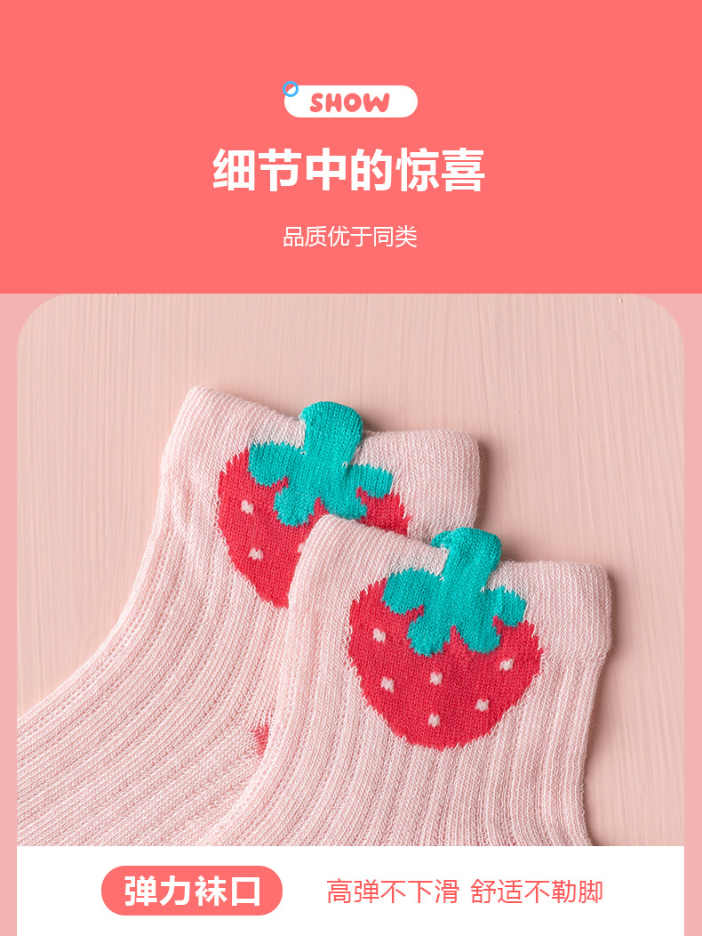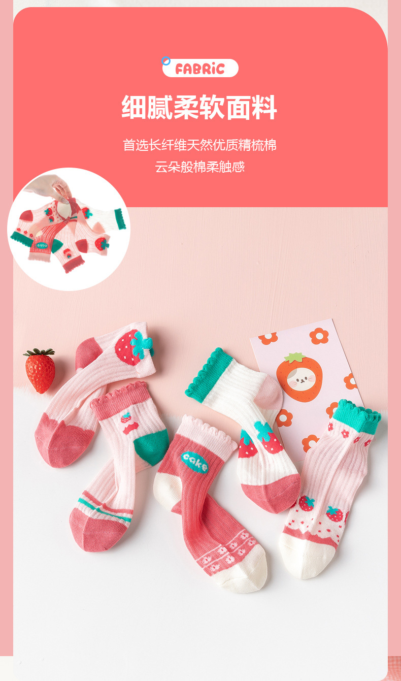 儿童袜子女童中大童春秋薄款小孩宝宝中筒袜可爱草莓网眼透气棉袜
