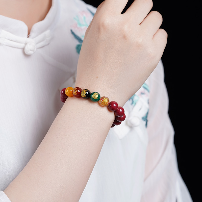 五路财神手链朱砂男女款本命年朱砂手串玛瑙五路财神紫金砂手链