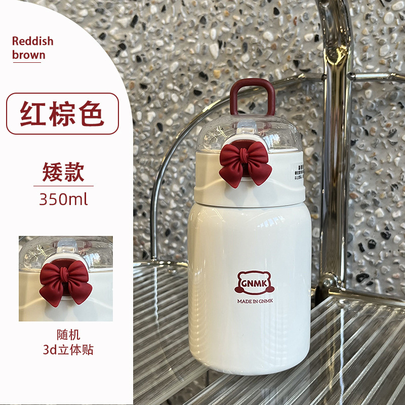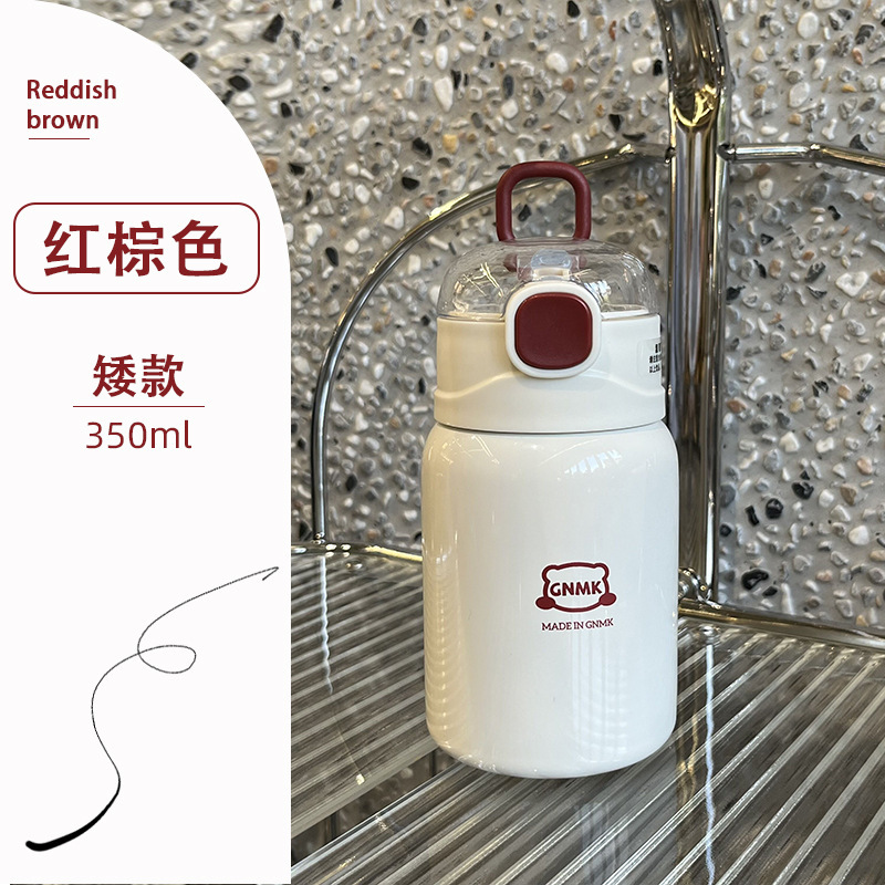 黑白简约ins风高颜值保温杯带吸管不锈钢杯小巧便携少女儿童l杯子