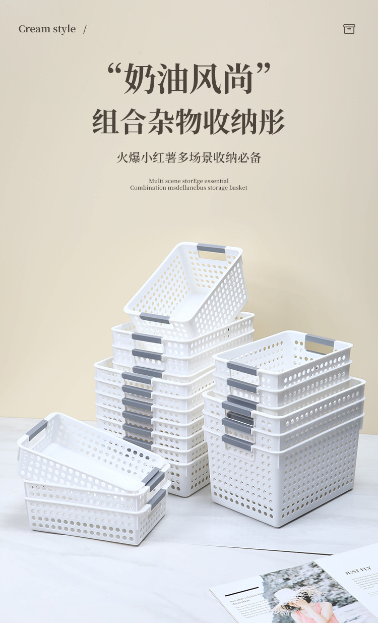 桌面收纳筐加厚塑料篮子杂物玩具化妆品收纳盒家用镂空储物篮批发