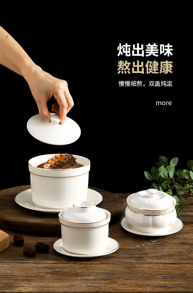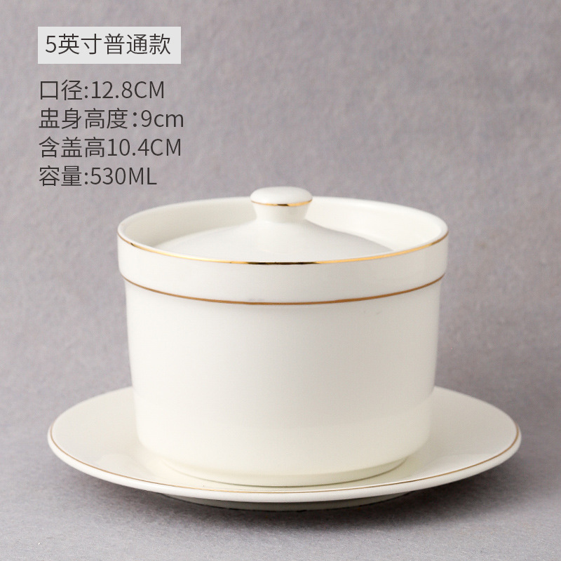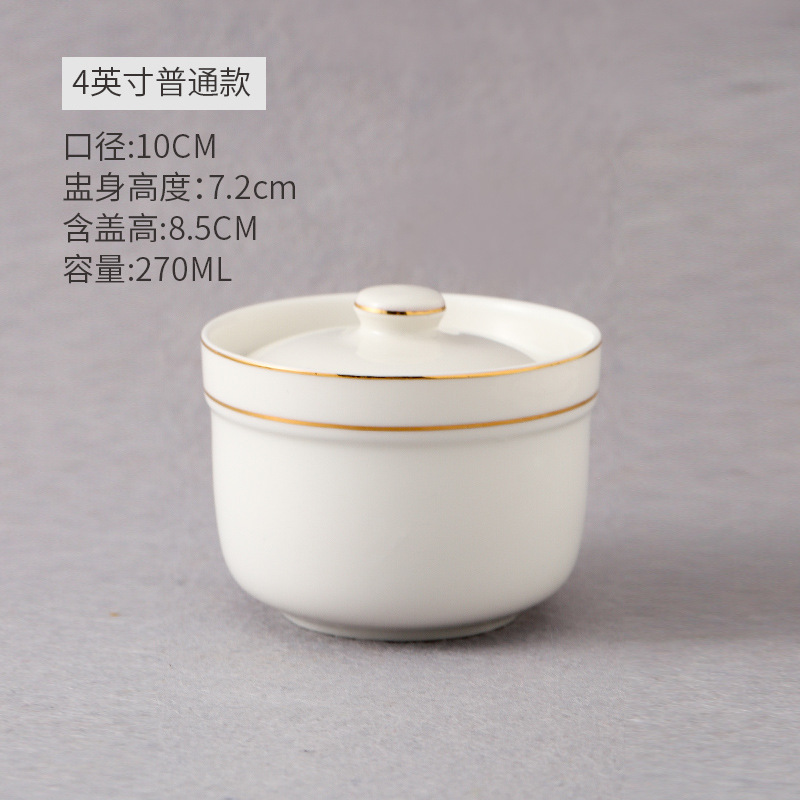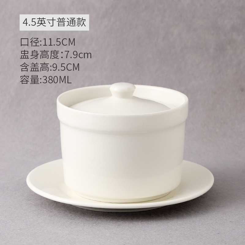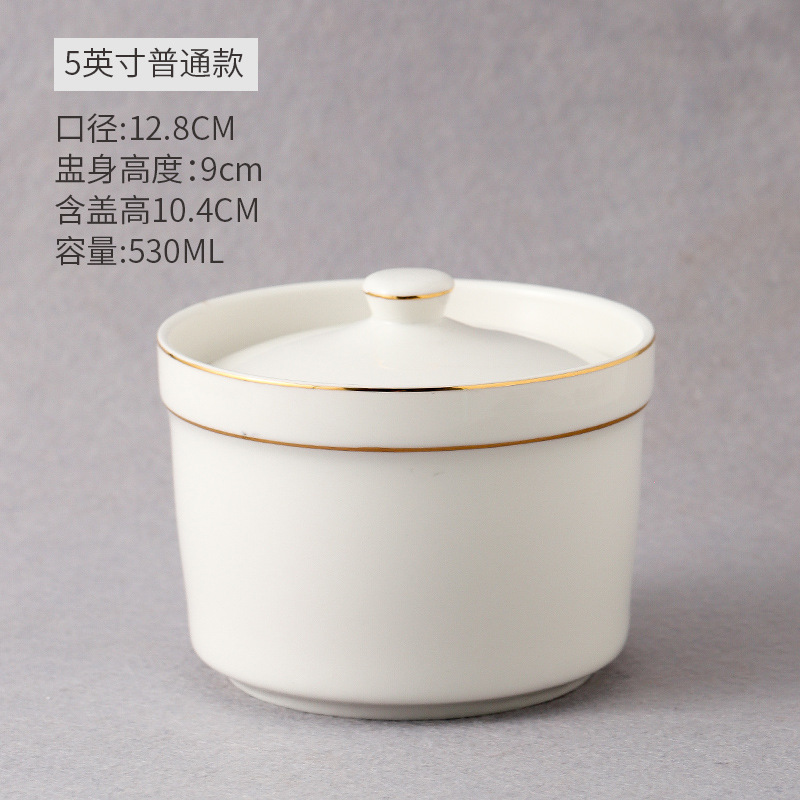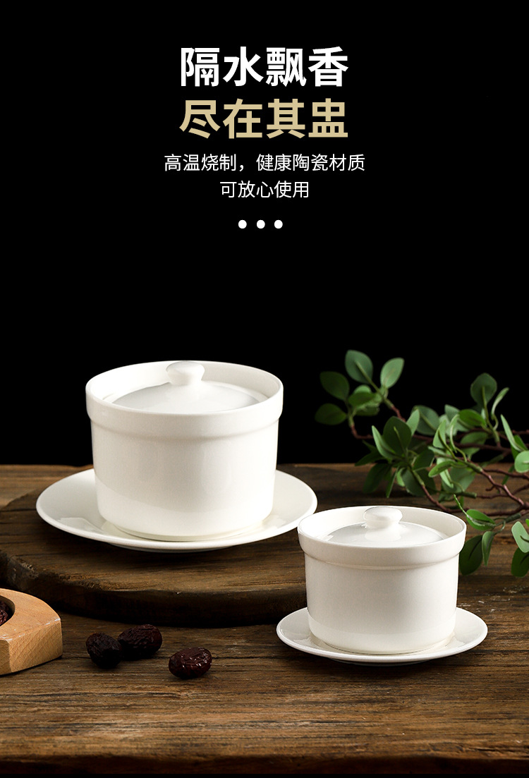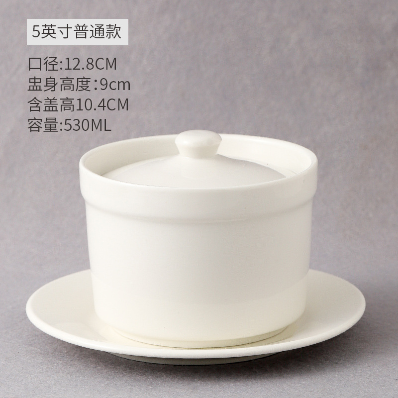 陶瓷隔水炖盅纯白色酒店商用炖煲中式沙县带盖汤盅甜品金边蒸蛋盅