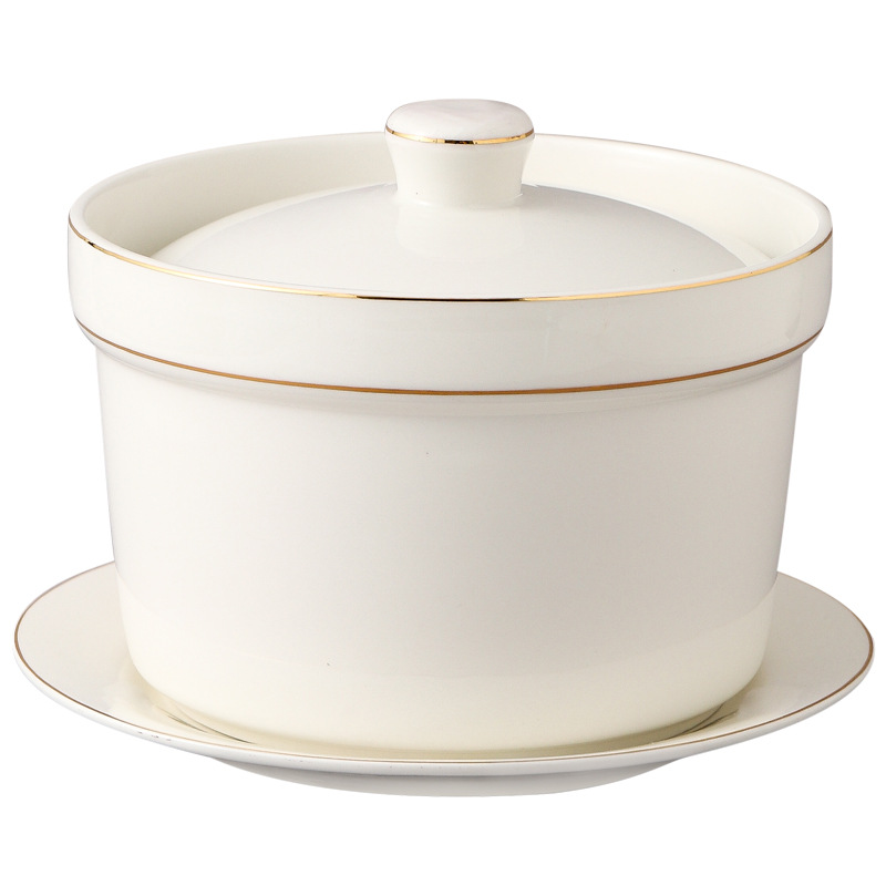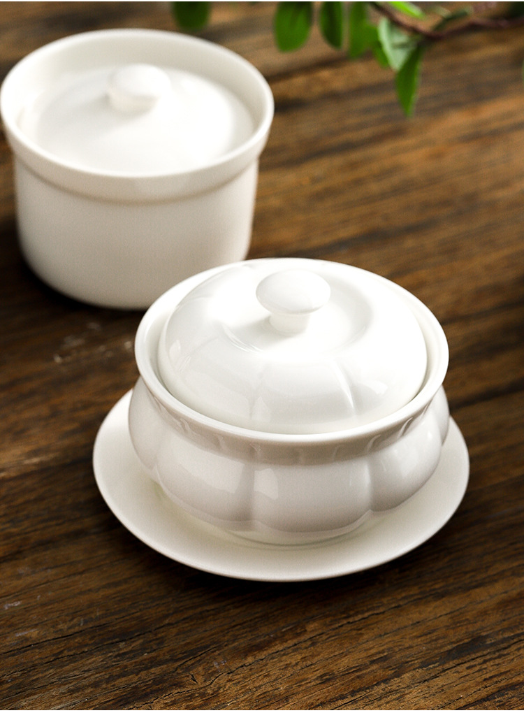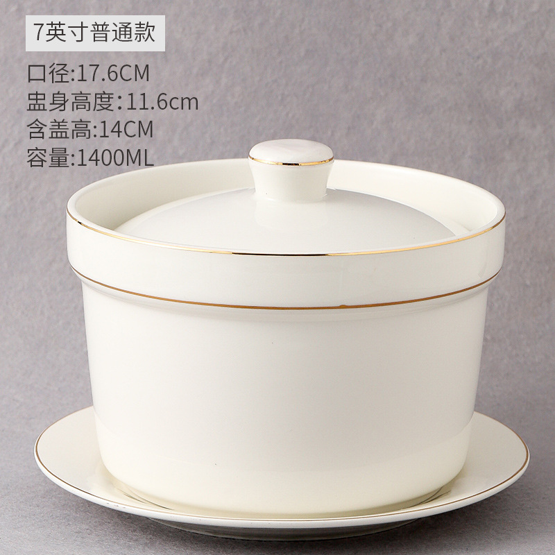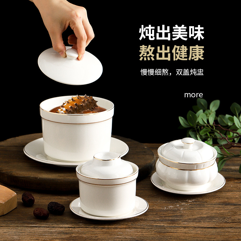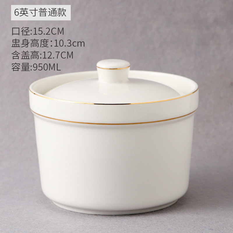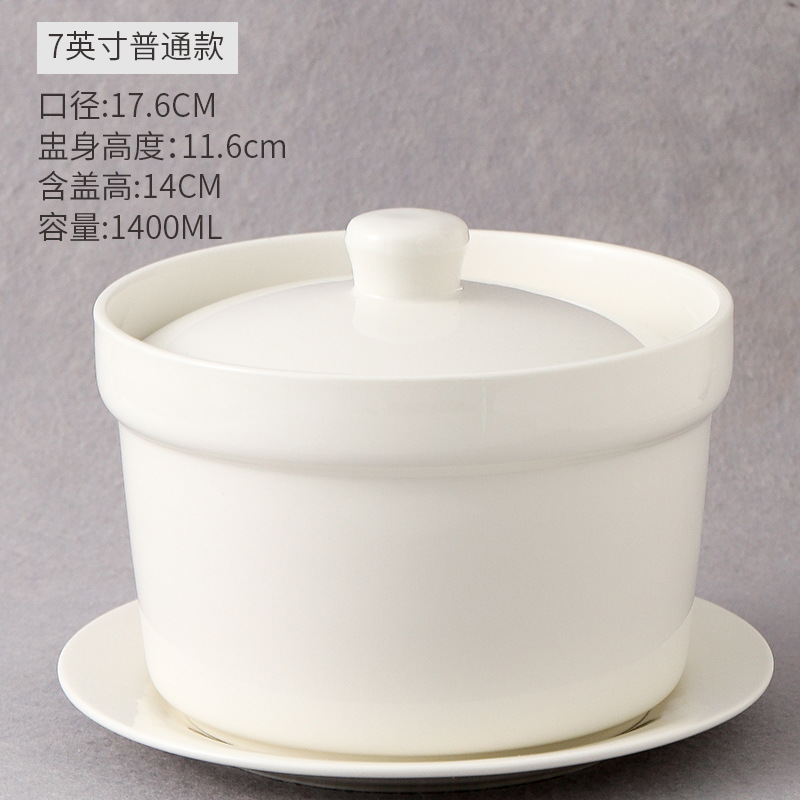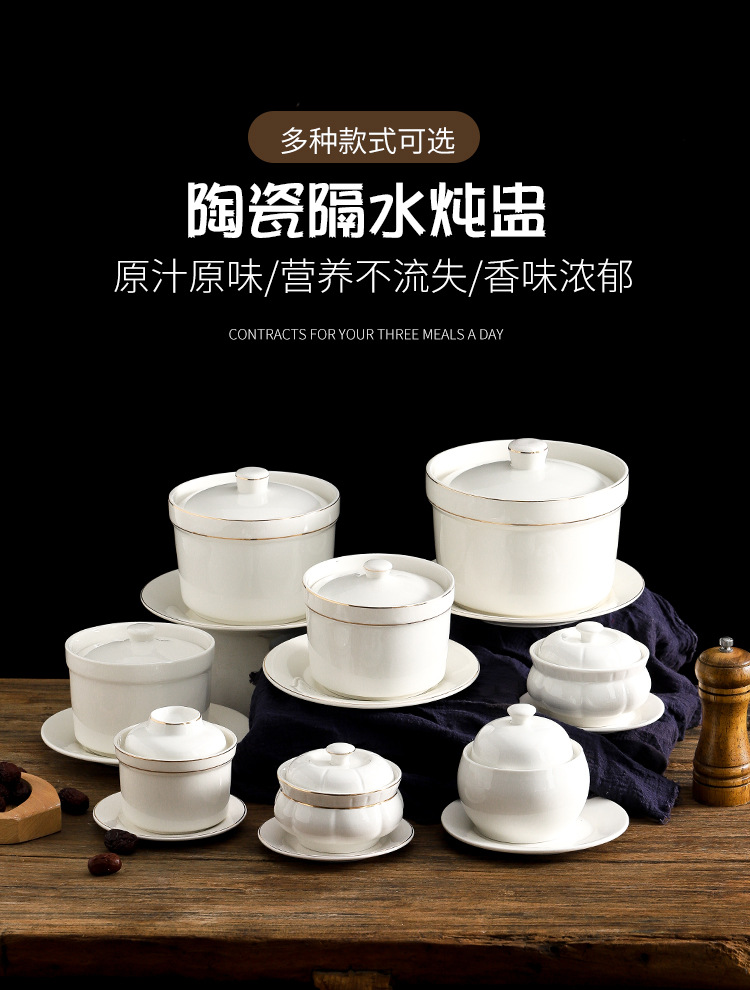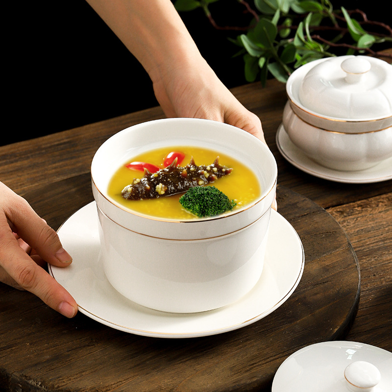 陶瓷隔水炖盅纯白色酒店商用炖煲中式沙县带盖汤盅甜品金边蒸蛋盅