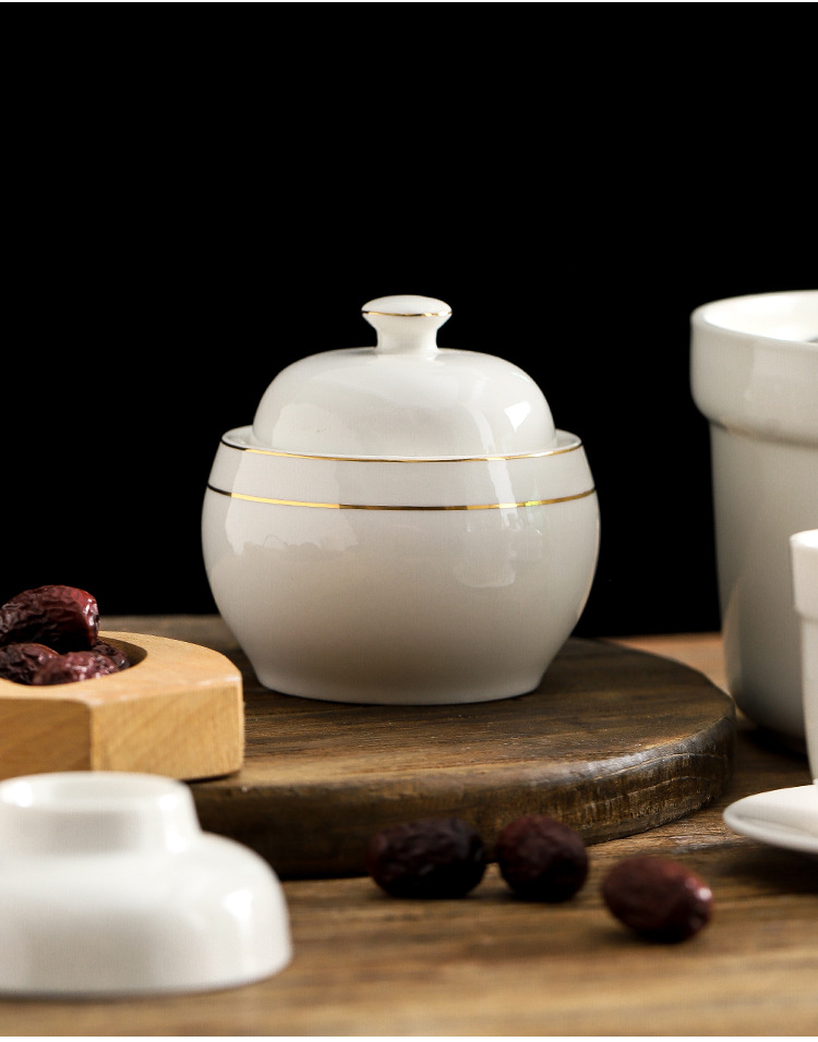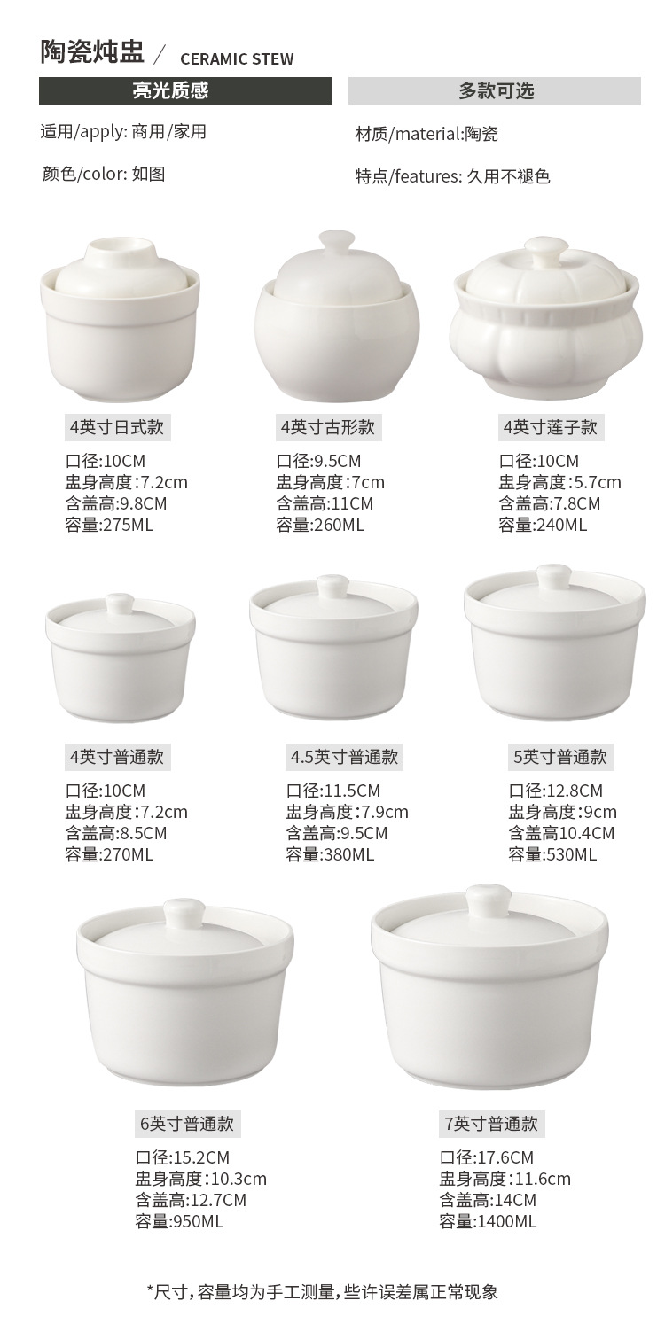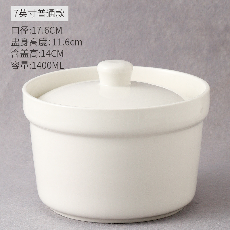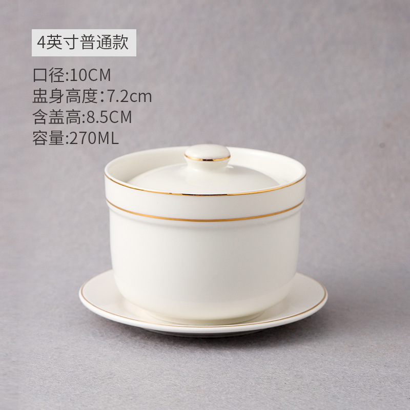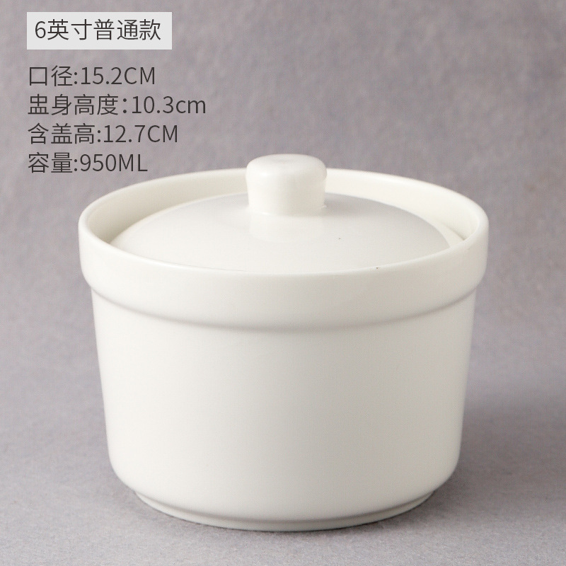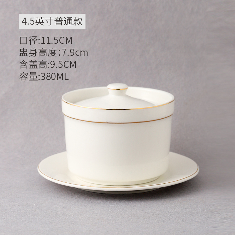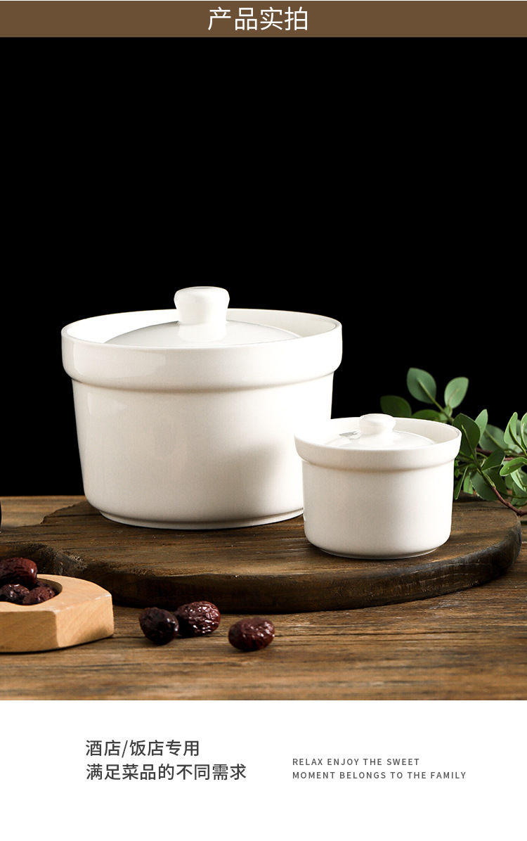 陶瓷隔水炖盅纯白色酒店商用炖煲中式沙县带盖汤盅甜品金边蒸蛋盅