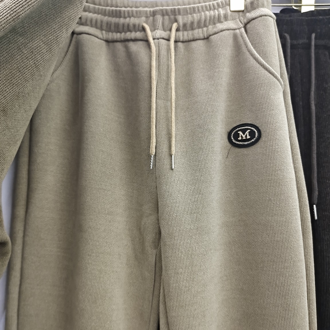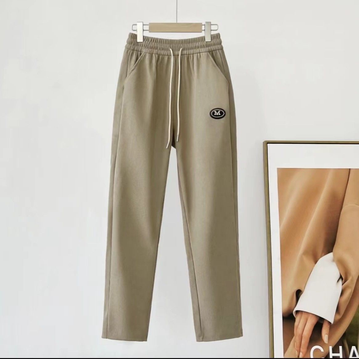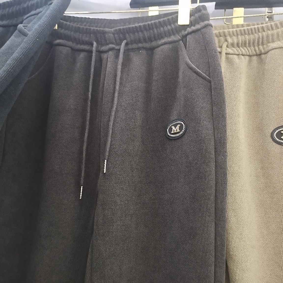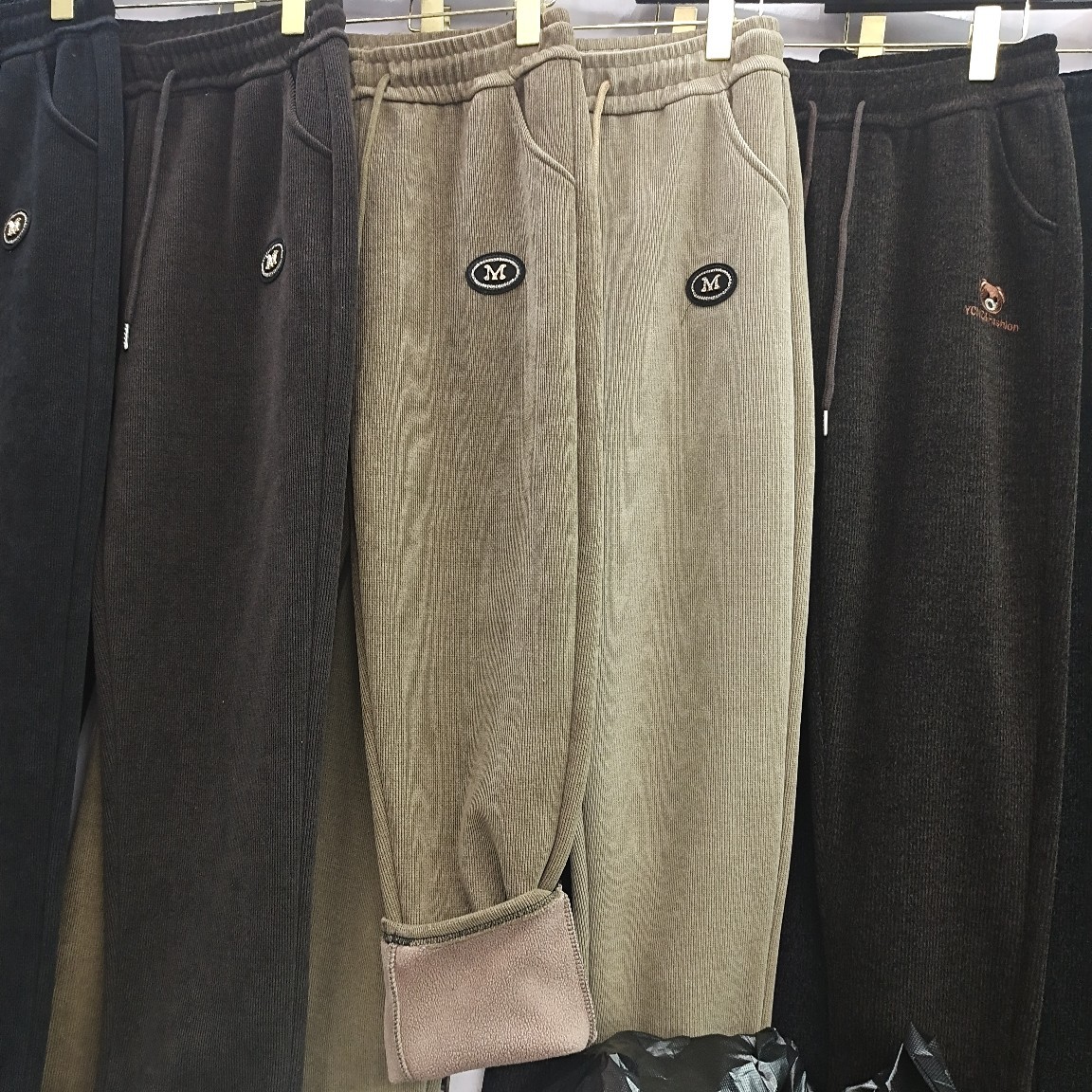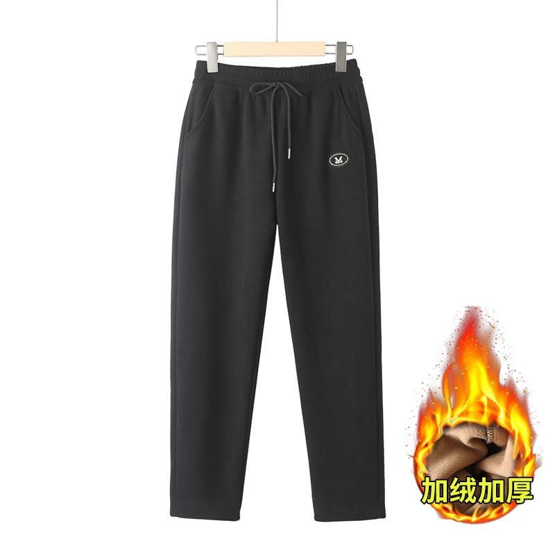 冬季加绒加厚羊绒细条中老年休闲长款大码直筒裤高腰系绳外穿显瘦