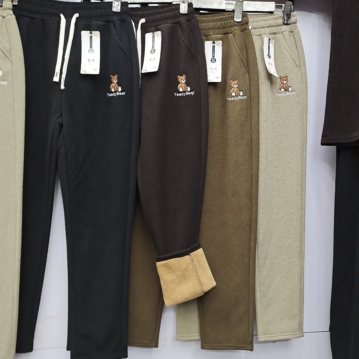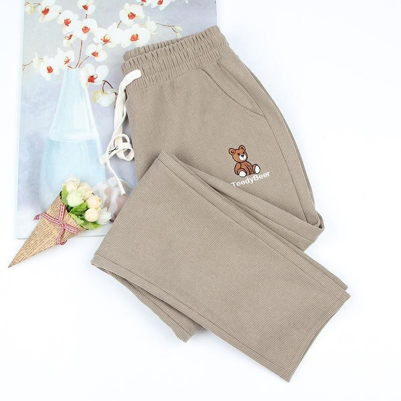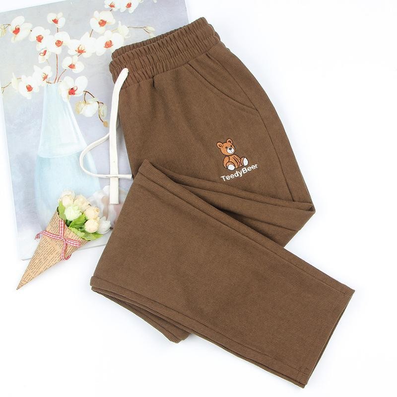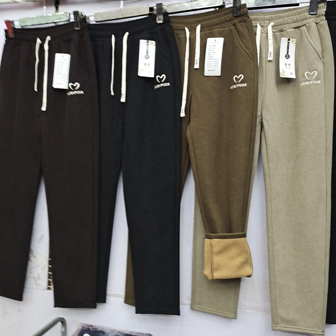 2023冬季新款条绒直筒裤加绒加厚高弹运动卫裤妈妈装休闲女裤大码