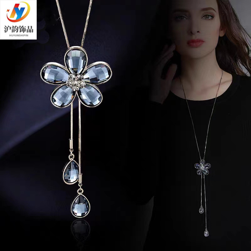 韩版秋冬水晶毛衣链项链批发高级感女长链百搭流苏珍珠吊坠配饰品