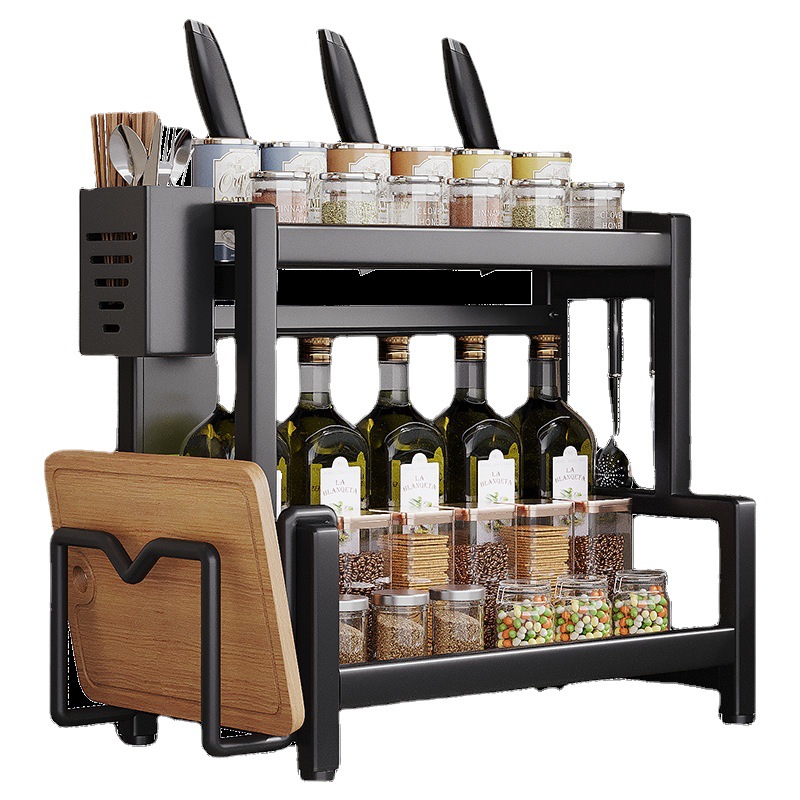厨房置物架落地多功能调料刀架调味用品家用不锈钢多层收纳架子