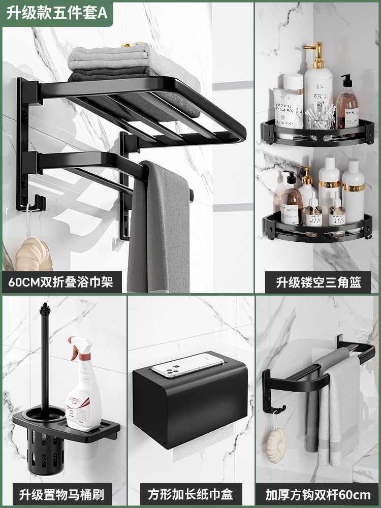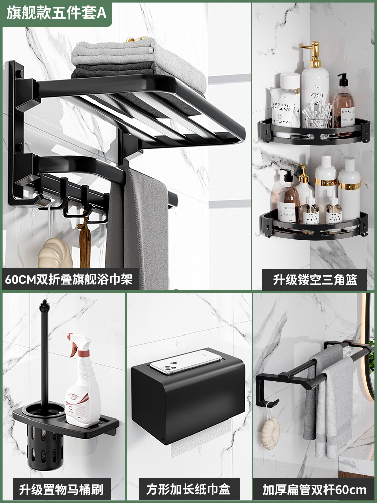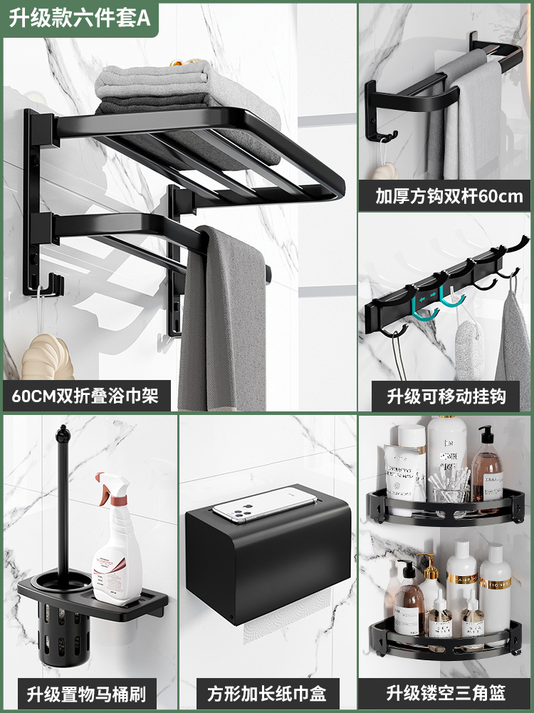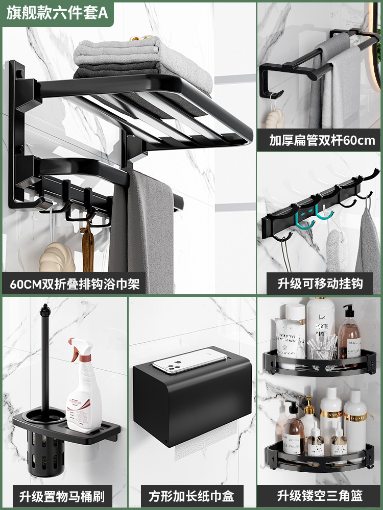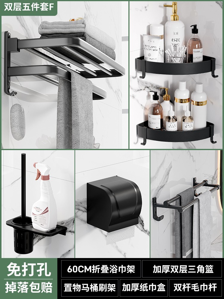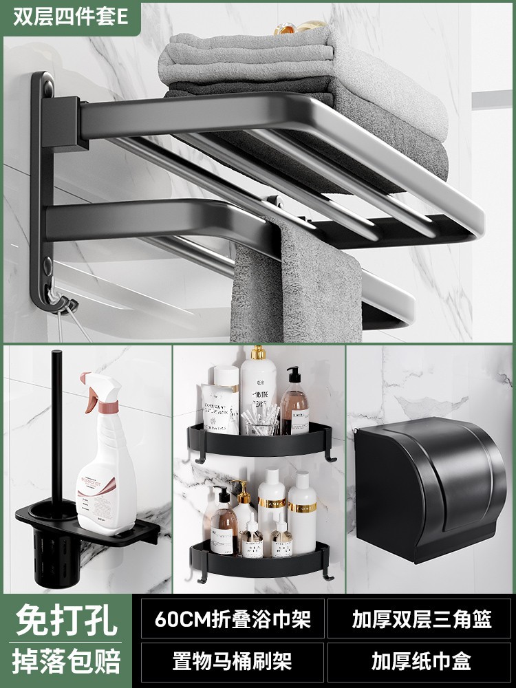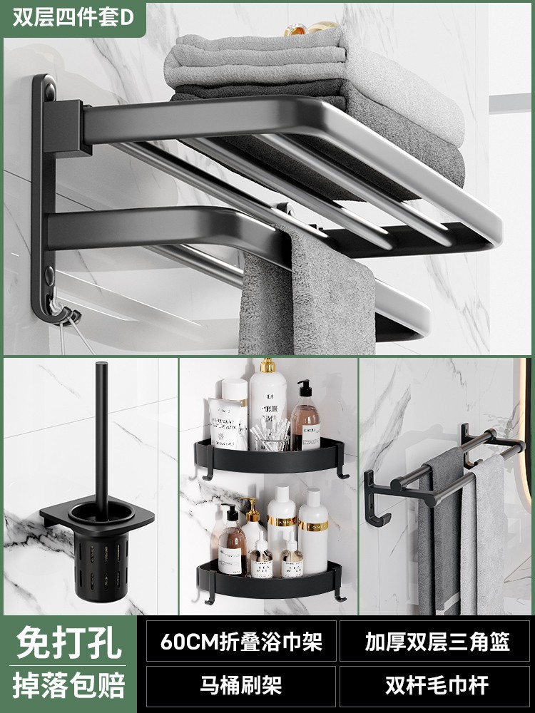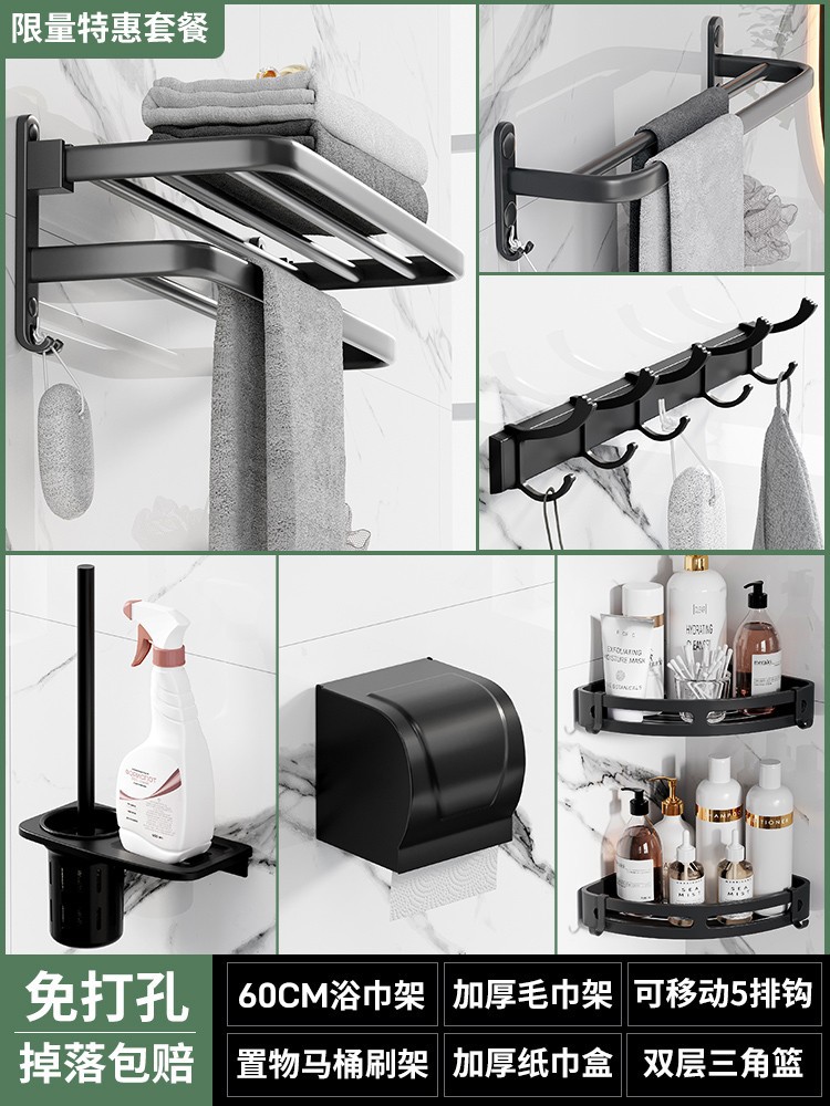 卫生间置物架免打孔太空铝毛巾架厕所浴室浴巾架酒店卫浴五金挂件